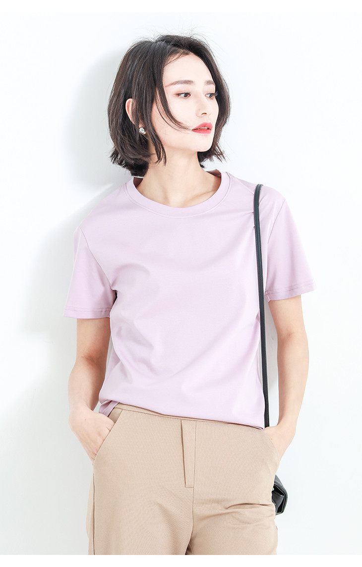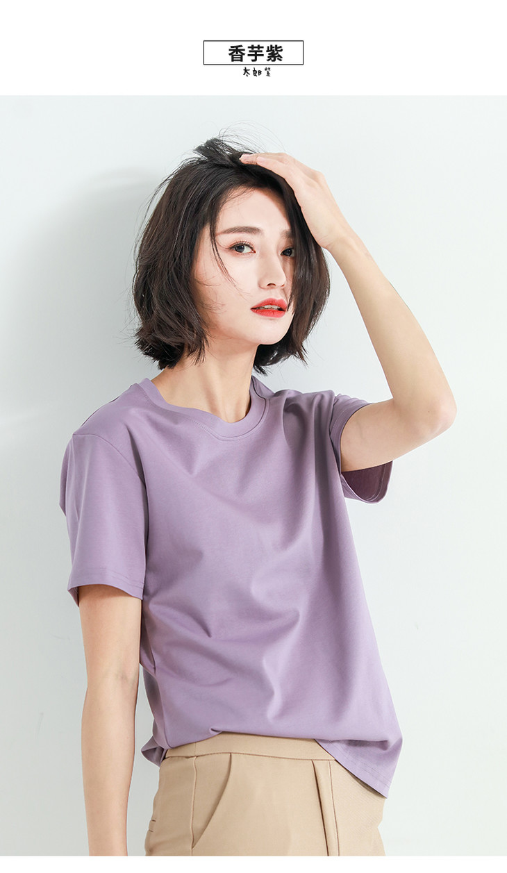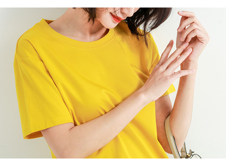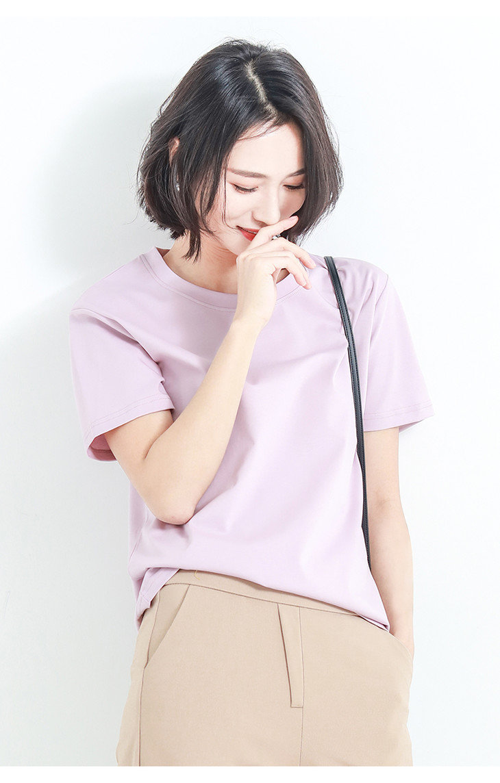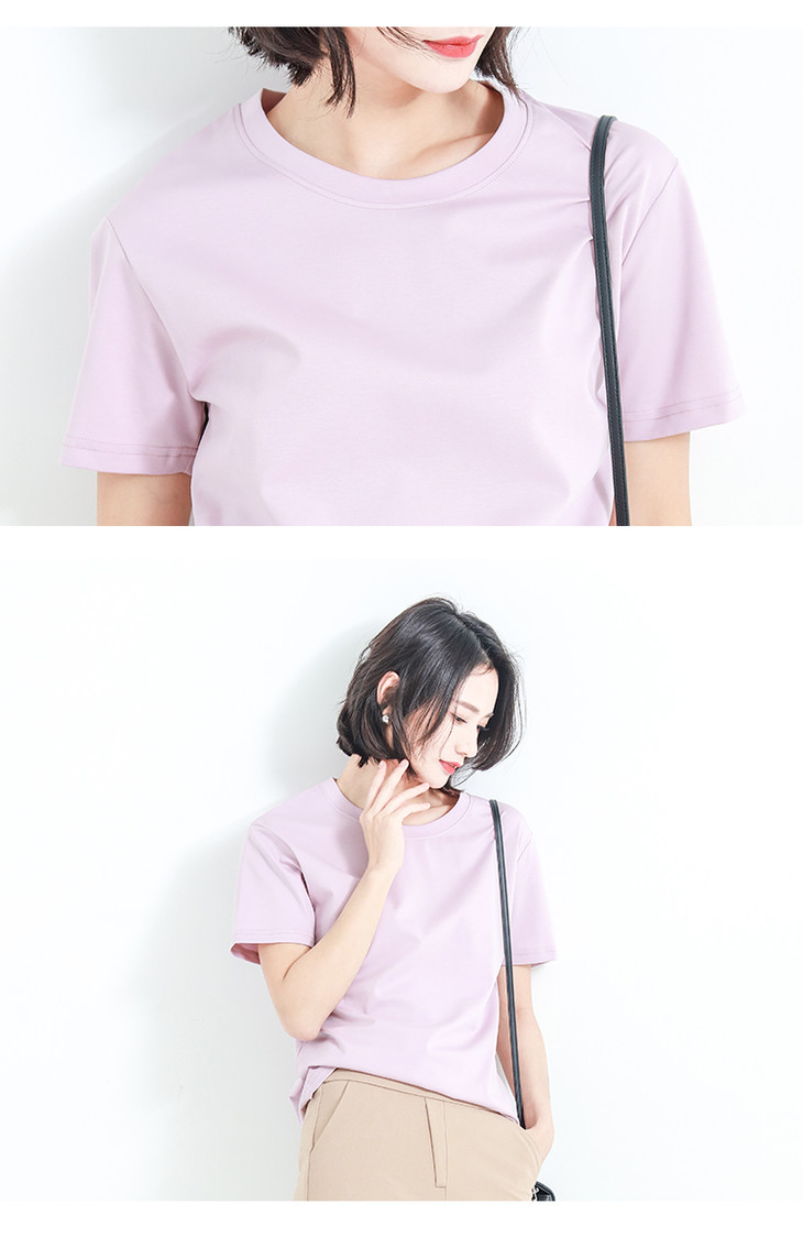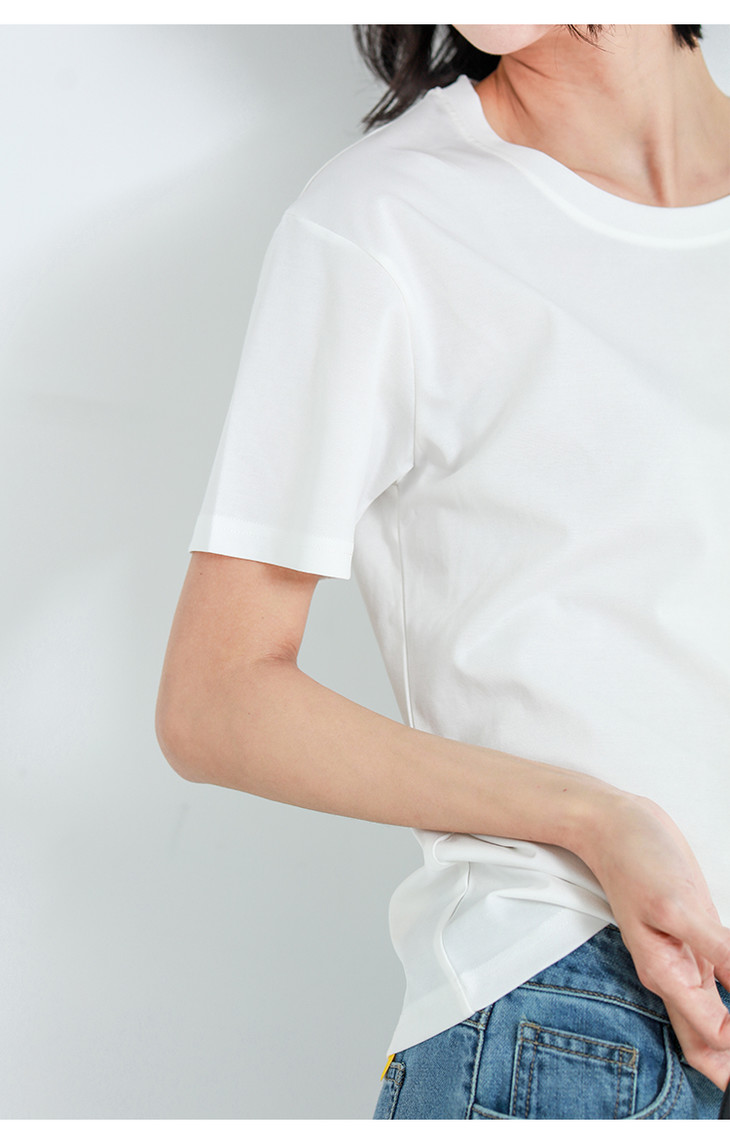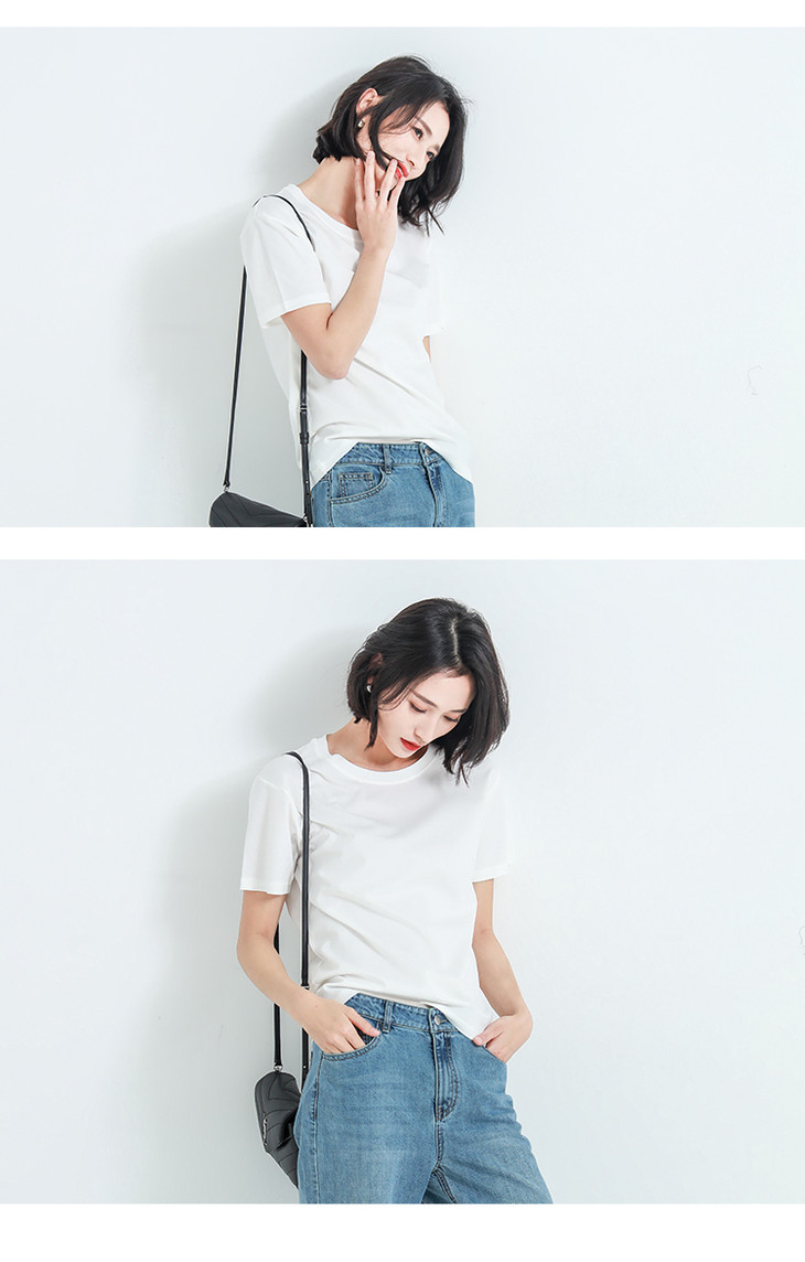 常规款衣长,上身正合适,靠近黄金分割点,干净利落的短袖,经典实用的圆领设计,夏日简约风格,触感温和柔软,带来亲密的贴身体验,而且是小直筒版型,FEI常能遮肉显 瘦。搭配牛仔休闲活力,时装搭配也干练简约,不可或缺的衣橱常青款!