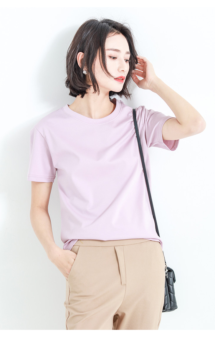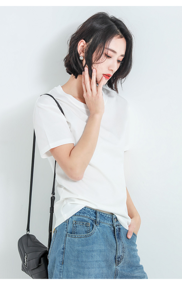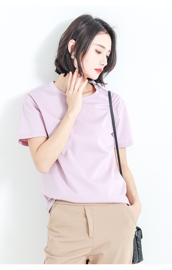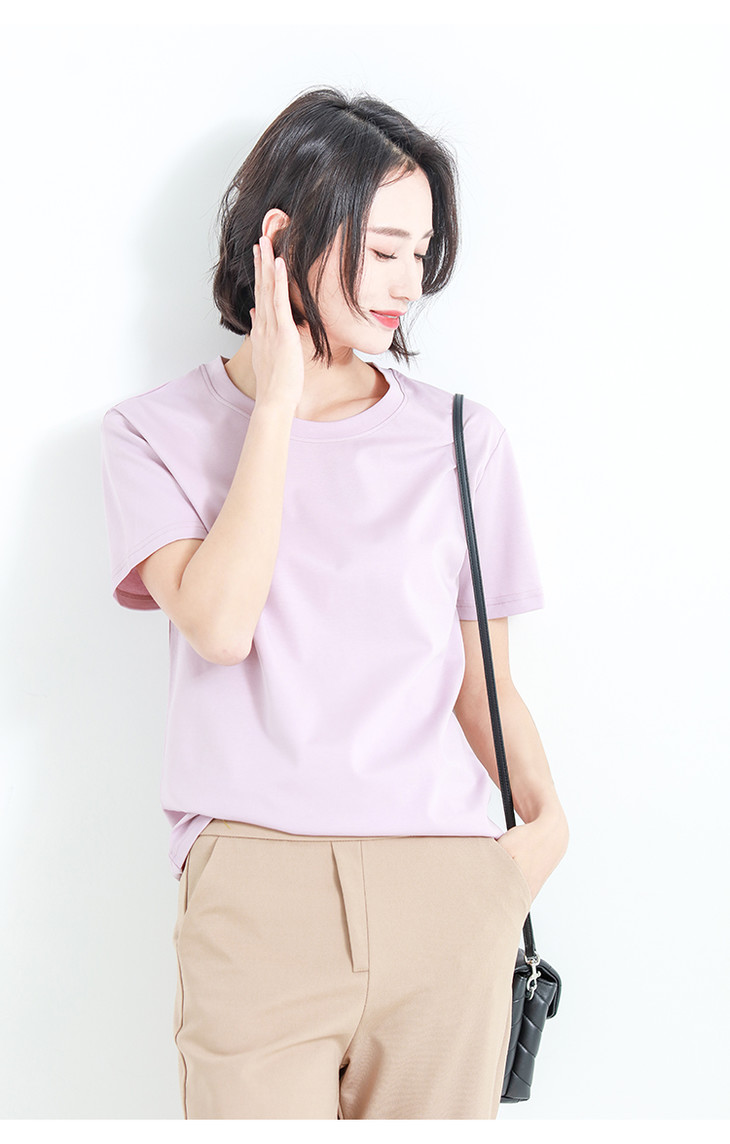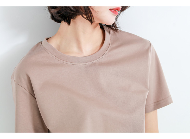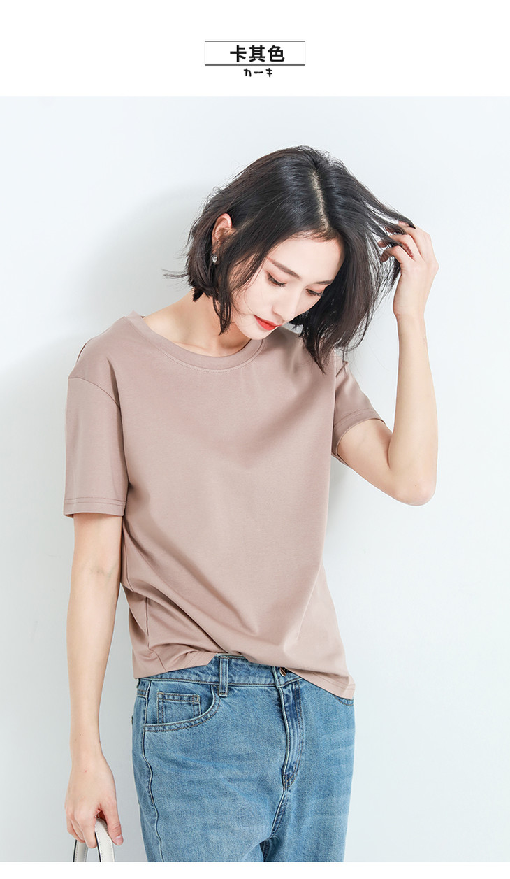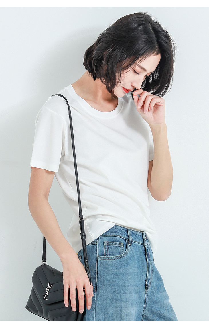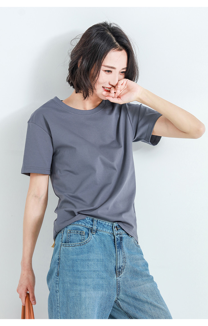 常规款衣长,上身正合适,靠近黄金分割点,干净利落的短袖,经典实用的圆领设计,夏日简约风格,触感温和柔软,带来亲密的贴身体验,而且是小直筒版型,FEI常能遮肉显 瘦。搭配牛仔休闲活力,时装搭配也干练简约,不可或缺的衣橱常青款!