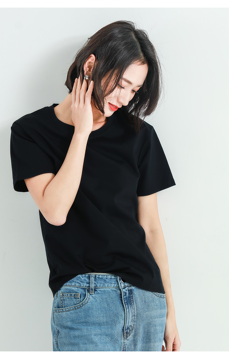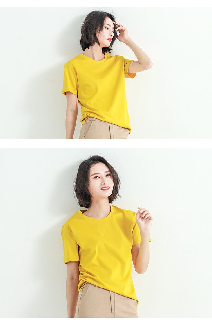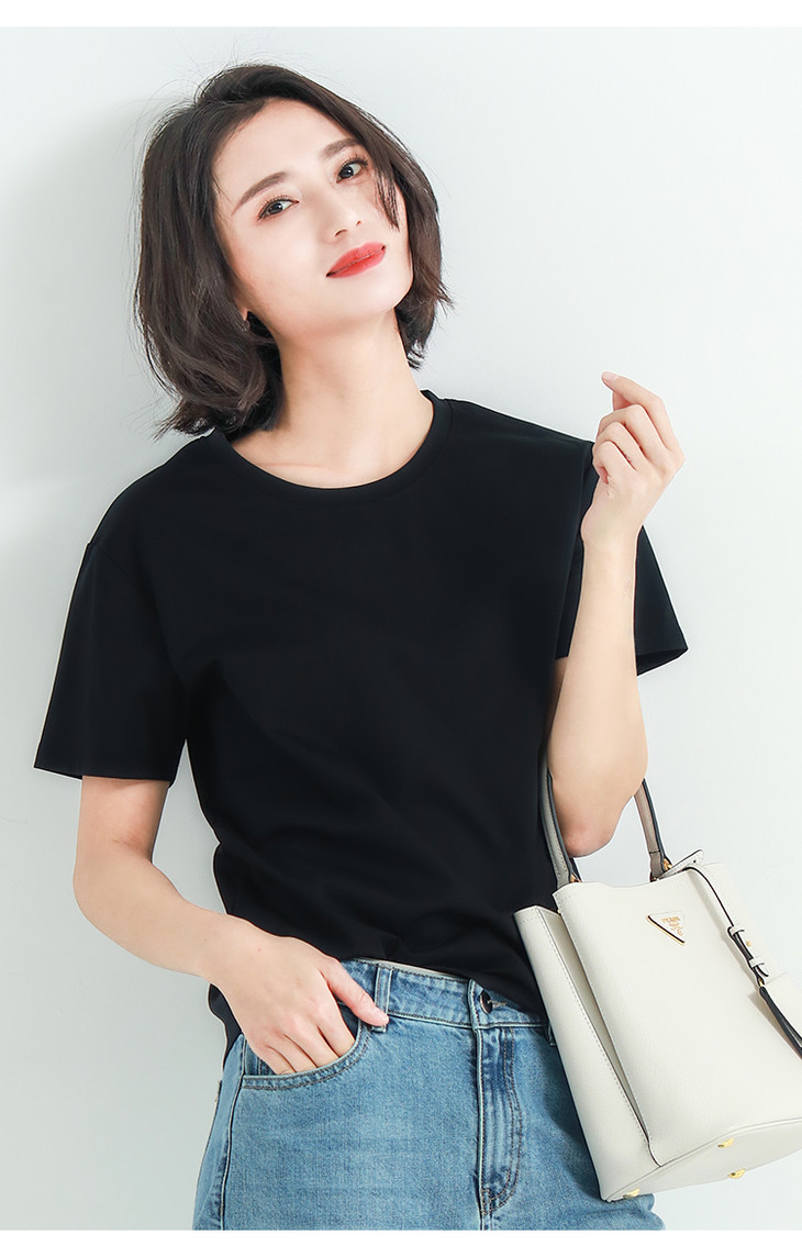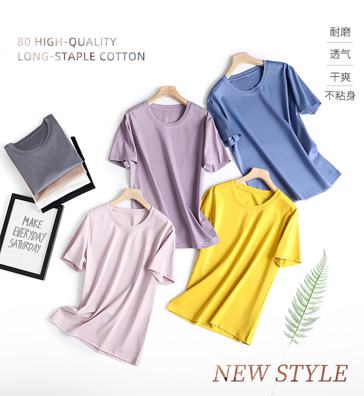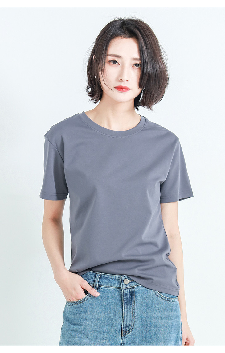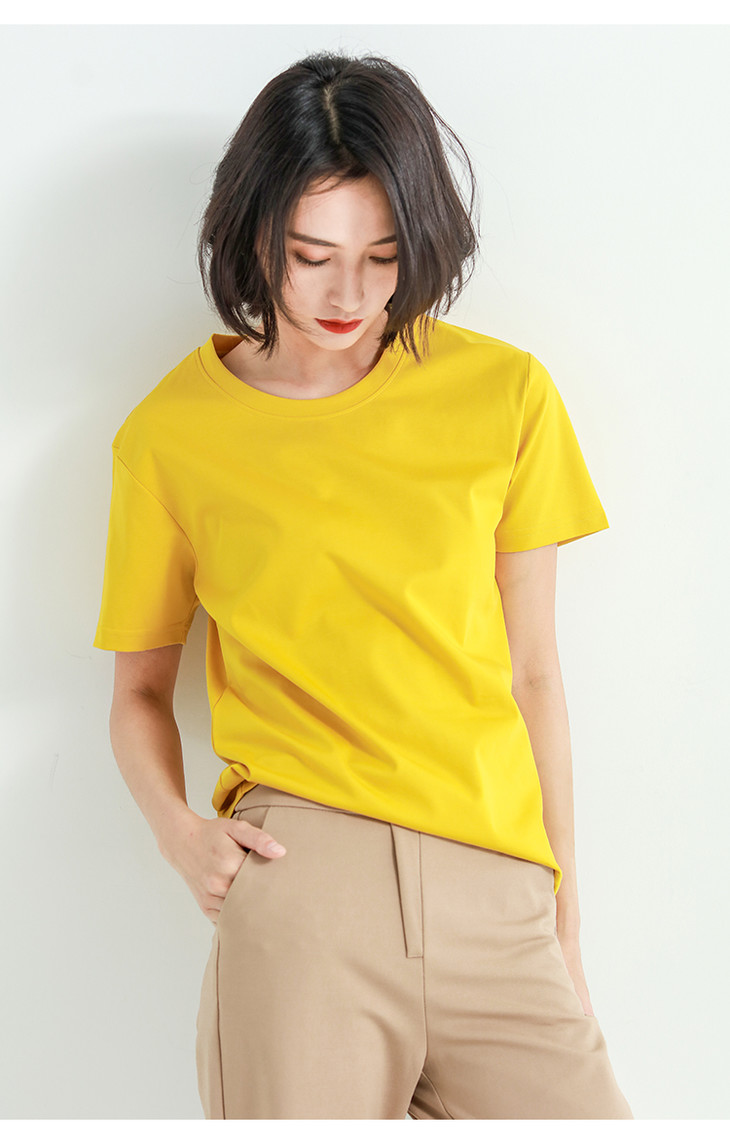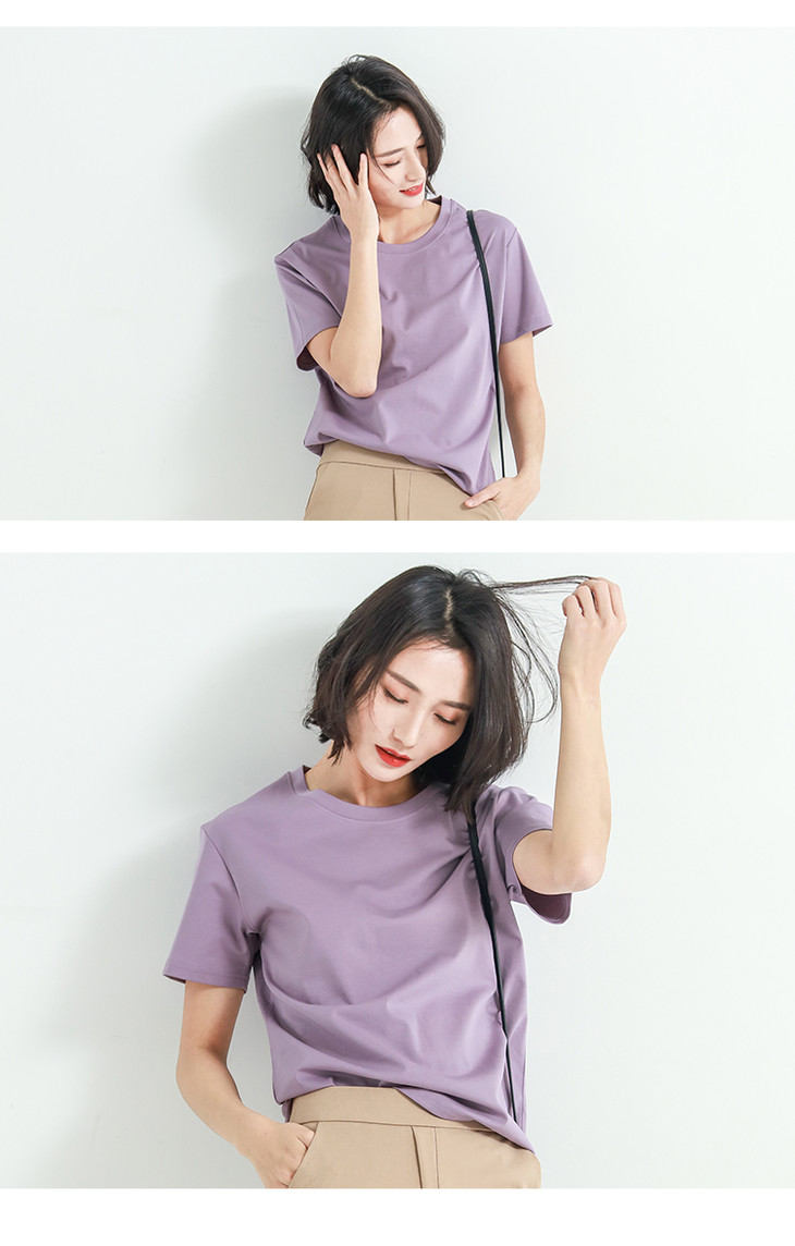常规款衣长,上身正合适,靠近黄金分割点,干净利落的短袖,经典实用的圆领设计,夏日简约风格,触感温和柔软,带来亲密的贴身体验,而且是小直筒版型,FEI常能遮肉显 瘦。搭配牛仔休闲活力,时装搭配也干练简约,不可或缺的衣橱常青款!