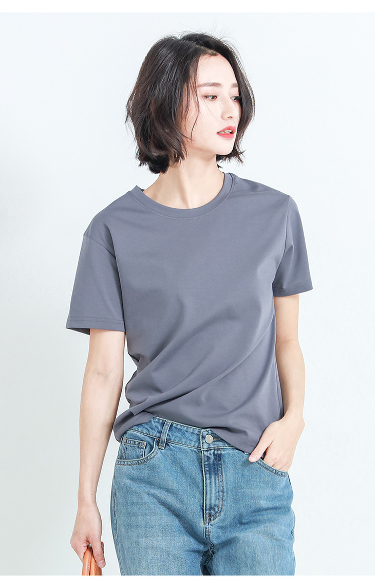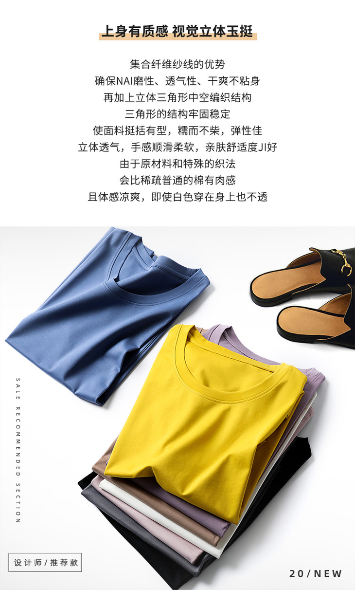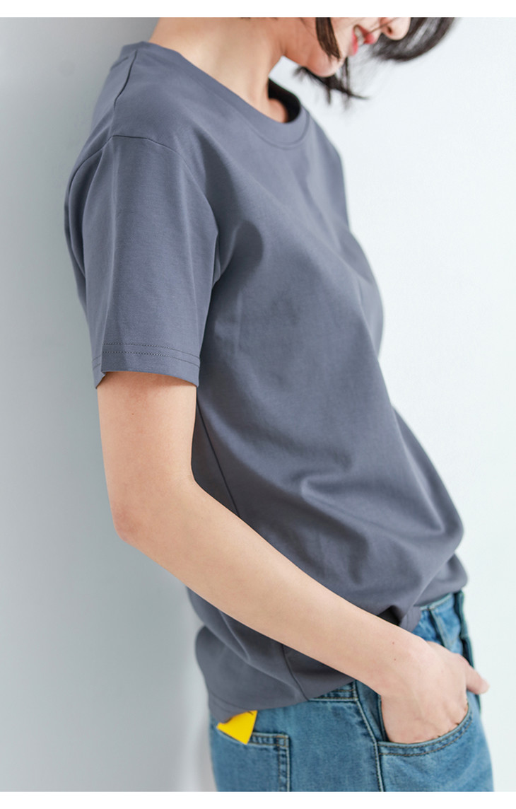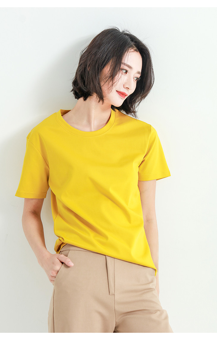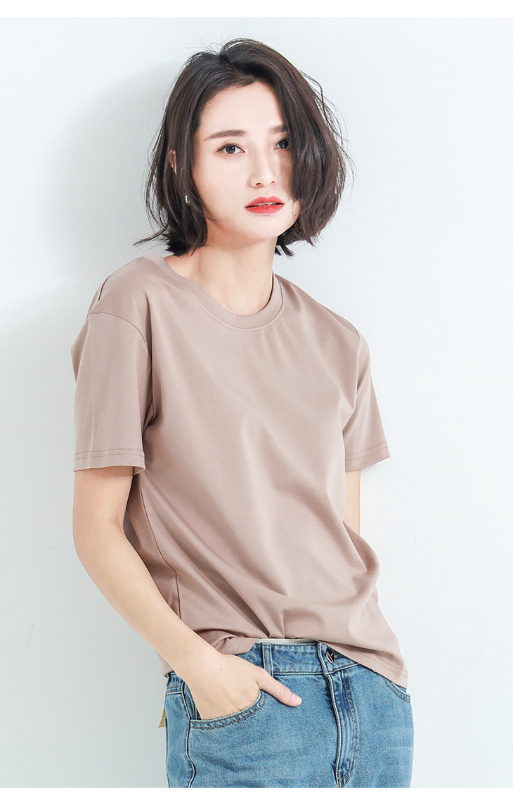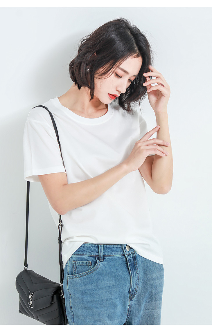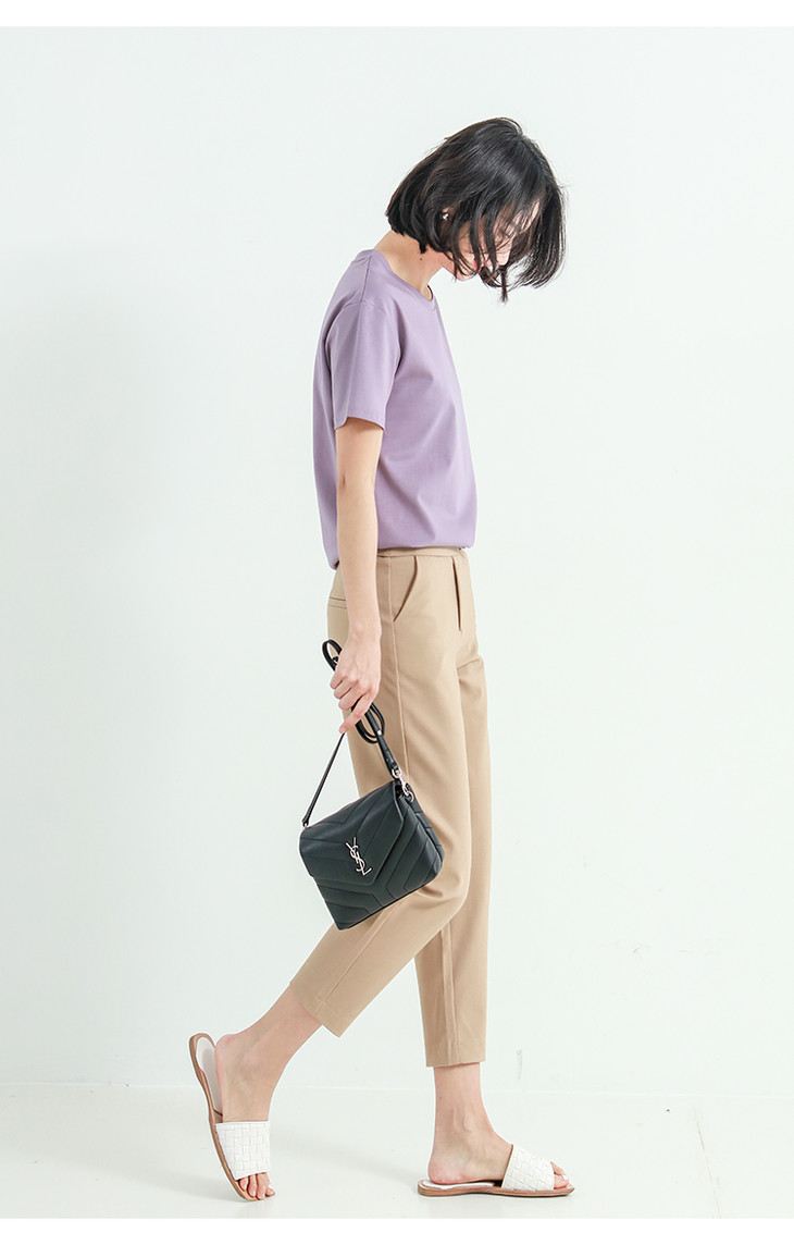 常规款衣长,上身正合适,靠近黄金分割点,干净利落的短袖,经典实用的圆领设计,夏日简约风格,触感温和柔软,带来亲密的贴身体验,而且是小直筒版型,FEI常能遮肉显 瘦。搭配牛仔休闲活力,时装搭配也干练简约,不可或缺的衣橱常青款!