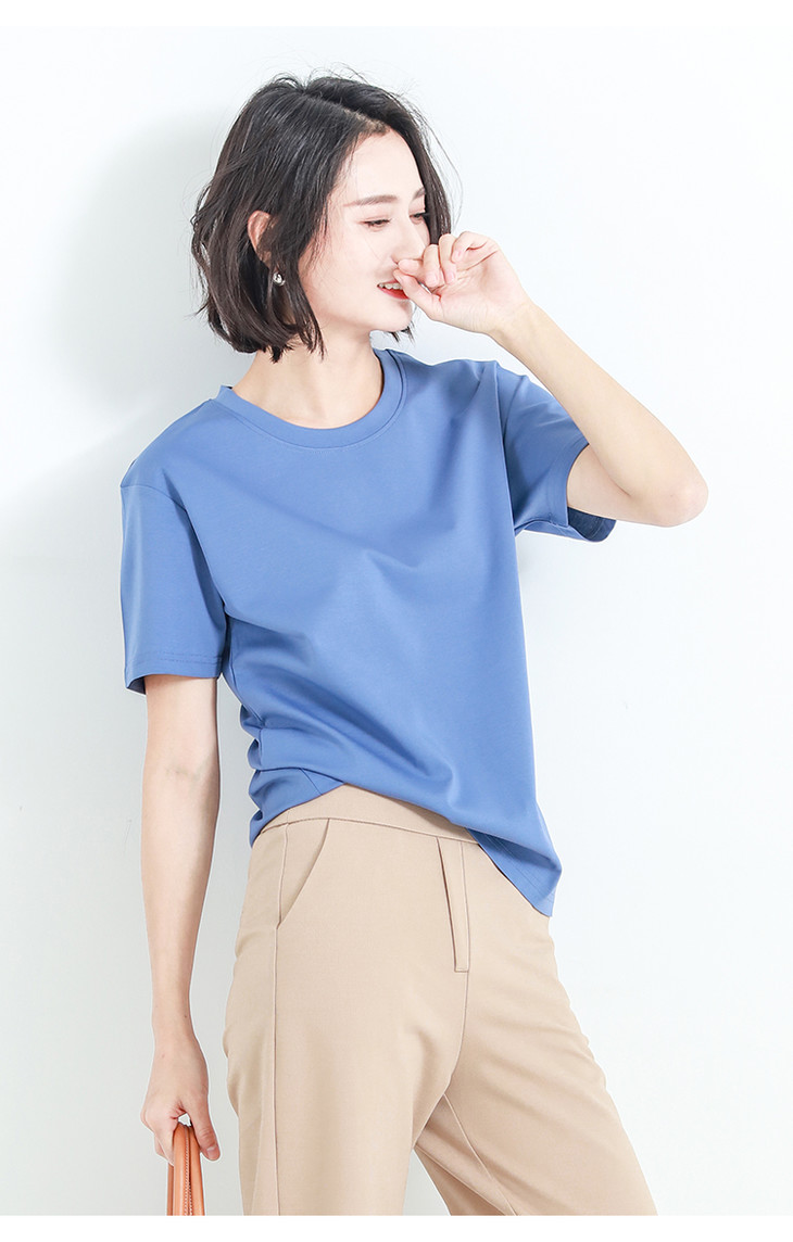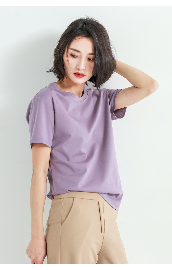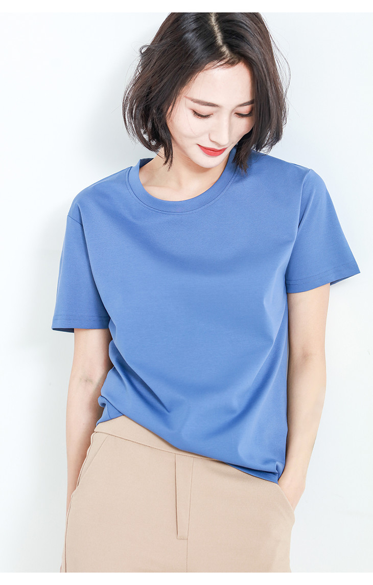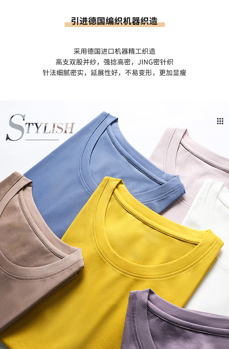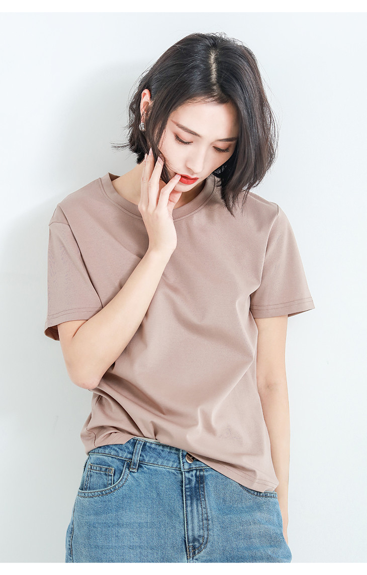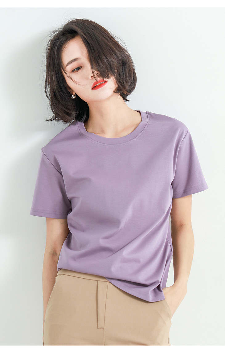 常规款衣长,上身正合适,靠近黄金分割点,干净利落的短袖,经典实用的圆领设计,夏日简约风格,触感温和柔软,带来亲密的贴身体验,而且是小直筒版型,FEI常能遮肉显 瘦。搭配牛仔休闲活力,时装搭配也干练简约,不可或缺的衣橱常青款!