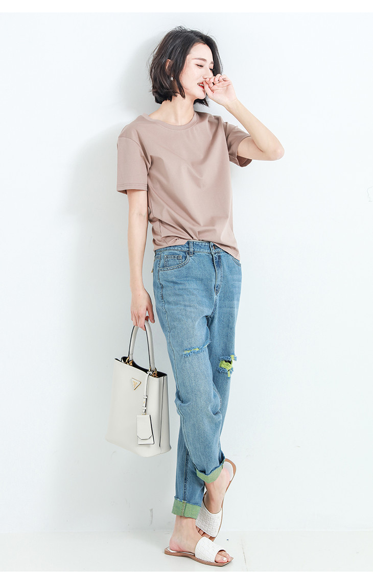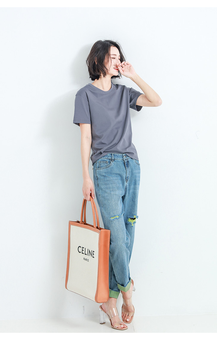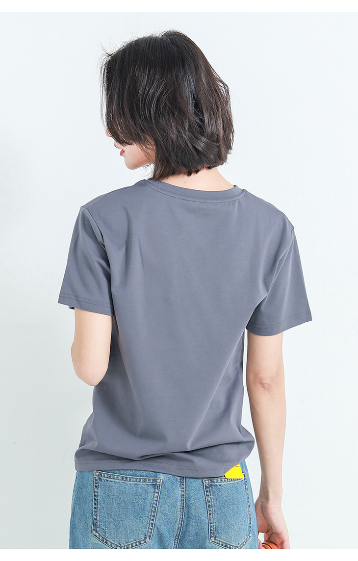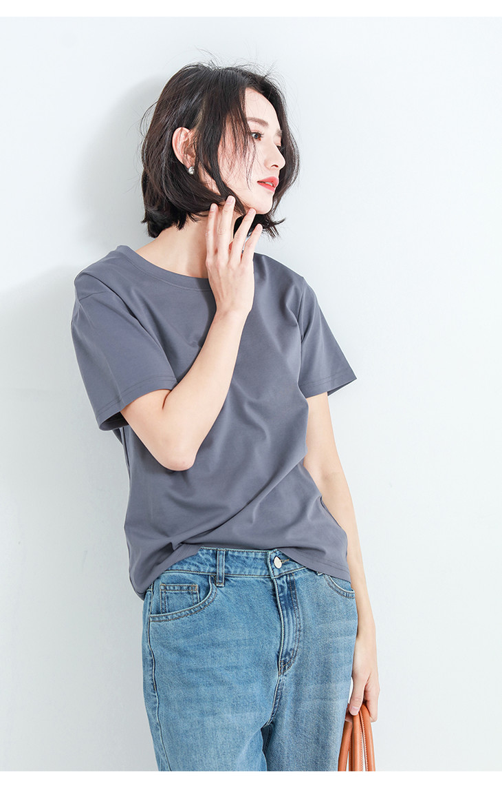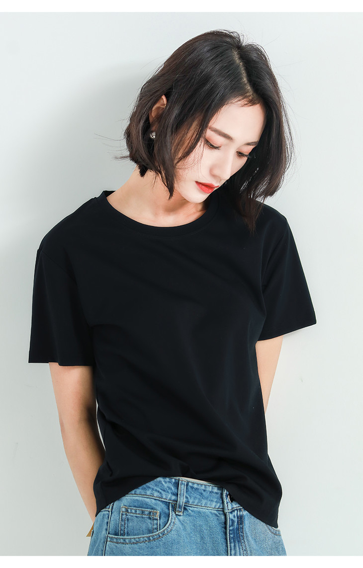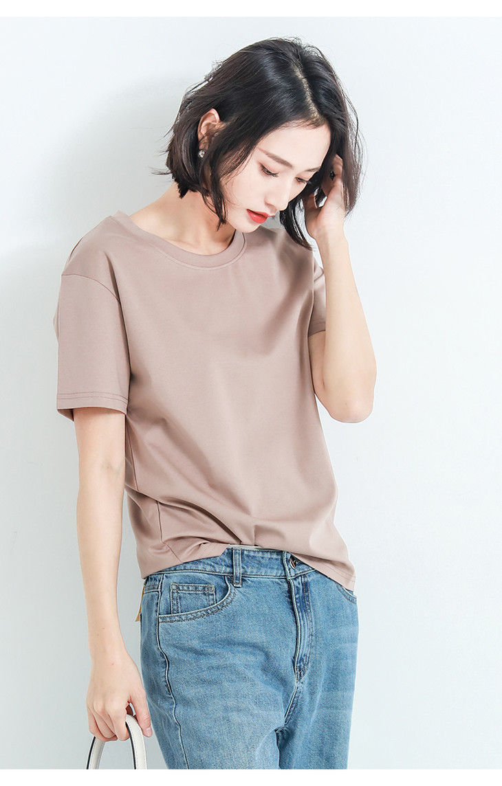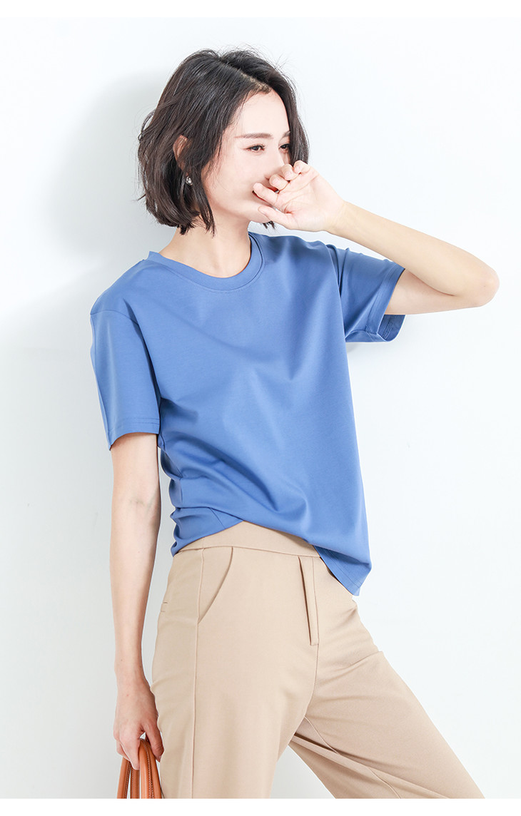 常规款衣长,上身正合适,靠近黄金分割点,干净利落的短袖,经典实用的圆领设计,夏日简约风格,触感温和柔软,带来亲密的贴身体验,而且是小直筒版型,FEI常能遮肉显 瘦。搭配牛仔休闲活力,时装搭配也干练简约,不可或缺的衣橱常青款!