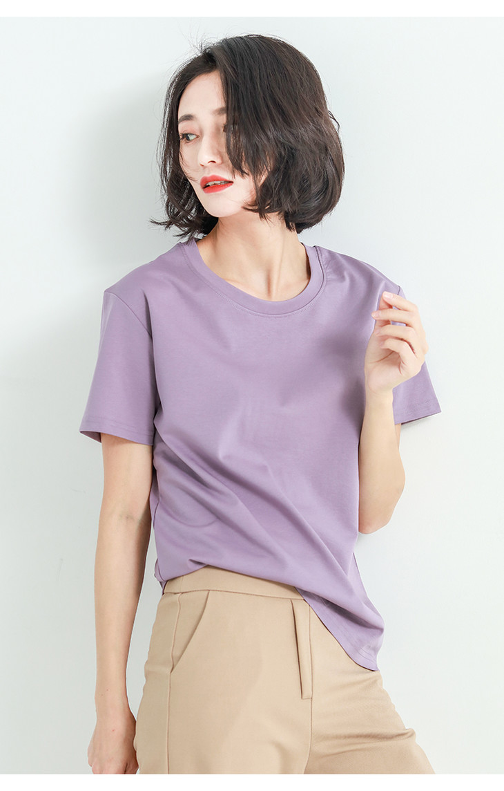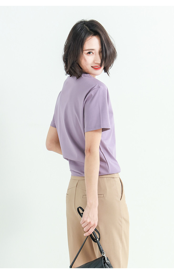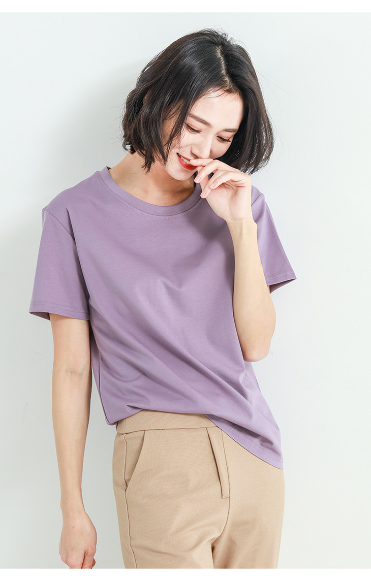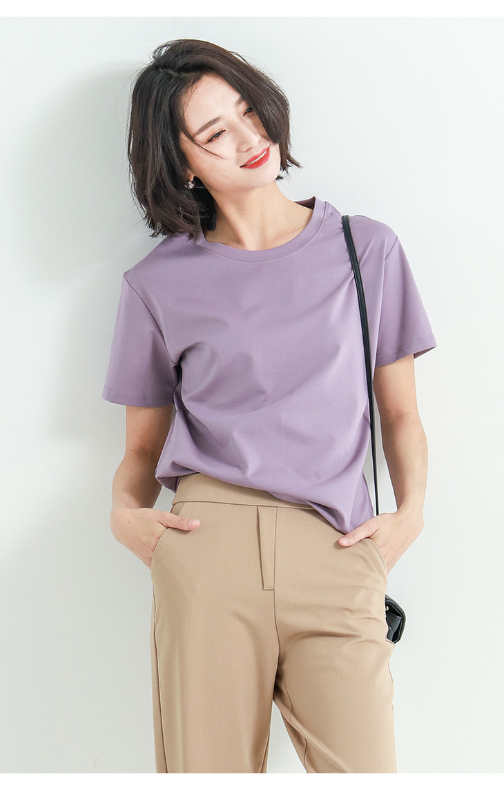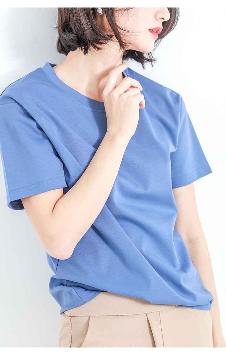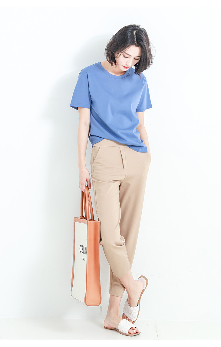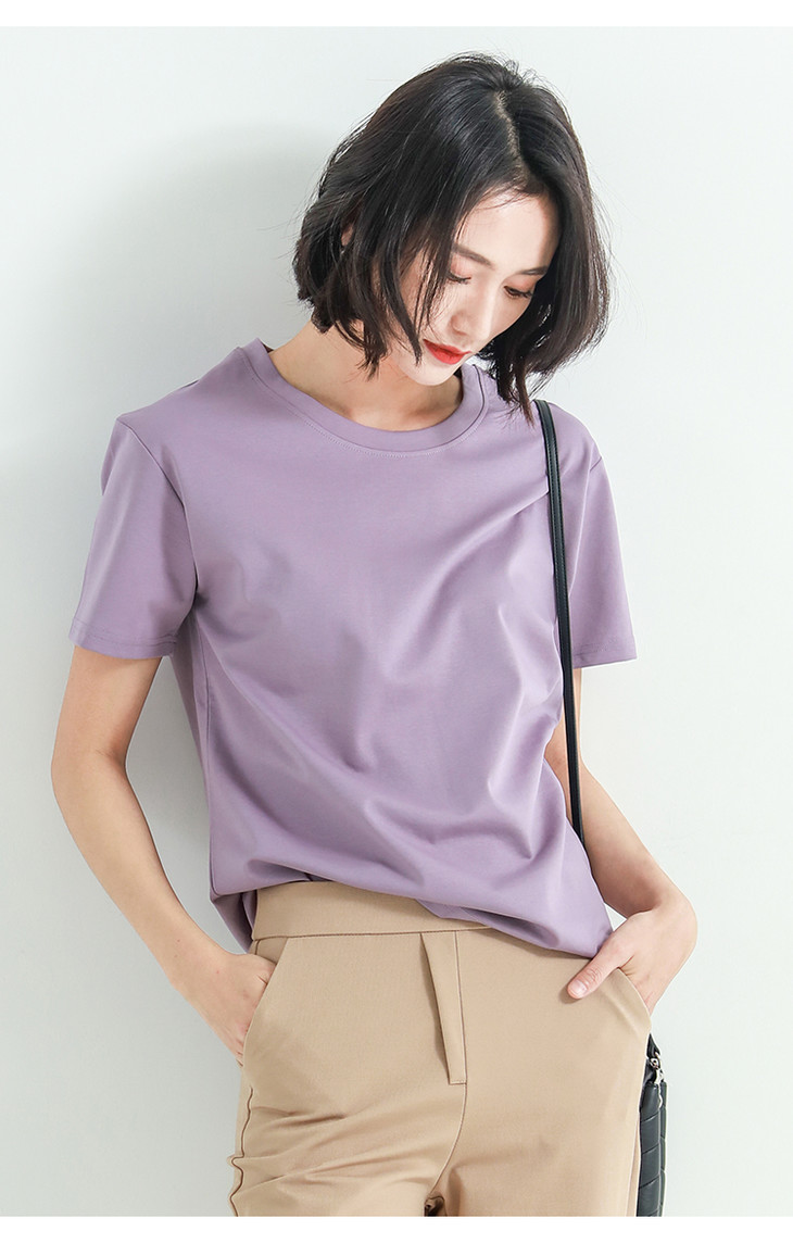 常规款衣长,上身正合适,靠近黄金分割点,干净利落的短袖,经典实用的圆领设计,夏日简约风格,触感温和柔软,带来亲密的贴身体验,而且是小直筒版型,FEI常能遮肉显 瘦。搭配牛仔休闲活力,时装搭配也干练简约,不可或缺的衣橱常青款!