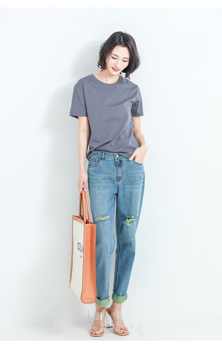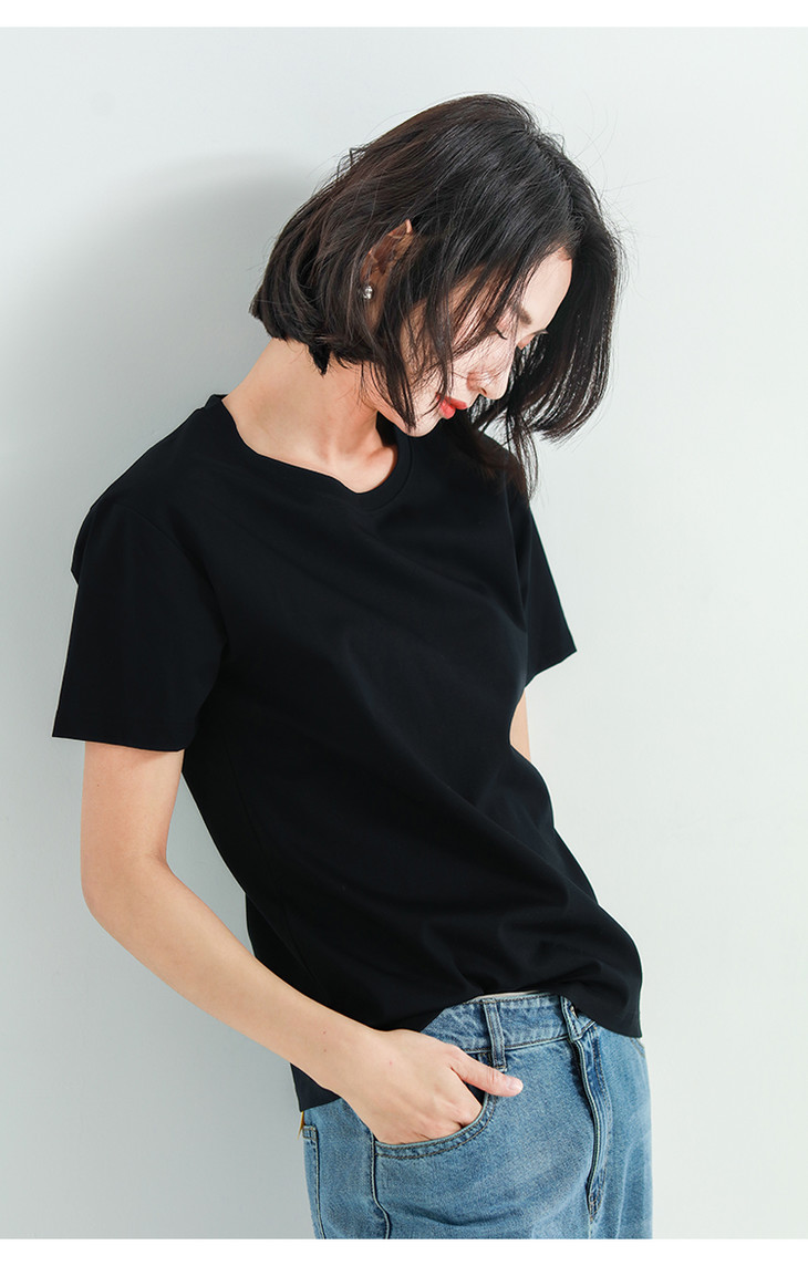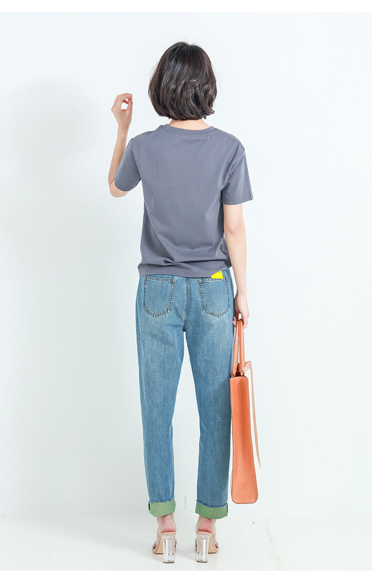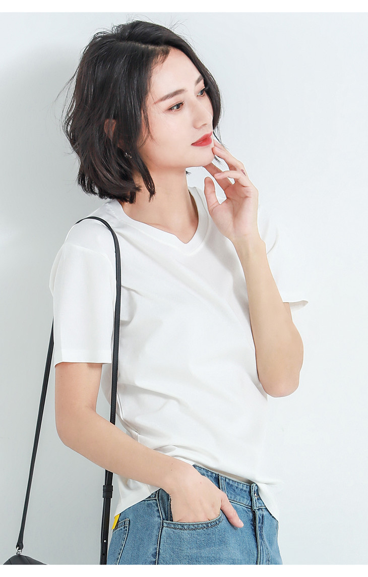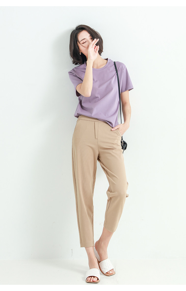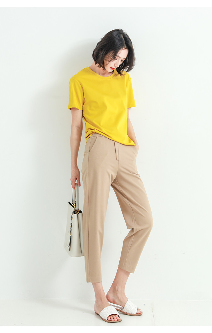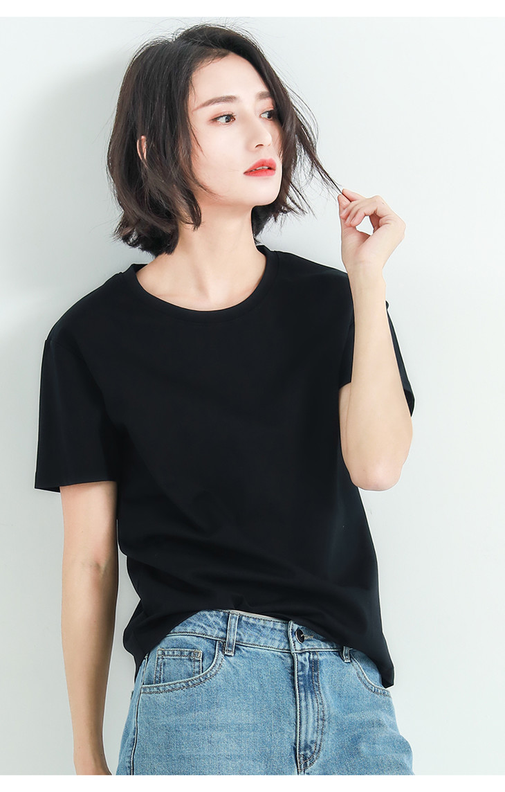 常规款衣长,上身正合适,靠近黄金分割点,干净利落的短袖,经典实用的圆领设计,夏日简约风格,触感温和柔软,带来亲密的贴身体验,而且是小直筒版型,FEI常能遮肉显 瘦。搭配牛仔休闲活力,时装搭配也干练简约,不可或缺的衣橱常青款!