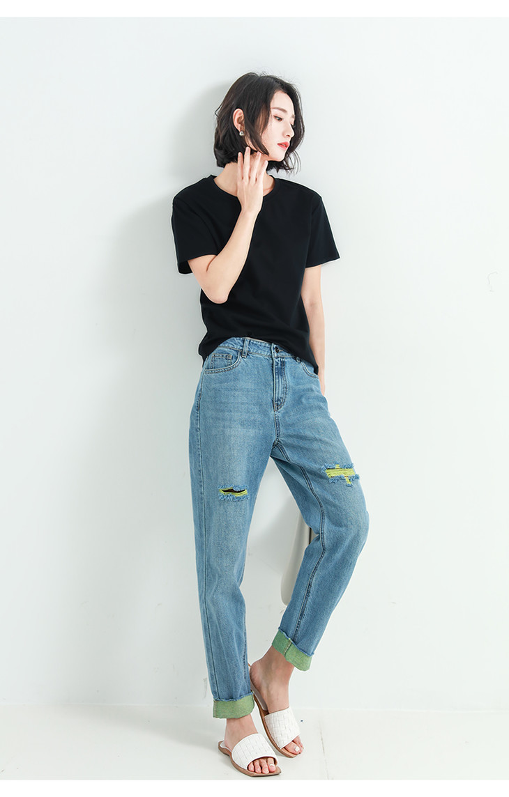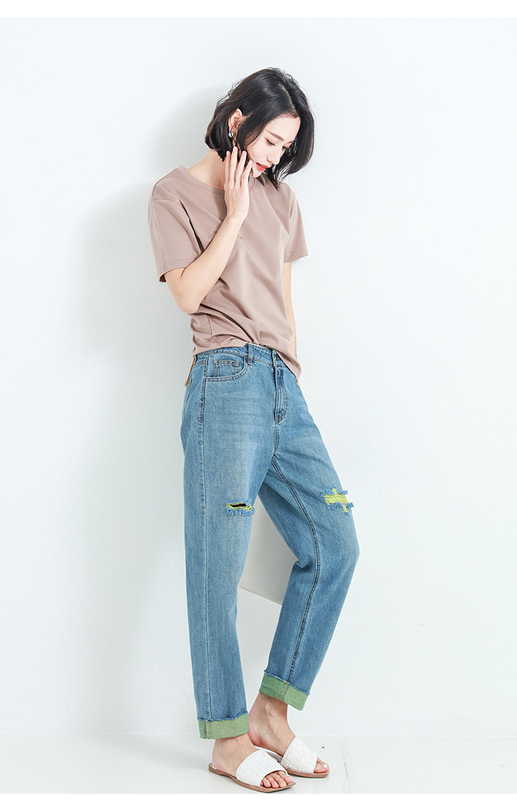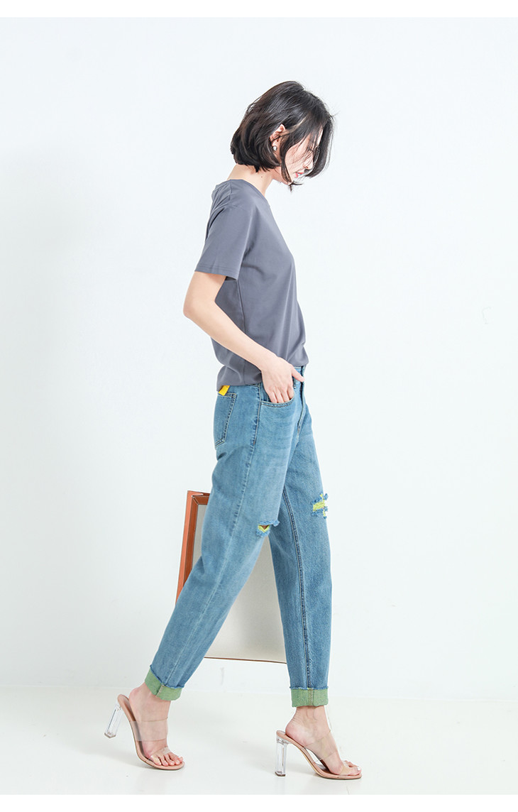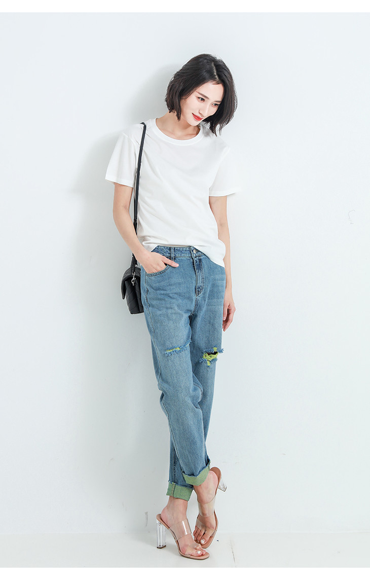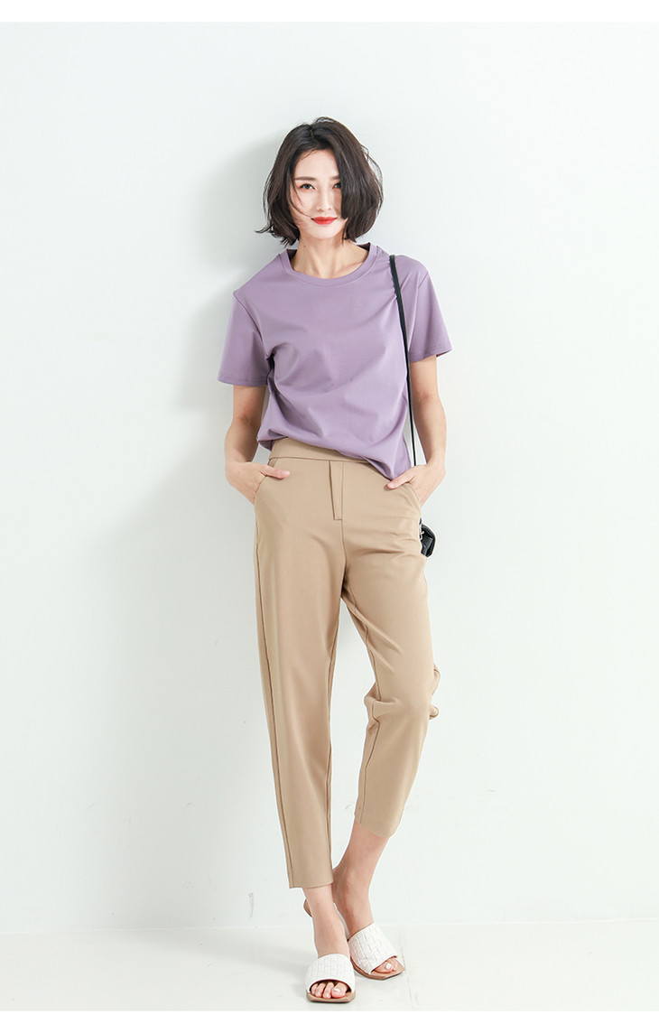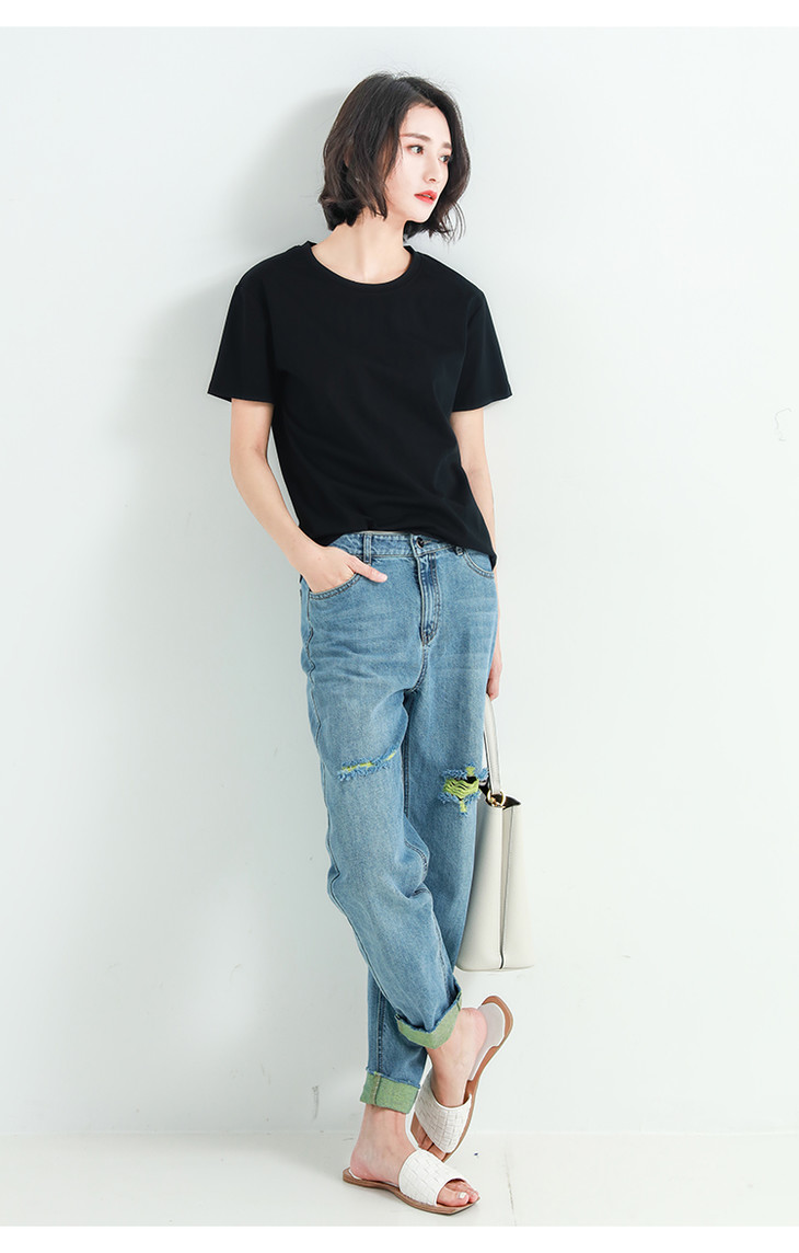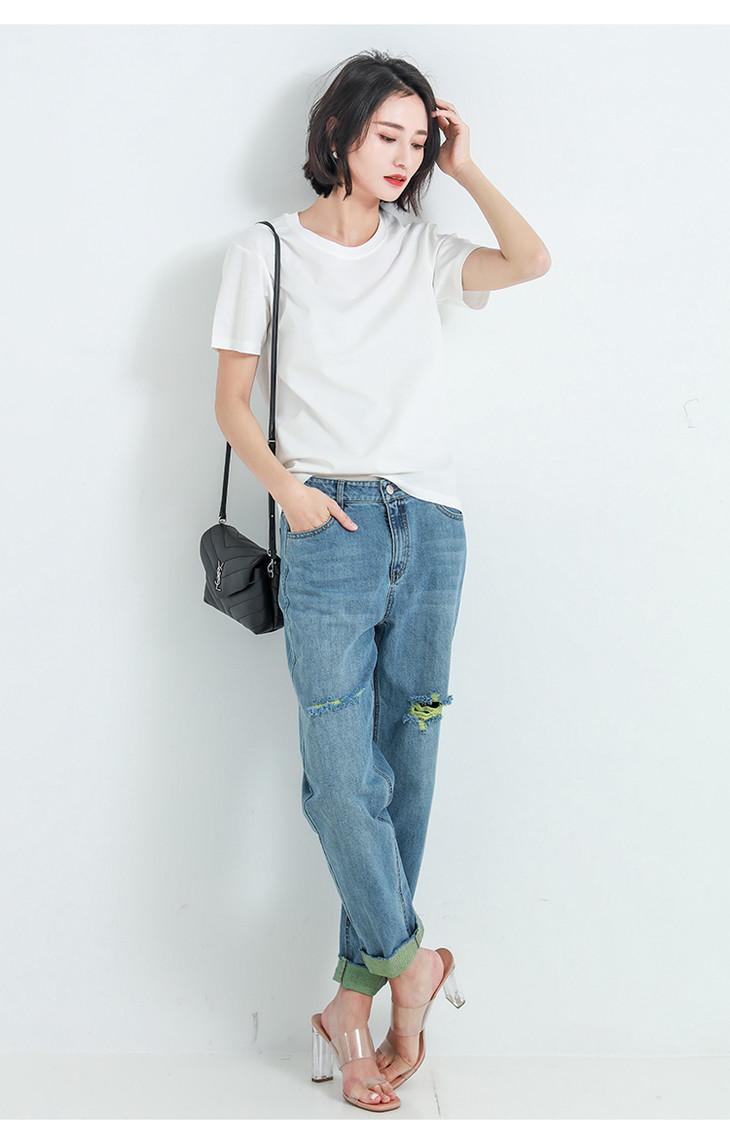 常规款衣长,上身正合适,靠近黄金分割点,干净利落的短袖,经典实用的圆领设计,夏日简约风格,触感温和柔软,带来亲密的贴身体验,而且是小直筒版型,FEI常能遮肉显 瘦。搭配牛仔休闲活力,时装搭配也干练简约,不可或缺的衣橱常青款!