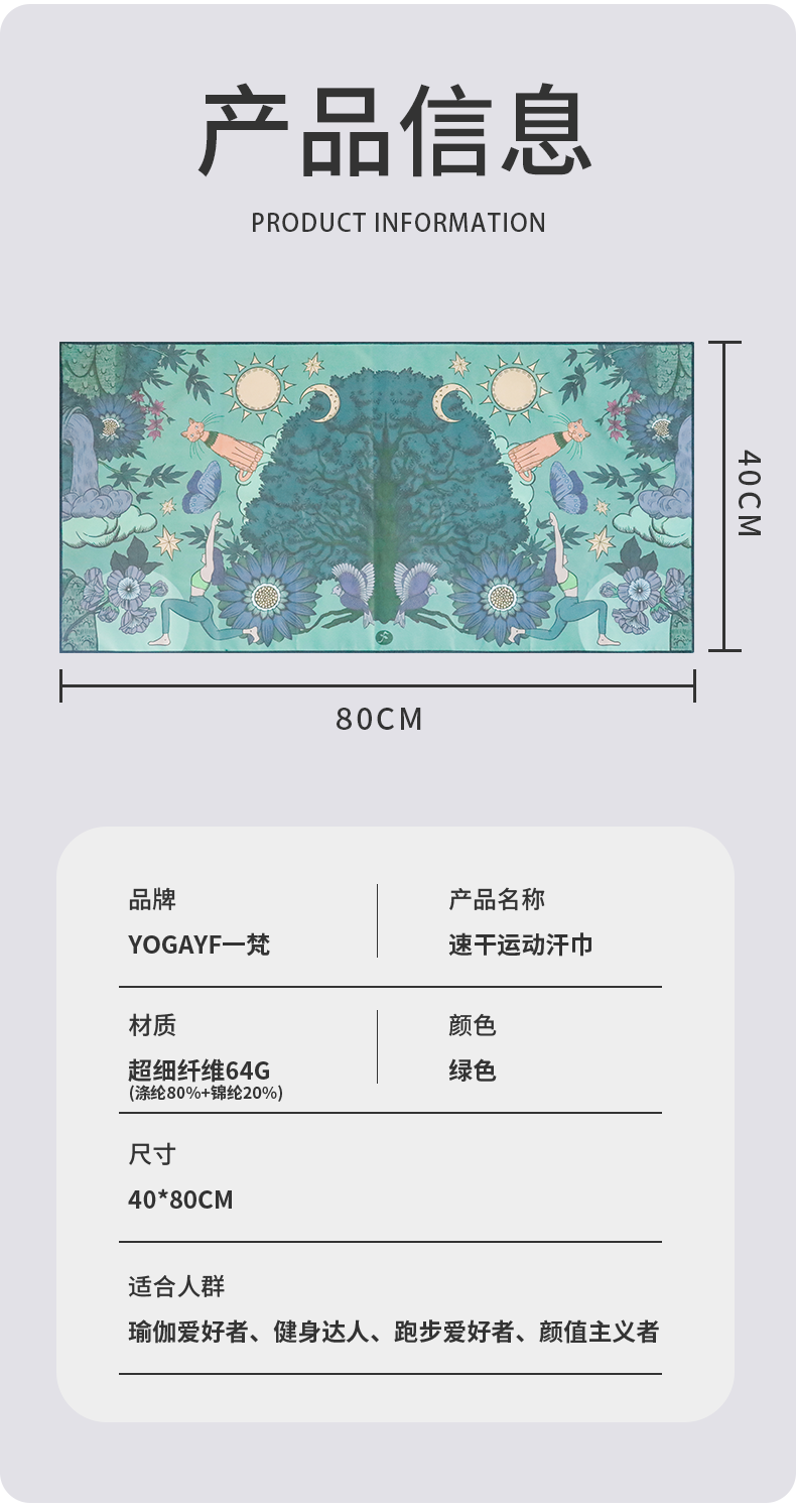 一梵丛林瑜境汗巾40*80cmHJ-DSL 绿色