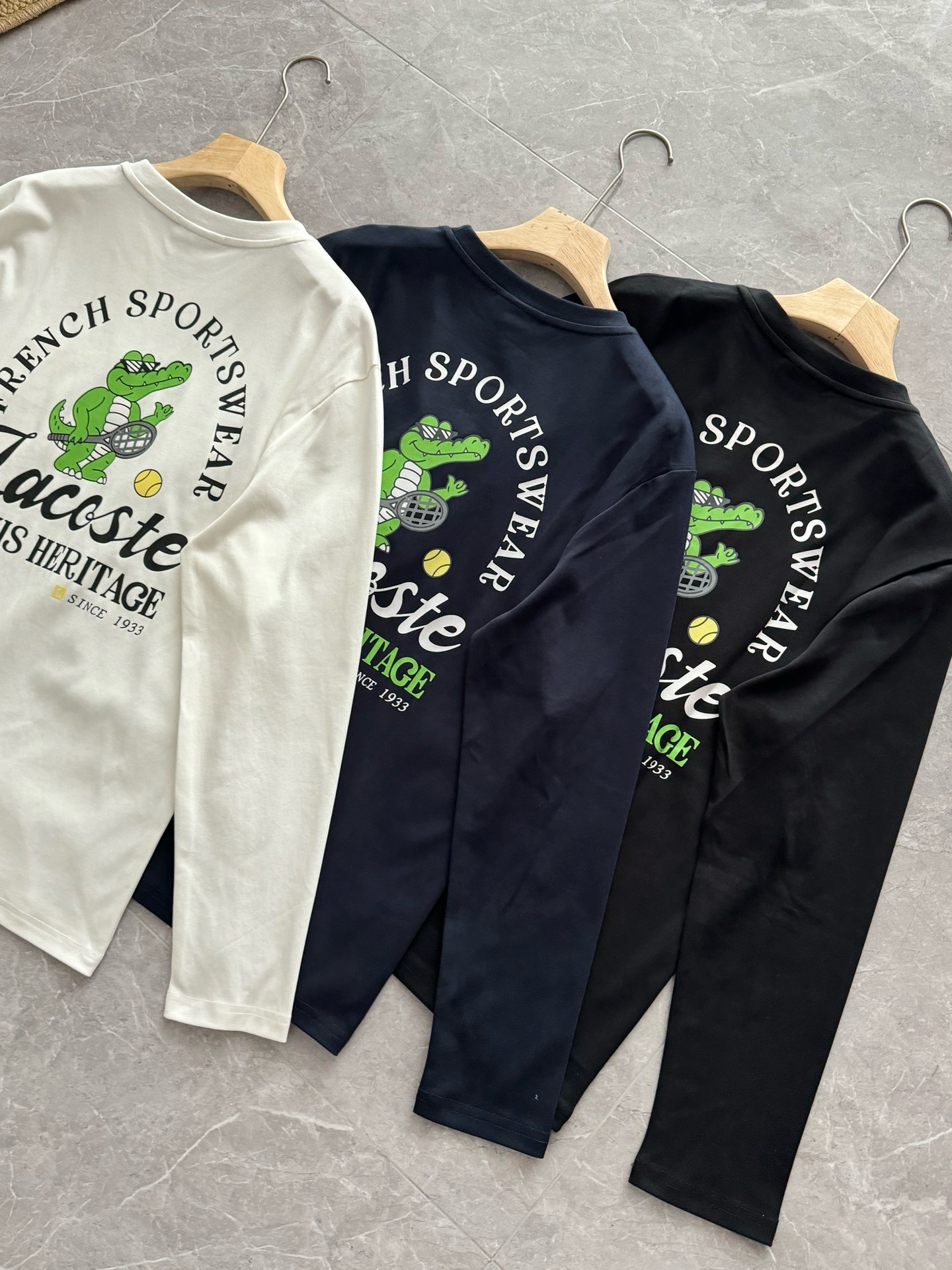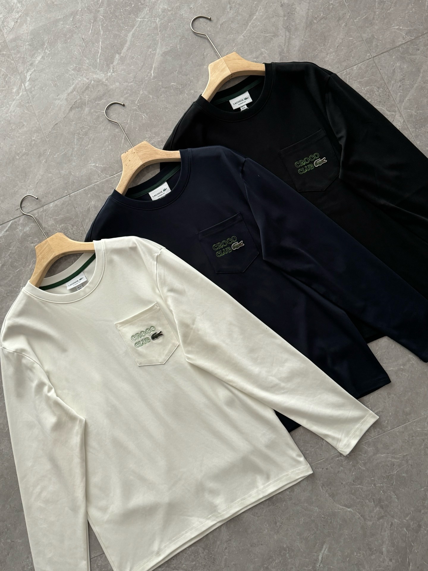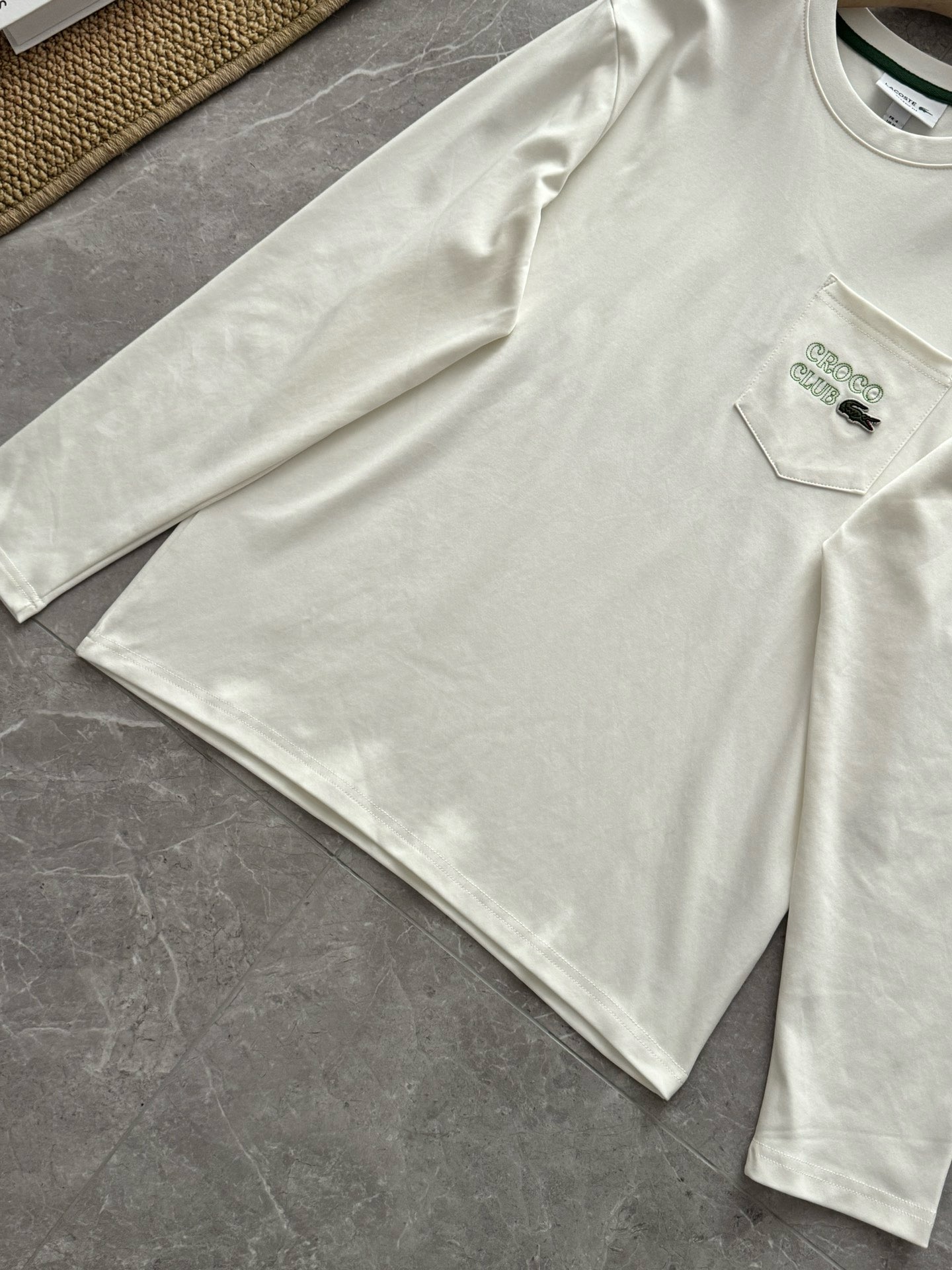 2025秋冬装Lacoste法国鳄鱼长袖T恤 口袋鳄鱼刺绣 后背立体大印花纯棉打底衫情侣基础款,男款官网新款25秋季新款休闲纯棉舒适长袖T恤|高品质首选✔胸前刺绣口袋 后背立体大印花 全部原版面料打版 230克水柔棉洗水面料 不起球不变形