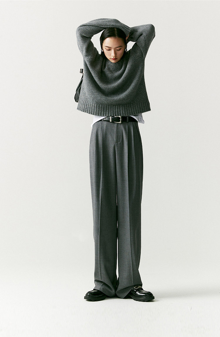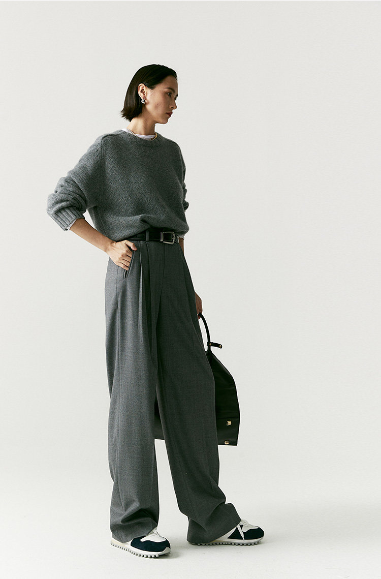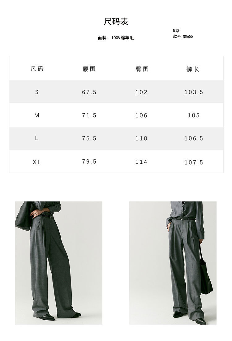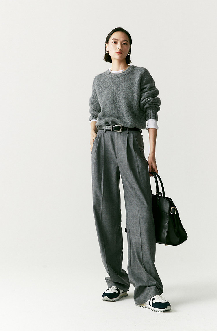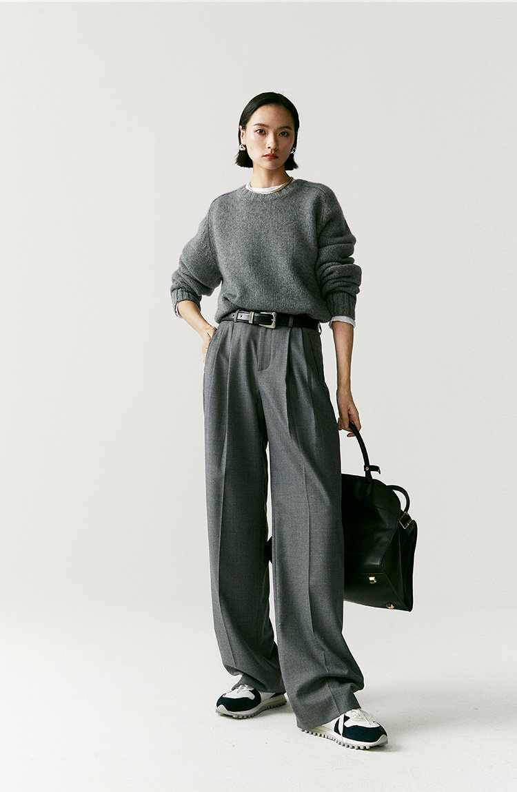 澳毛中高腰老爹裤 巴黎女作家风 90'S复古知识分子 一如既往的松弛而随性 90年代氛围感 巴黎灰 后松紧腰