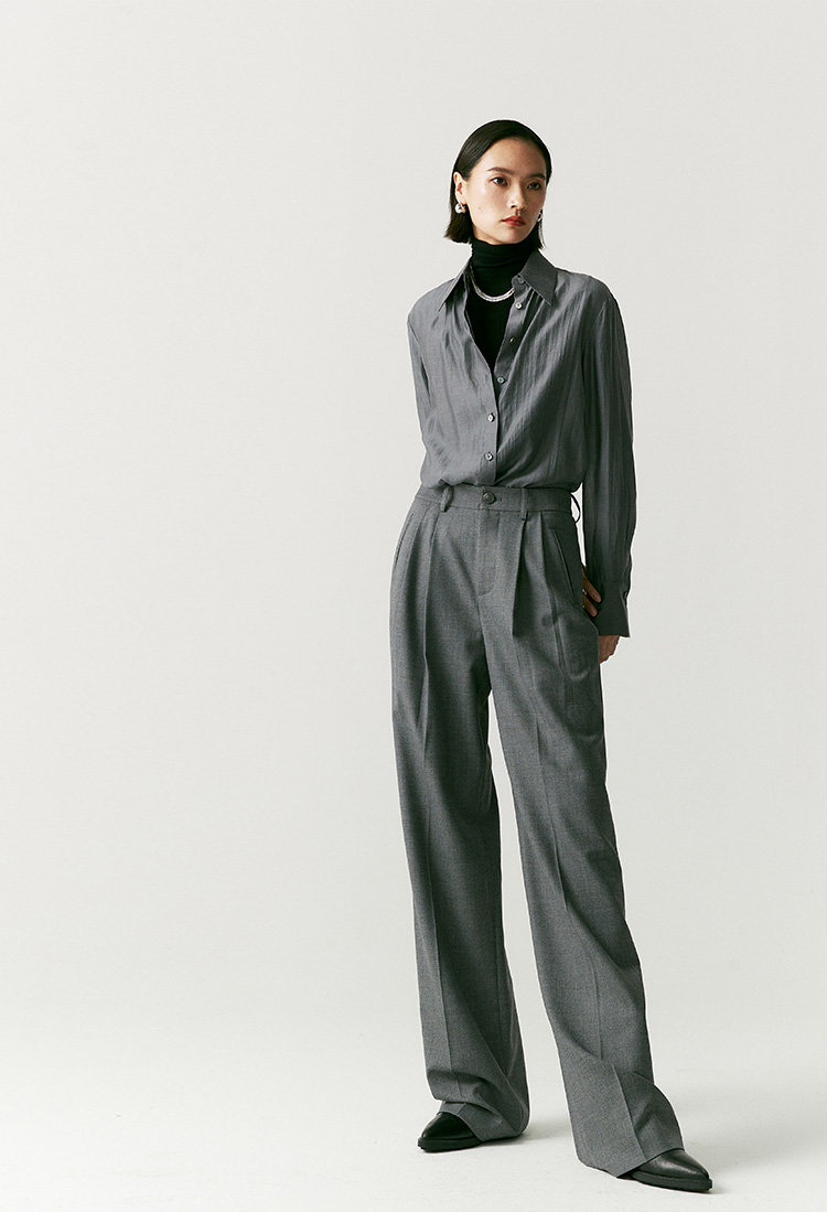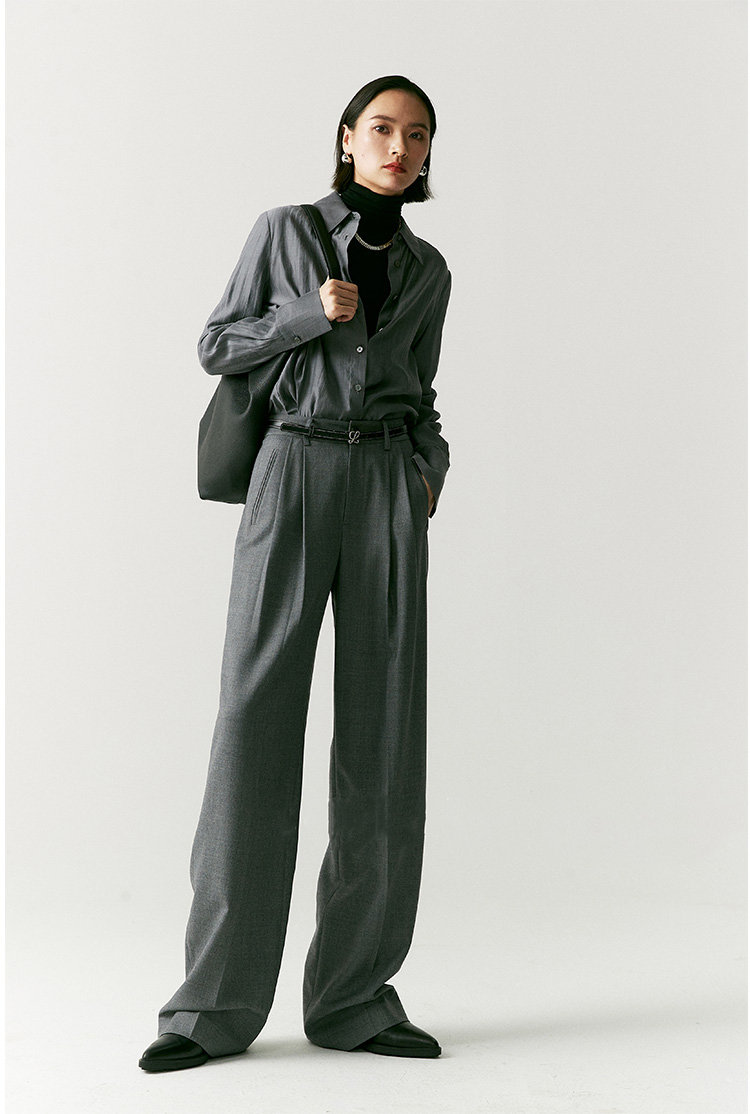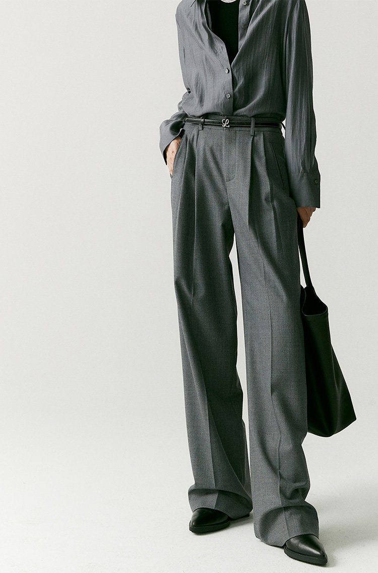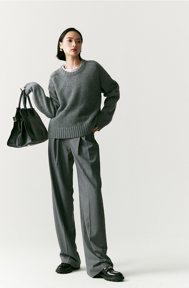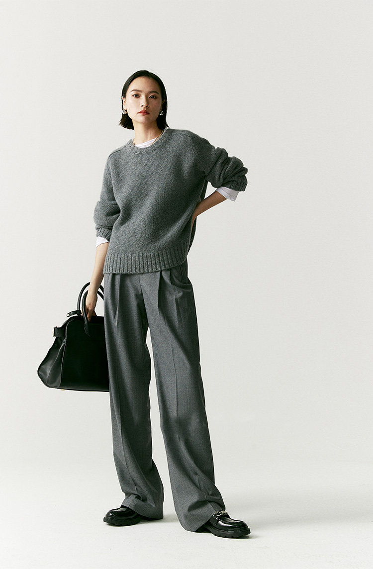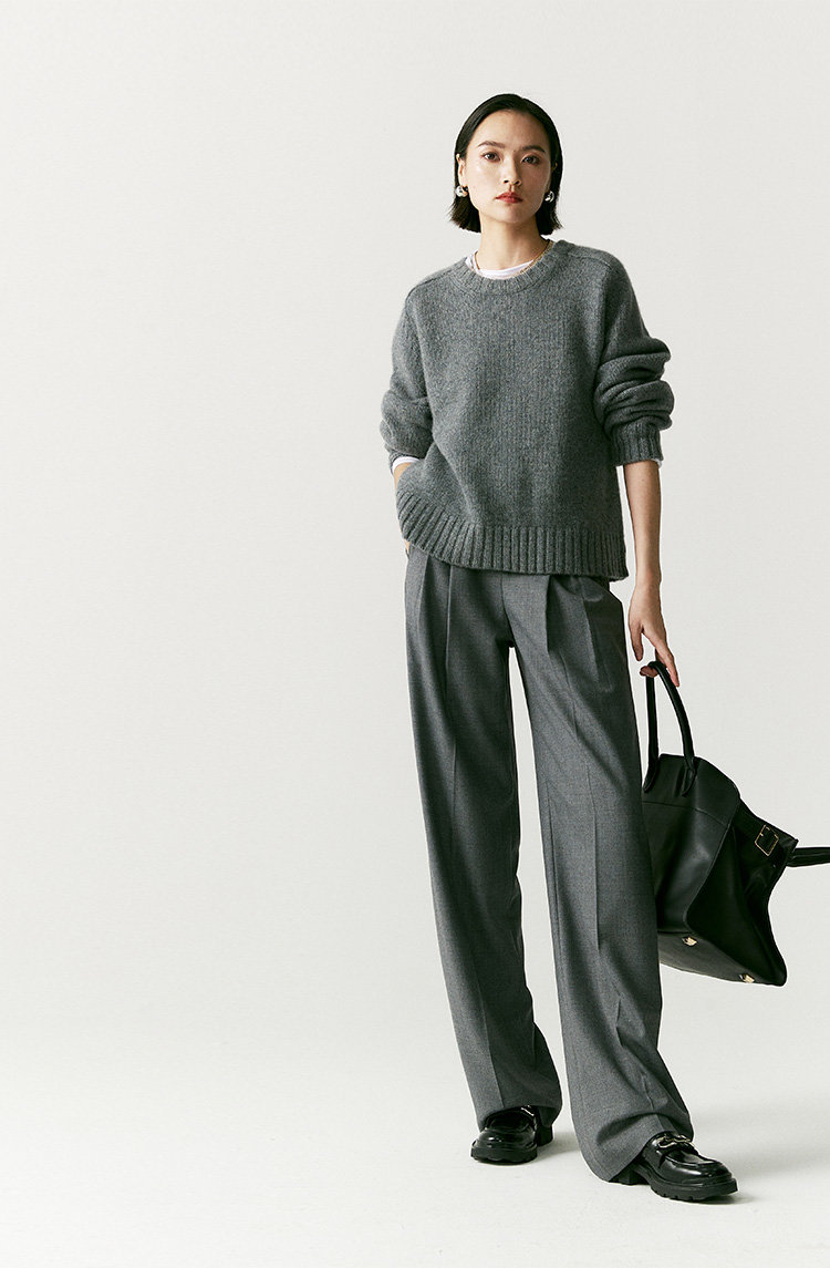 澳毛中高腰老爹裤 巴黎女作家风 90'S复古知识分子 一如既往的松弛而随性 90年代氛围感 巴黎灰 后松紧腰
