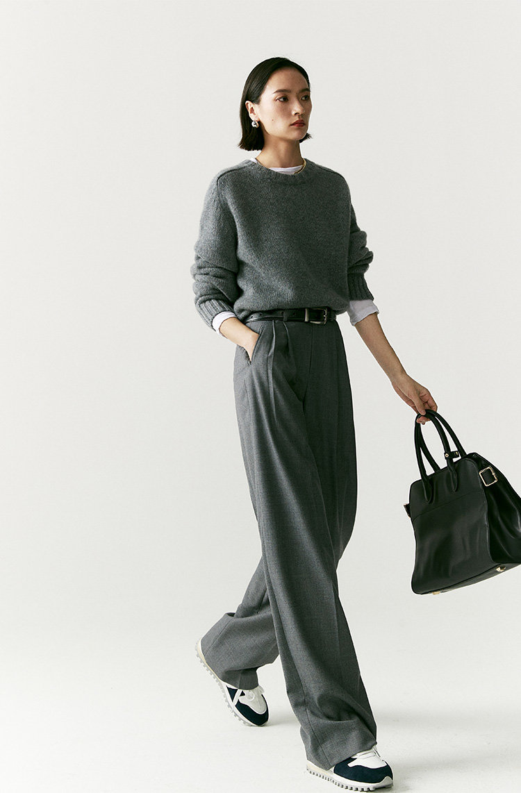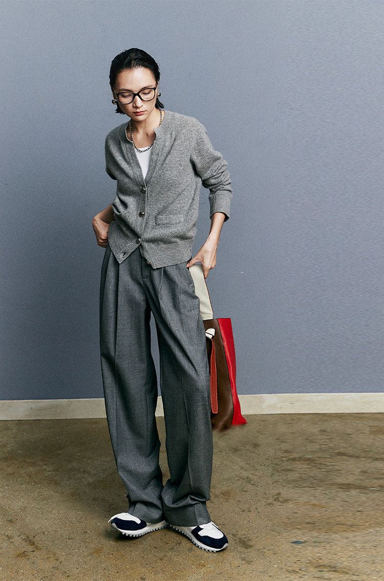 一如既往的松弛而随性澳毛老爹裤必入,洒脱气质非华丽可堆砌,渲染复古知性90年代氛围。