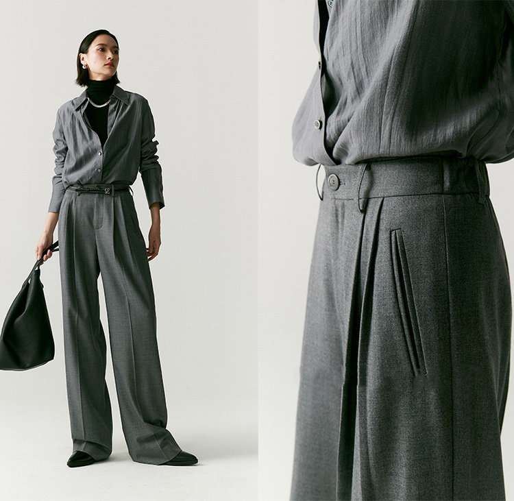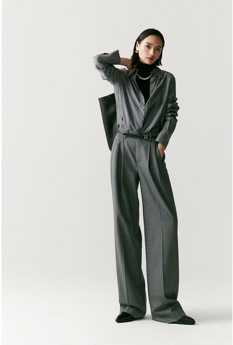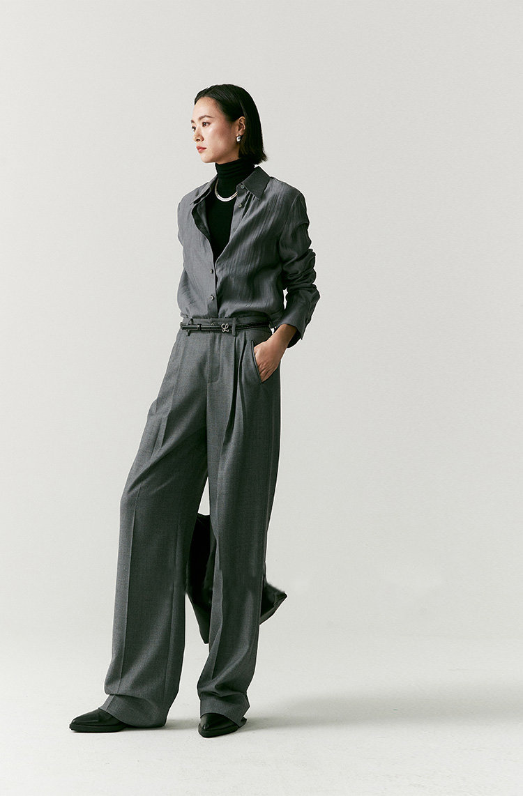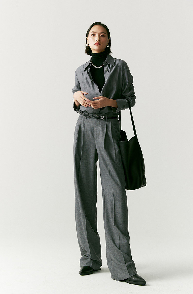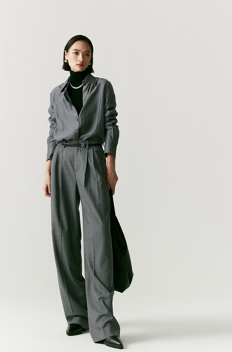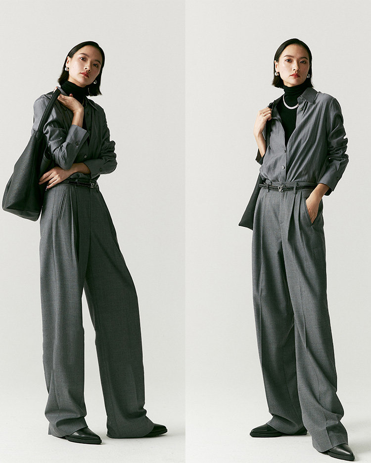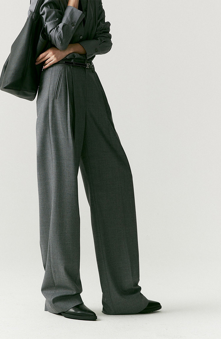 澳毛双面料塑造静奢格调,松弛底色之上立刻打开通勤局面。会比一般老爹裤的气质更加内敛,慵懒中也是克制时髦,漫不经心的时尚感,展现睿智 疏离 高级的各种情绪。有它温柔相伴,即便在行色匆匆街头也不显单薄,下一秒就能融入城市喧嚣中。刚刚好的洒脱度,就想要这样的,这条立体的维度容量好,洒脱感完全够,且不会太阔,雅痞雅痞的感觉,日常通勤很得体呀。