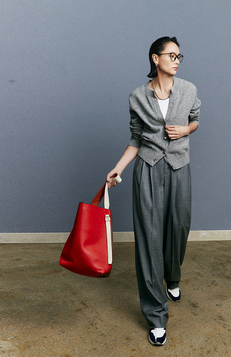 新自由通勤穿搭模板可借鉴,一身冷静灰色,配的却是运动鞋,严肃与休闲之间来回切换,风格多变!