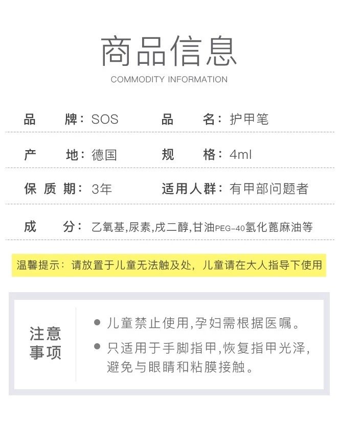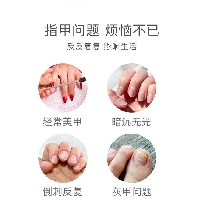 3、高效杀菌成分,软化指甲修复受损,长出健康新指甲。