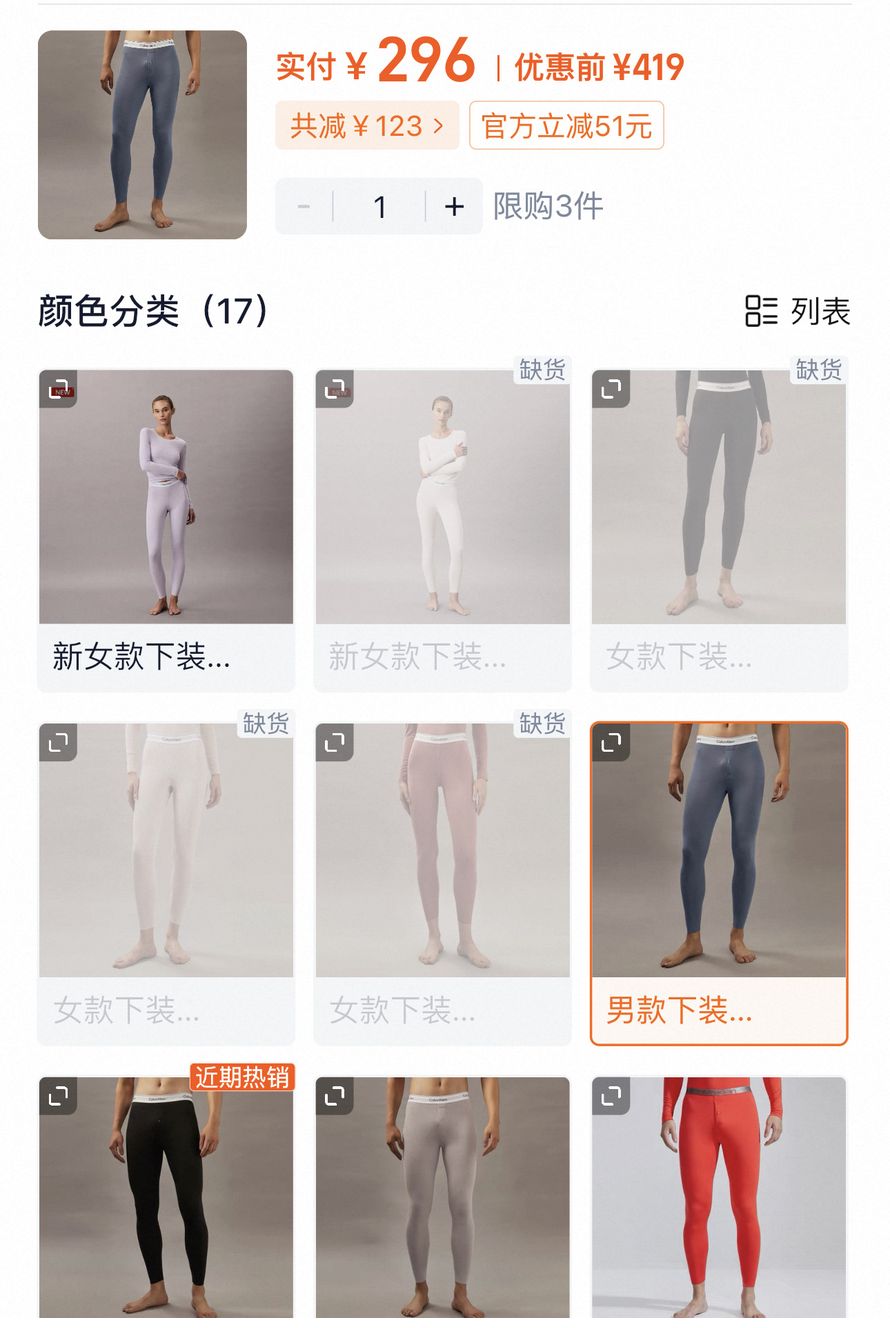 两款Ck保暖内衣套装