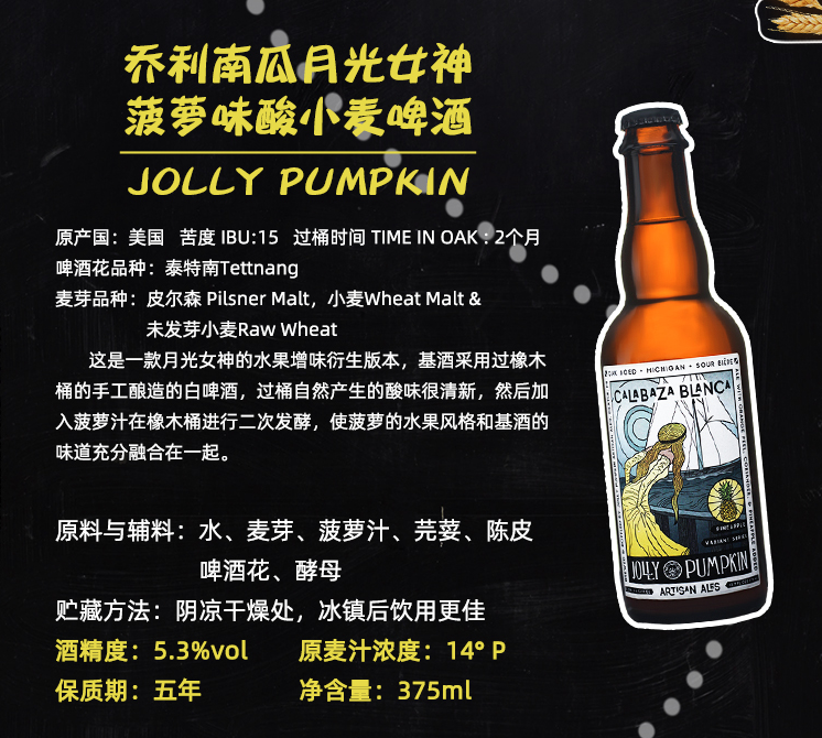 【冷库储存】美国乔利南瓜月光女神菠萝味酸小麦啤酒5.3%vol