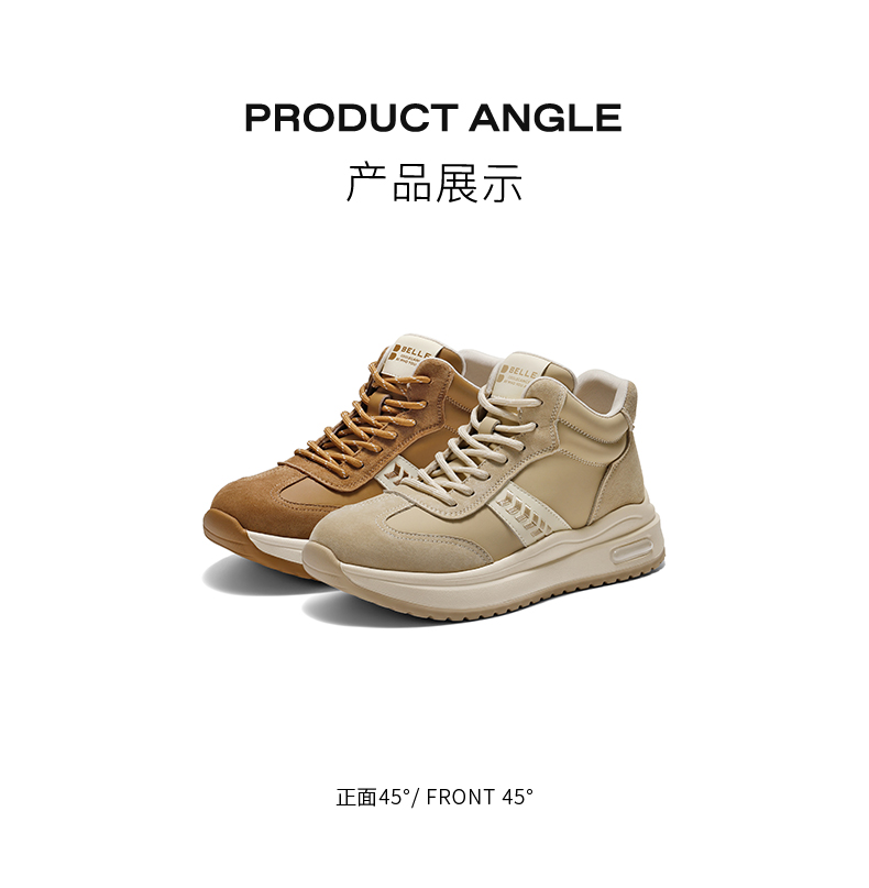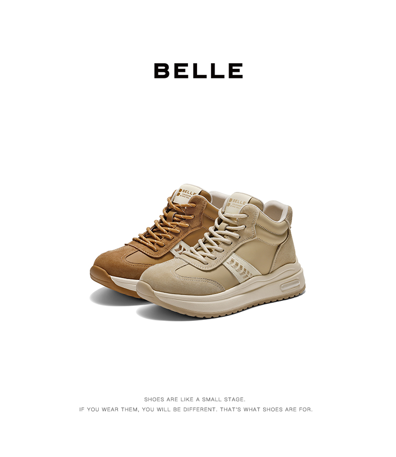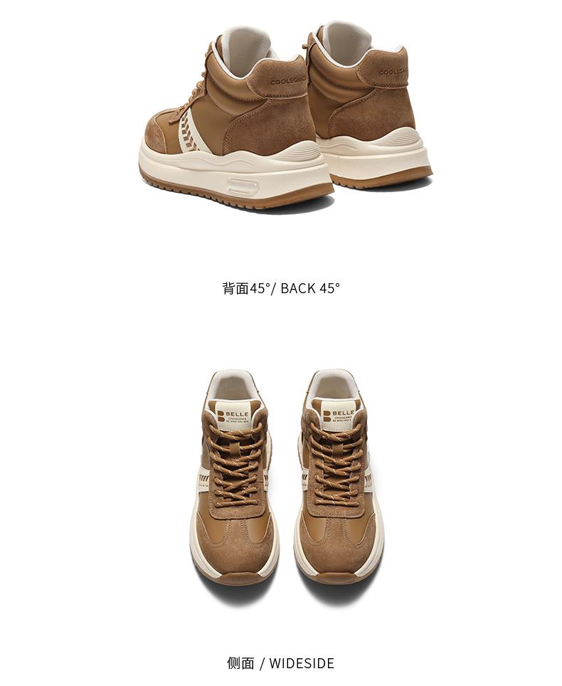 BF楼 百丽女鞋子复古高帮加绒阿甘鞋冬季舒适厚底增高休闲短靴E5V1DDD5