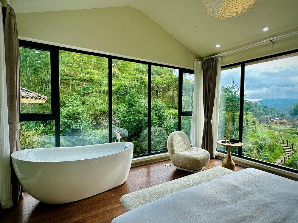 民宿群落共16栋,主要分布在村庄的半山或临田区域,由三大国内高端民宿品牌组成。每一栋都在拥有绝佳视野的同时,可以私享一方静谧空间。
