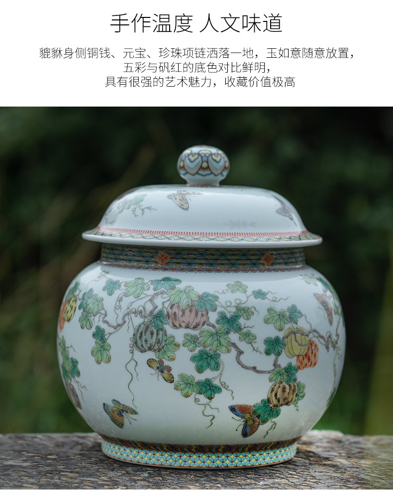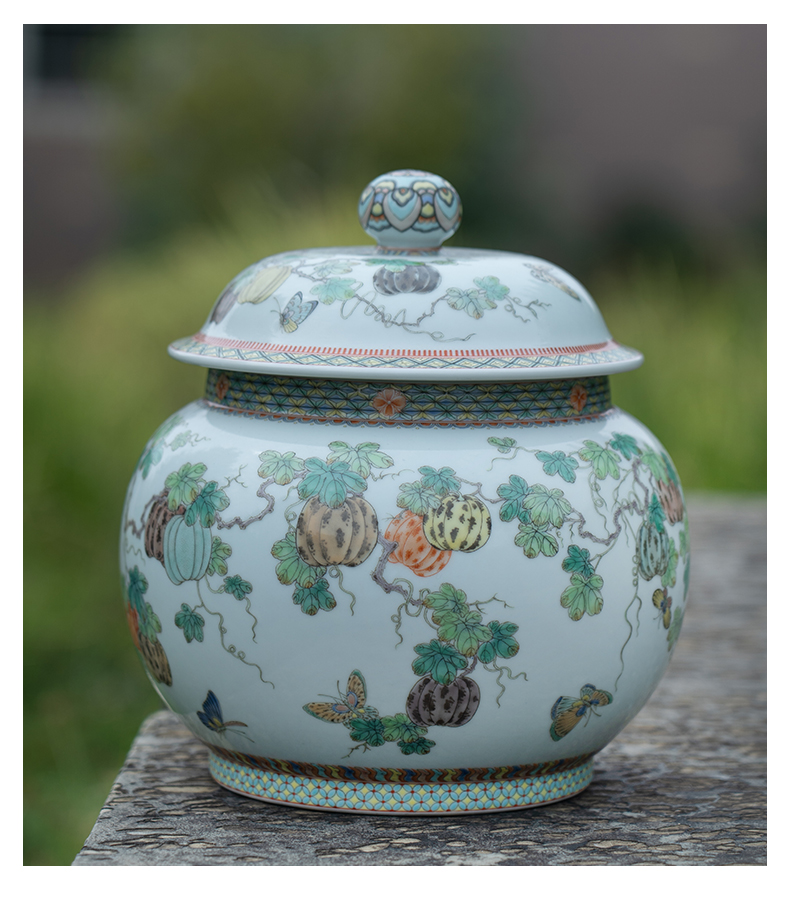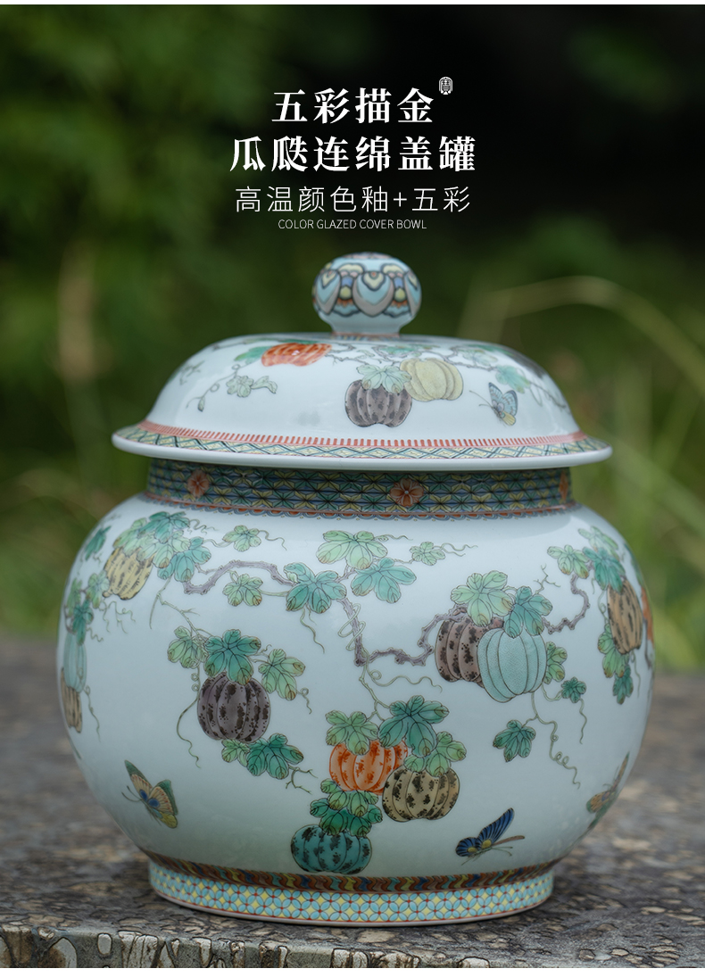 五彩描金瓜瓞连绵盖罐