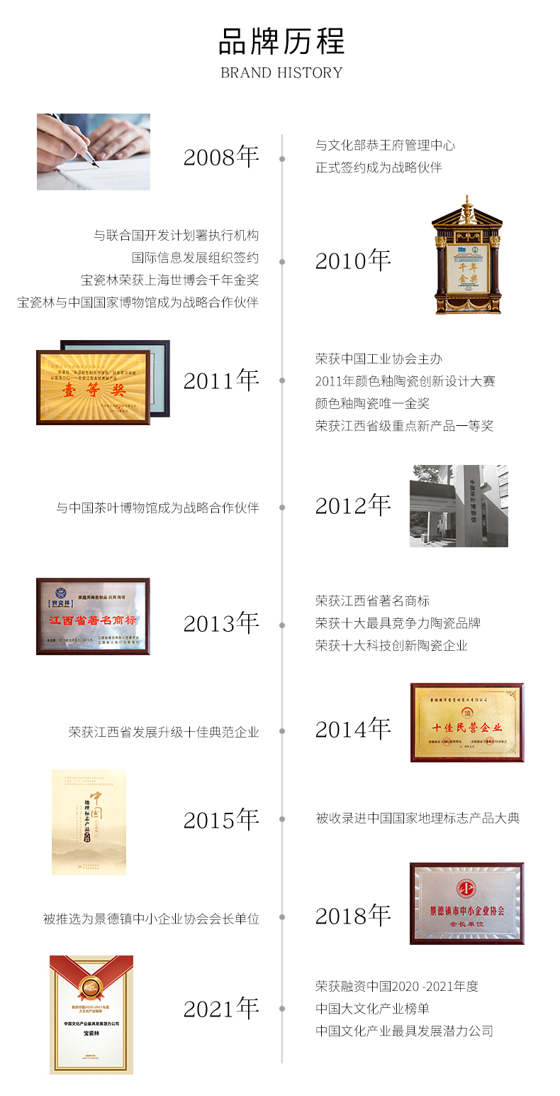 宝瓷林,2008年创立,是一家将传统清宫官窑制瓷技艺,移植于当代家居日用瓷品上的景德镇陶瓷骨干企业,是当下唯一一家代表“千年瓷都-景德镇”走向全球的陶瓷连锁品牌,被誉为陶瓷界的“国酒茅台”。