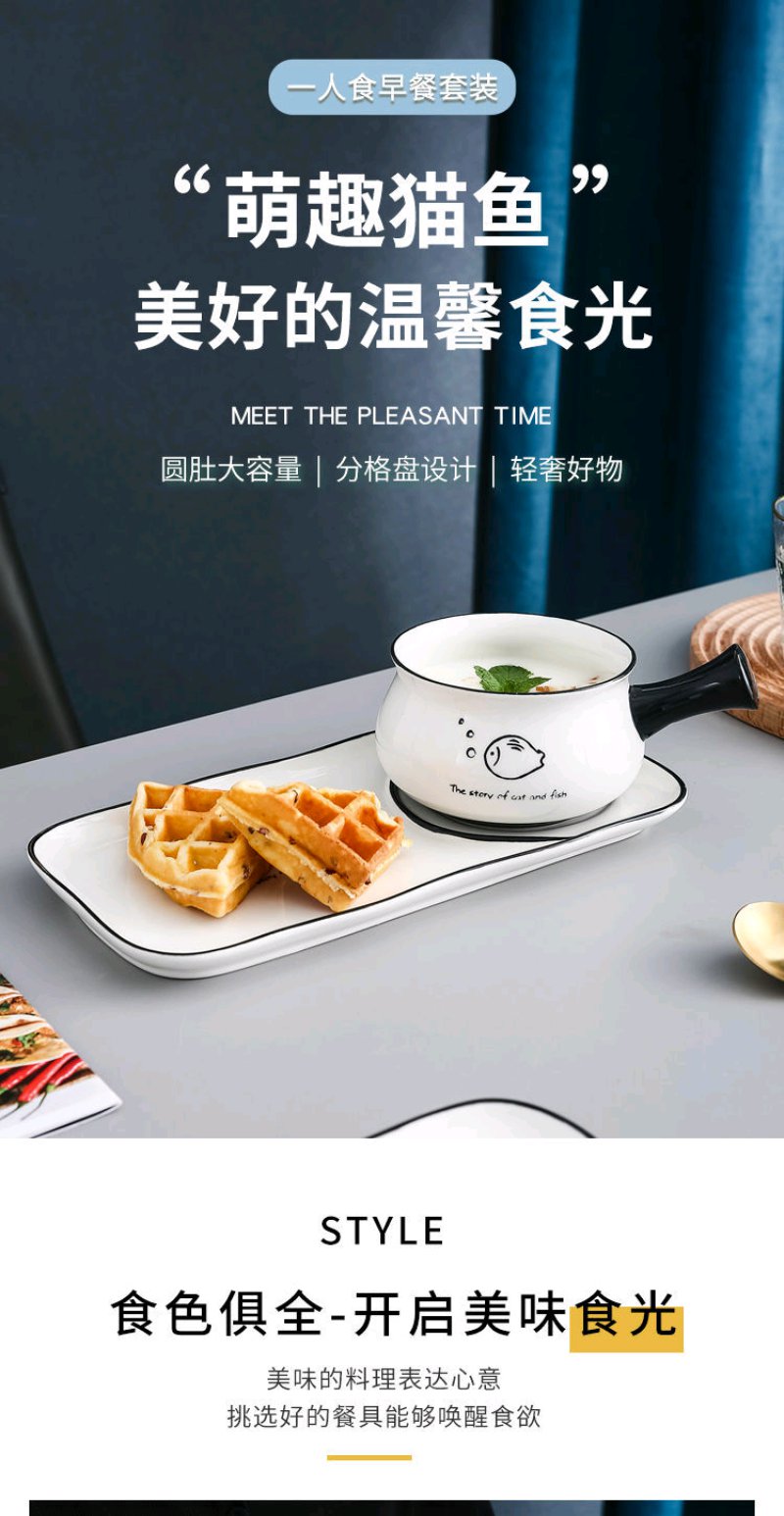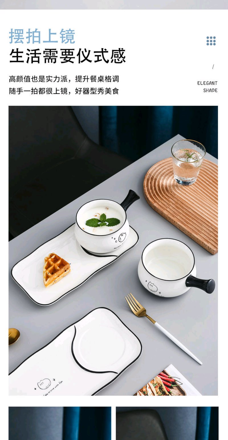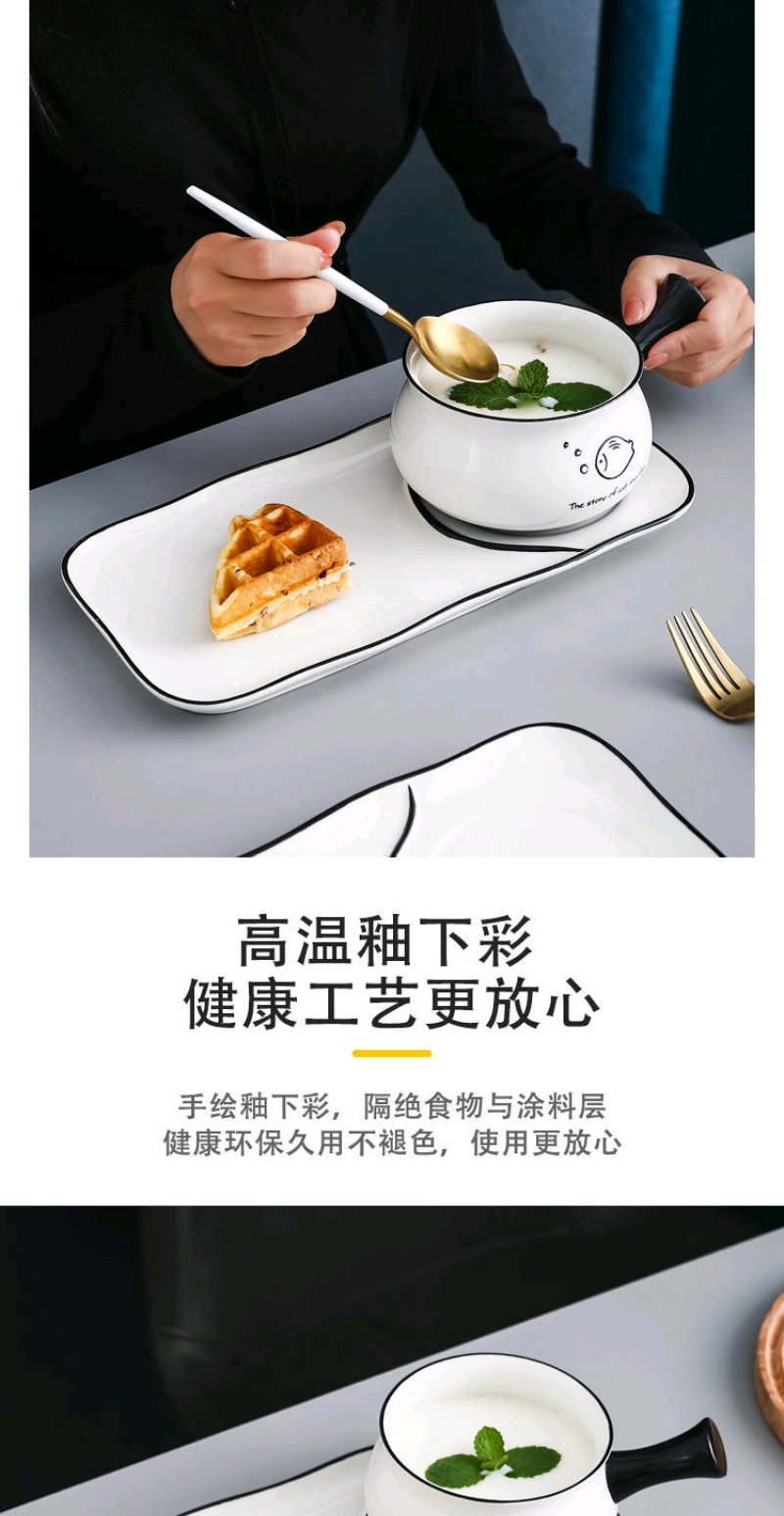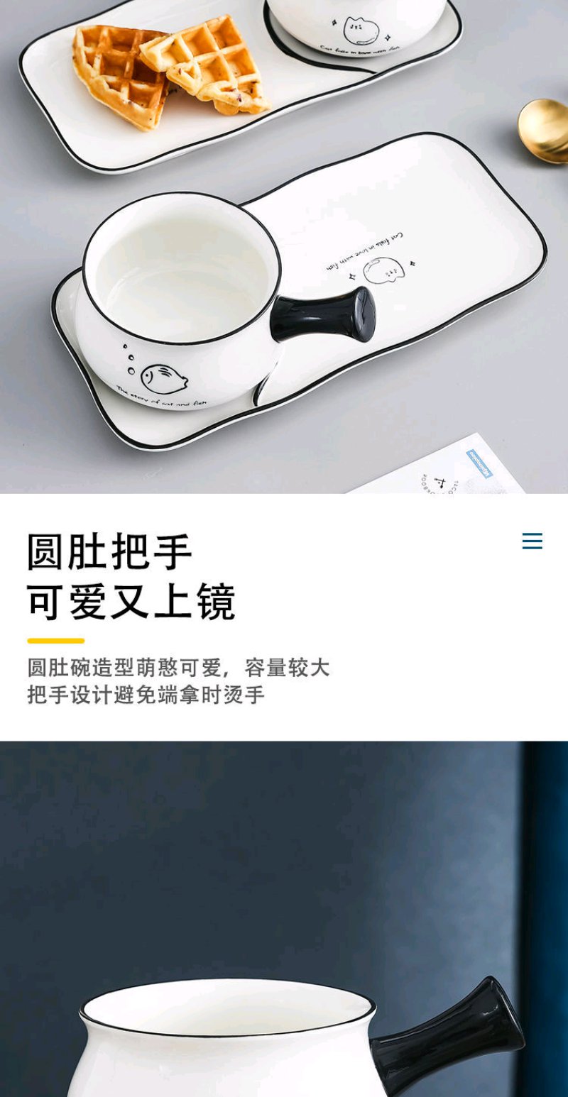 早餐带手柄碗碟盘子创意组合套装家用北欧风网红可爱日式陶瓷餐具