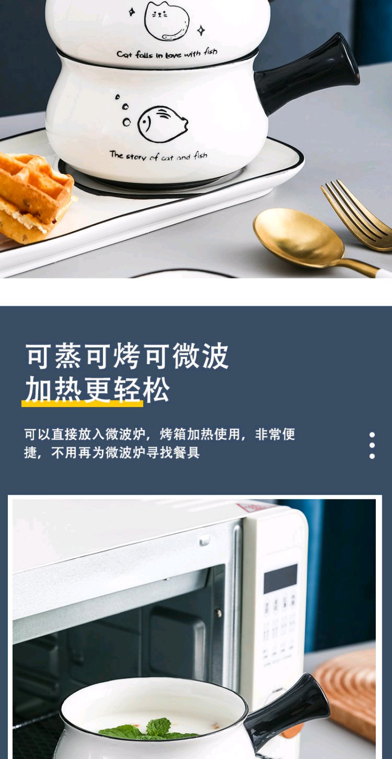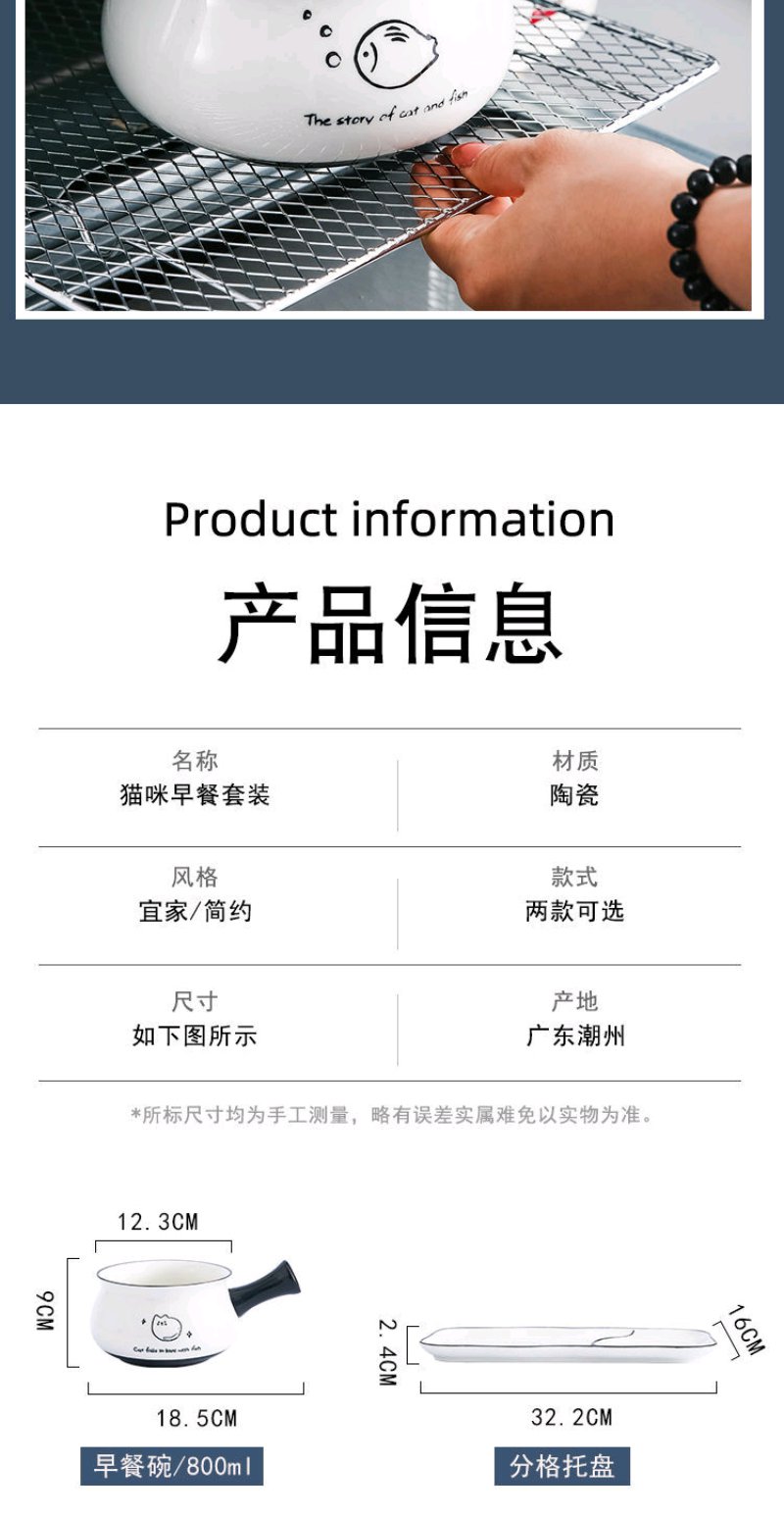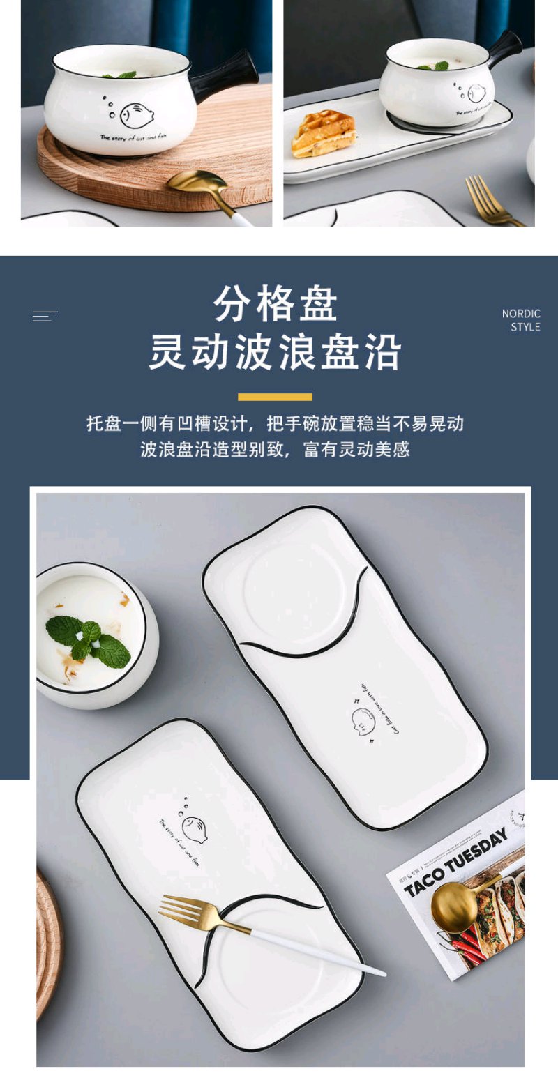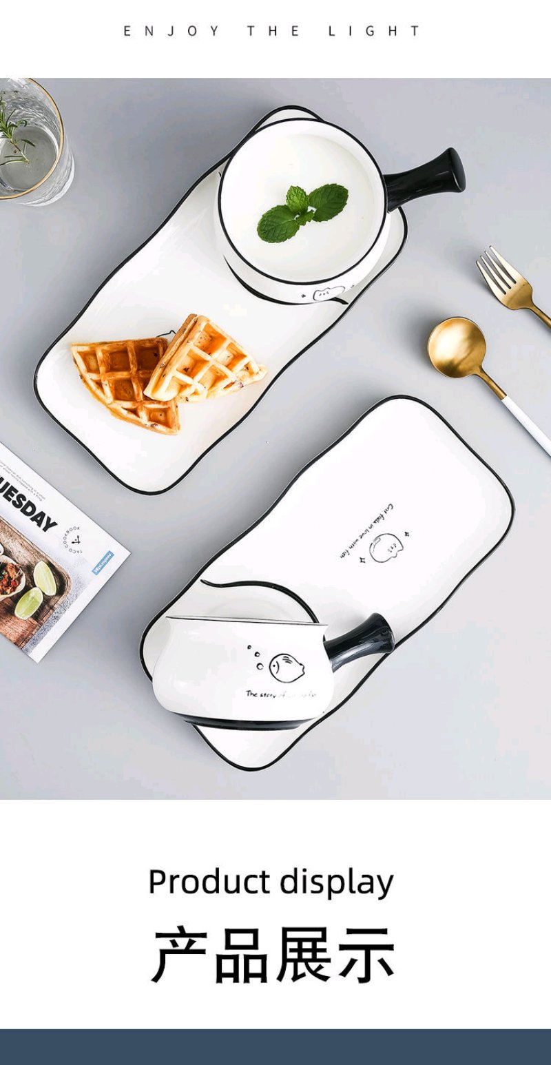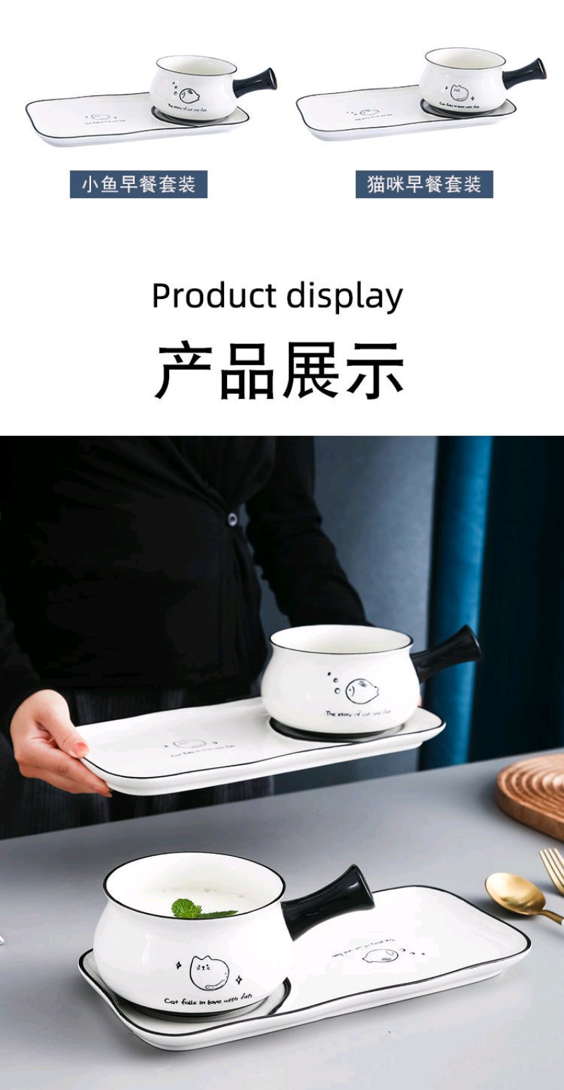早餐带手柄碗碟盘子创意组合套装家用北欧风网红可爱日式陶瓷餐具
