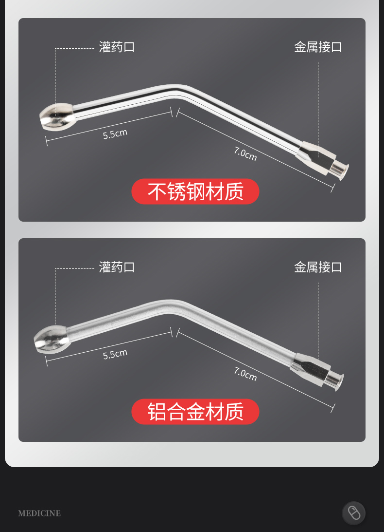 兽用灌药器不锈钢灌药嘴铝合金猪牛羊灌药神器喂药嘴针管