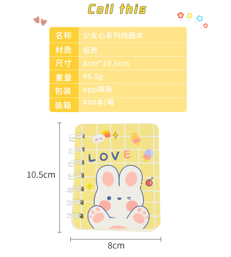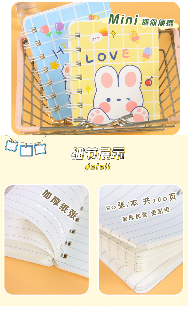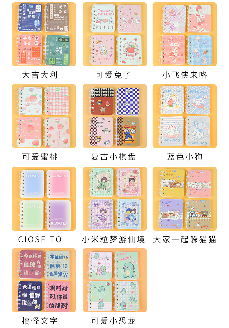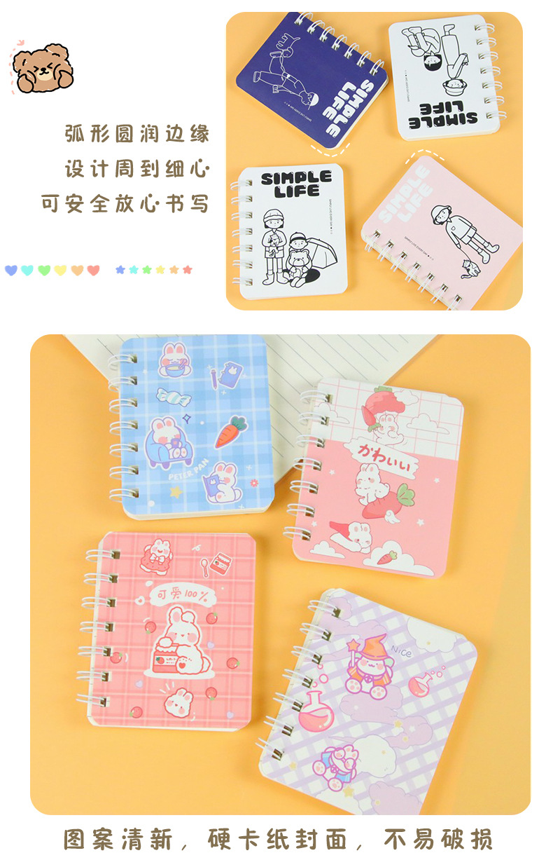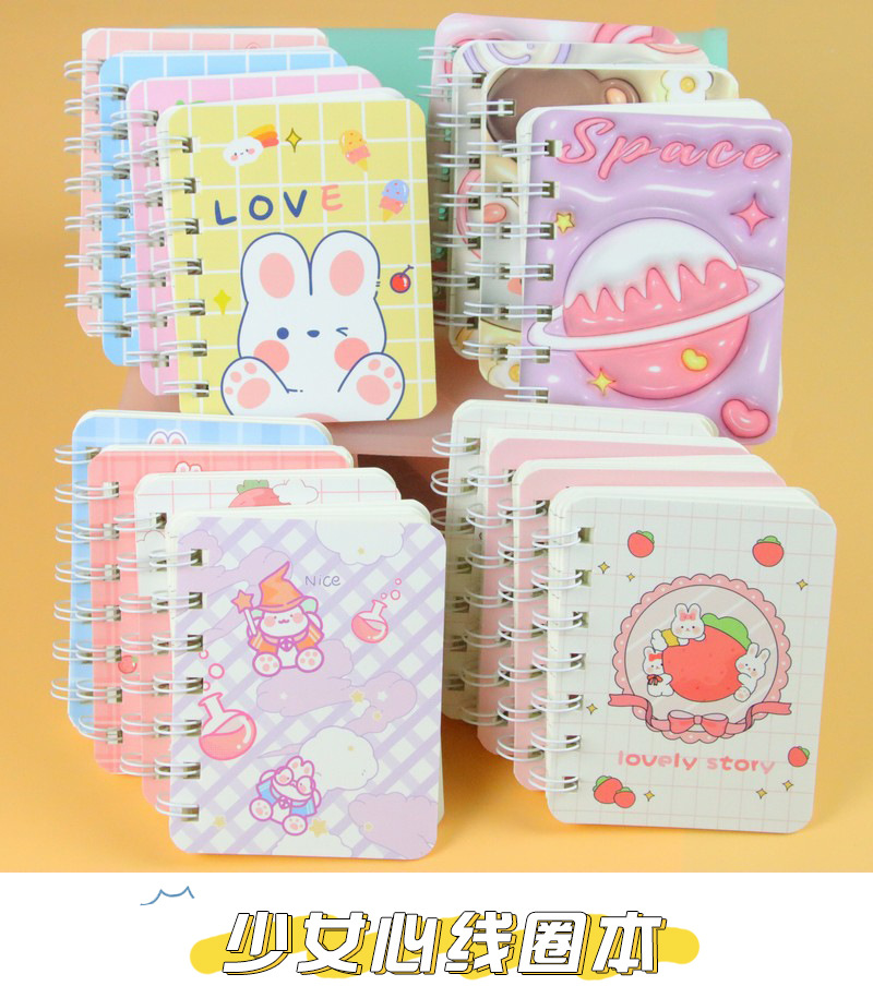 卡通小本子A7侧翻线圈笔记本160页/本 可爱高颜值学生笔记本便携迷你记事本