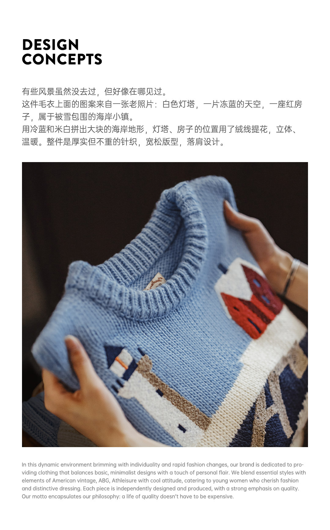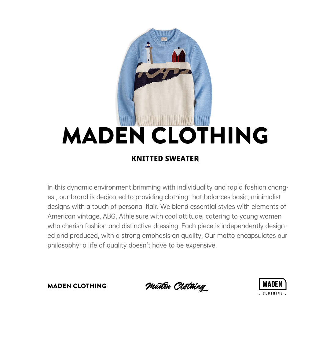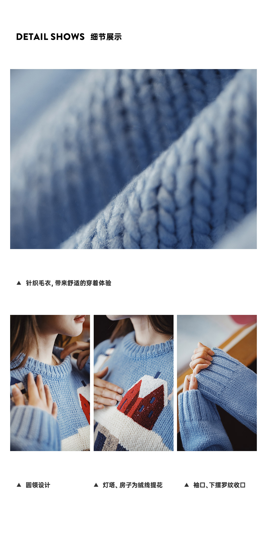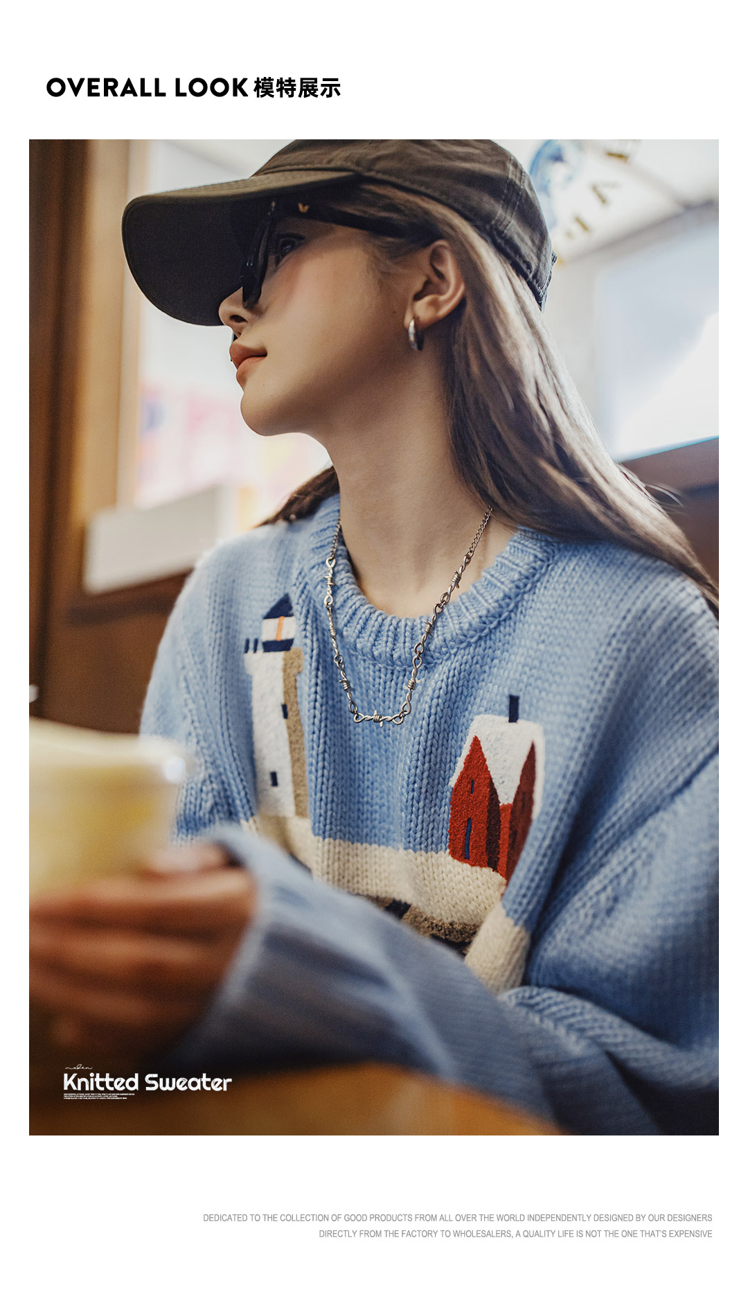 马登复古圆领宽松加厚针织提花毛衣休闲保暖外穿粗毛线上衣秋冬女