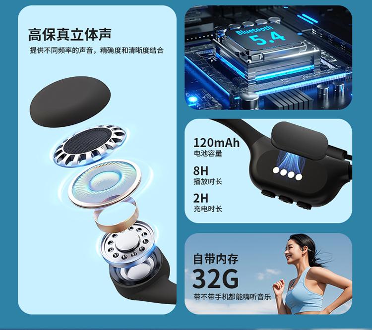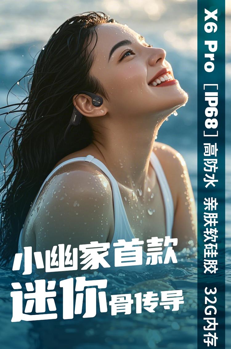 小幽 新款骨传导耳机X6PRO专业级防水32G内存蓝牙5.4跑步游泳骑行