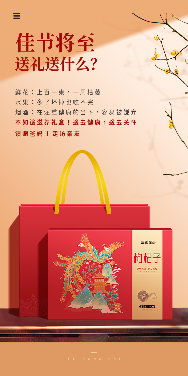 福东海 宁夏红枸杞礼盒苟杞子中宁免洗红枸杞子枸杞茶滋补品360g