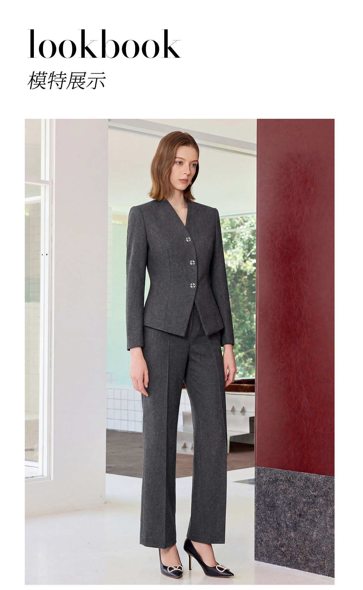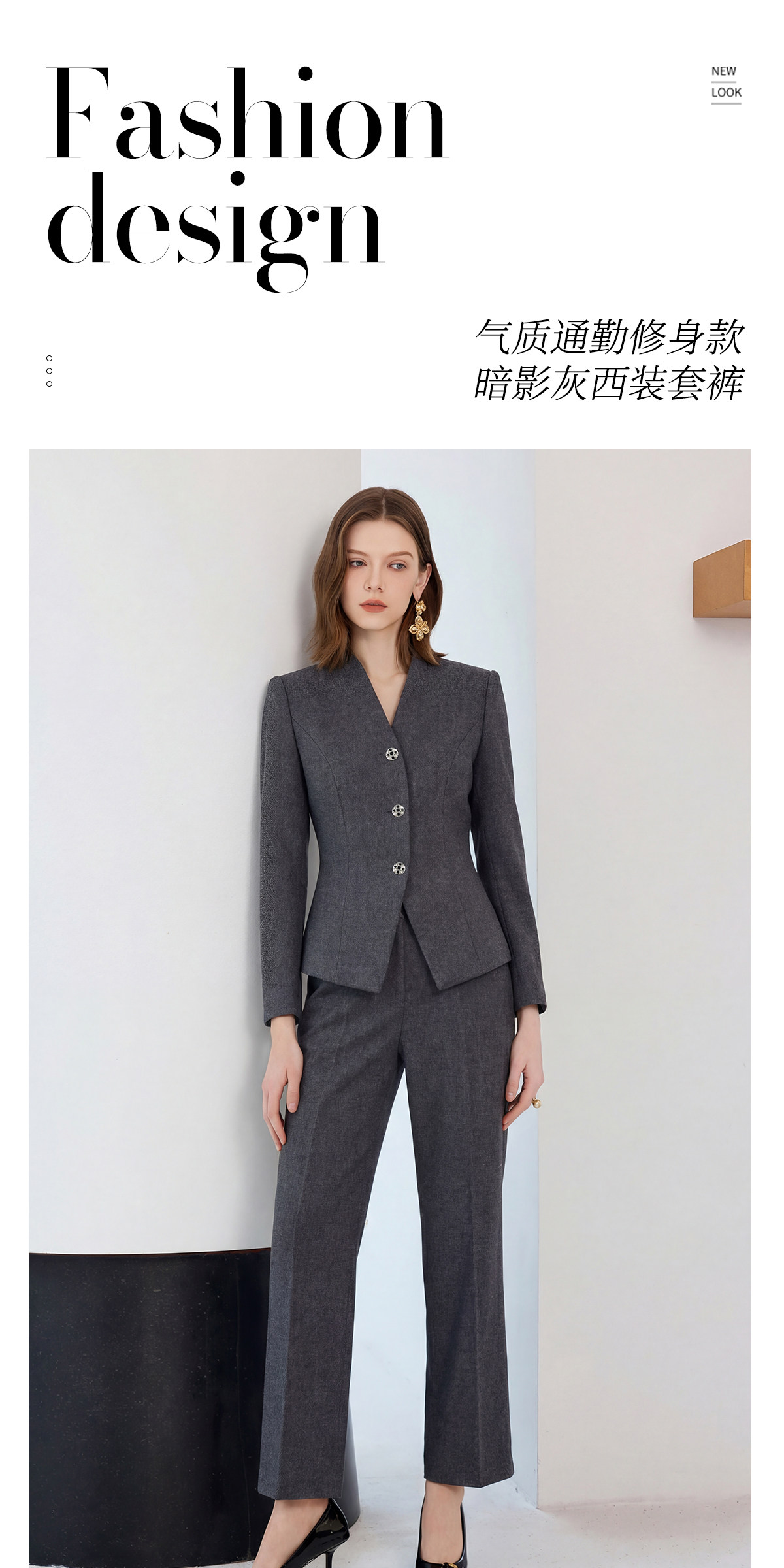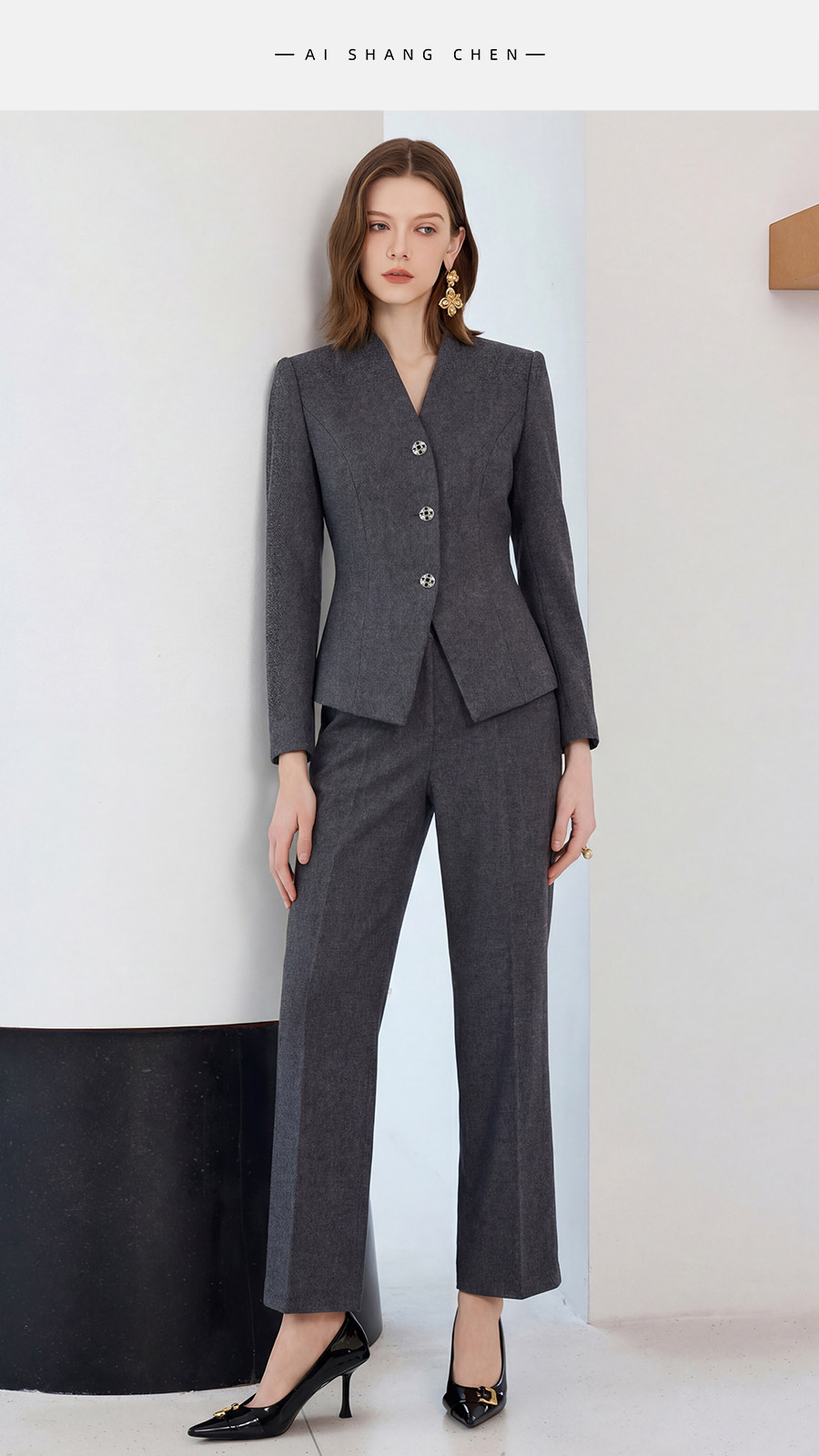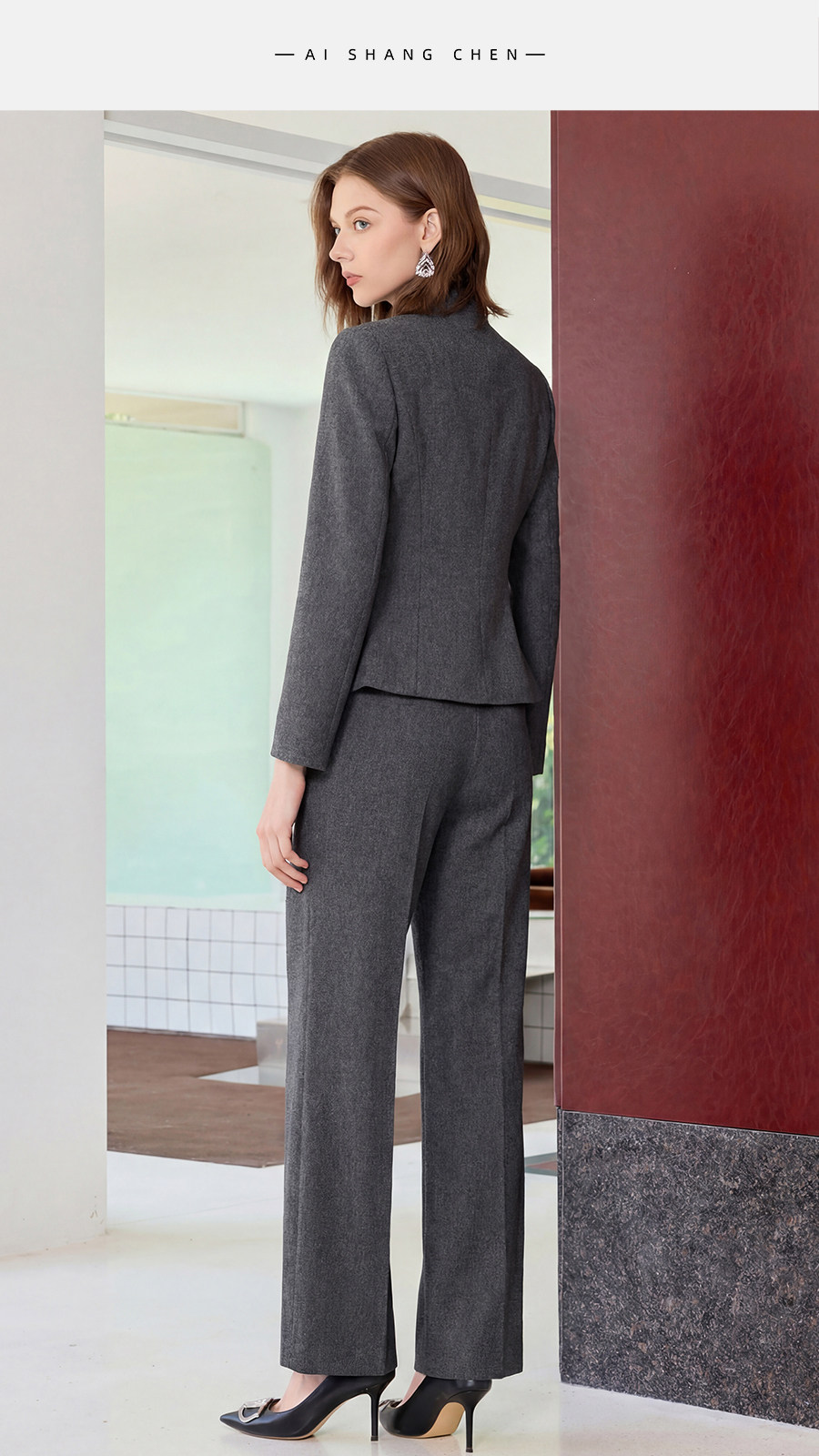 艾尚臣高级感灰色西装套装女春季长袖职业装通勤商务优雅风两件套