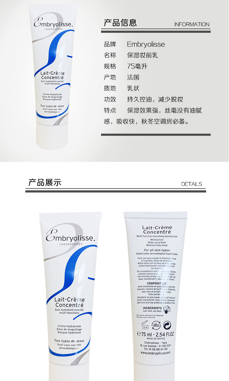 〖法国〗大宝Embryolisse 保湿妆前乳 75ml 范冰冰同款