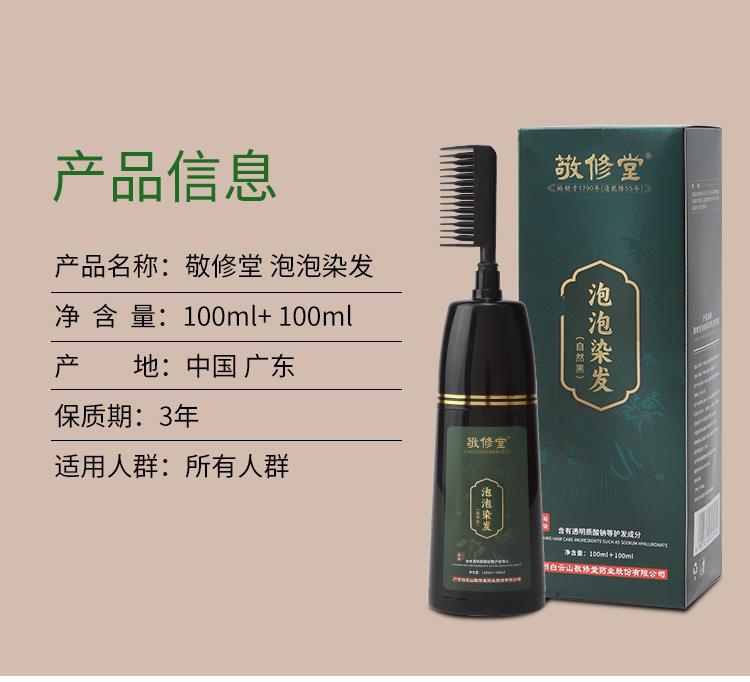 【超模君严选 草本植物染发!敬修堂始创于 1790 年 500强药企品牌】敬修堂泡泡染发 草本植物染发 健康护发 均匀上色遮白发 一梳既黑 简单方便染发膏200g/瓶