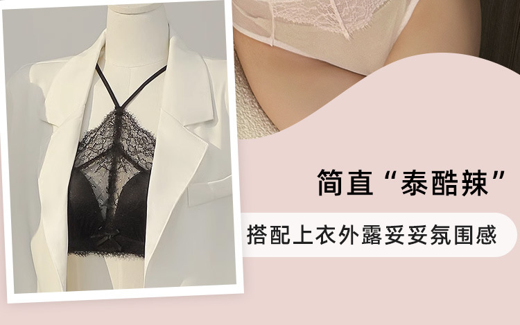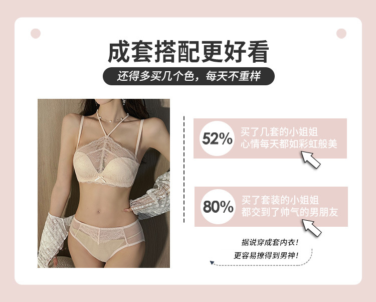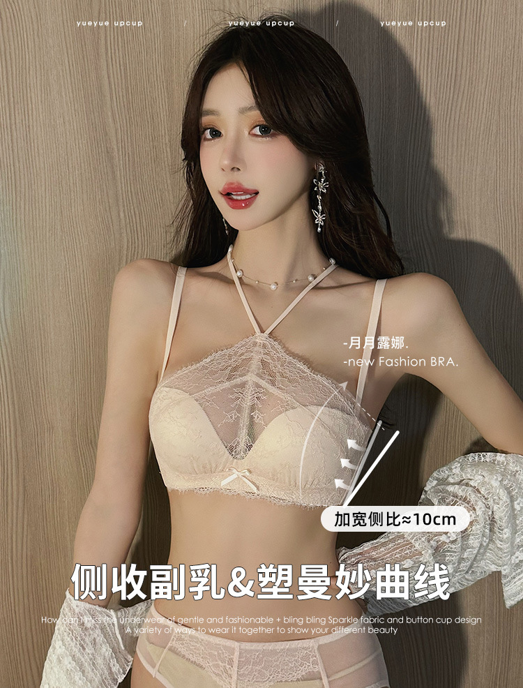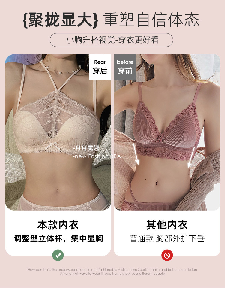 【心机美胸❗️性感纯欲蕾丝内衣】提拉上托,“小胸升杯”の显胸大腰细❗️新品挂脖风女小胸聚拢上托显大无钢圈美背文胸