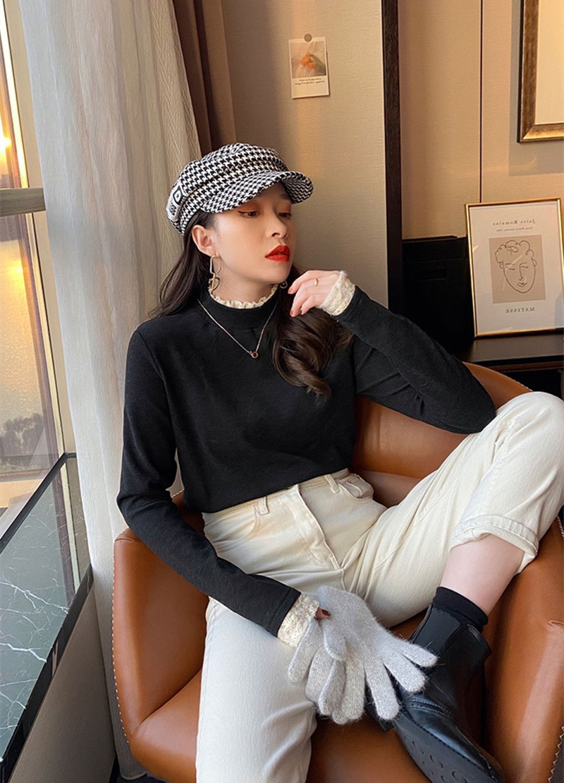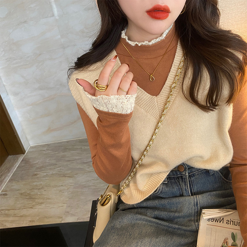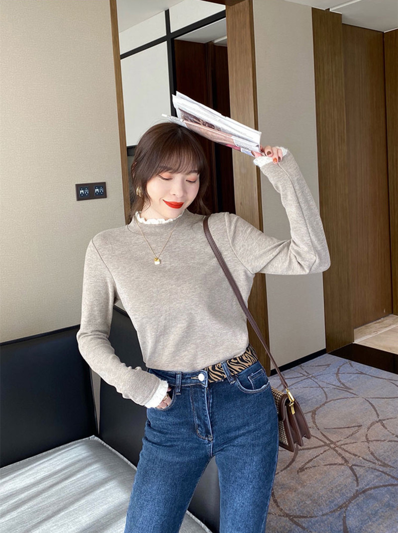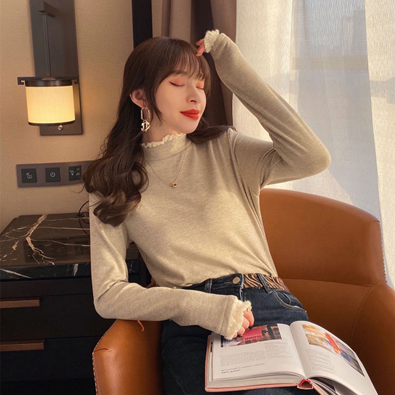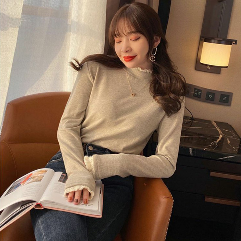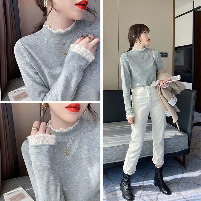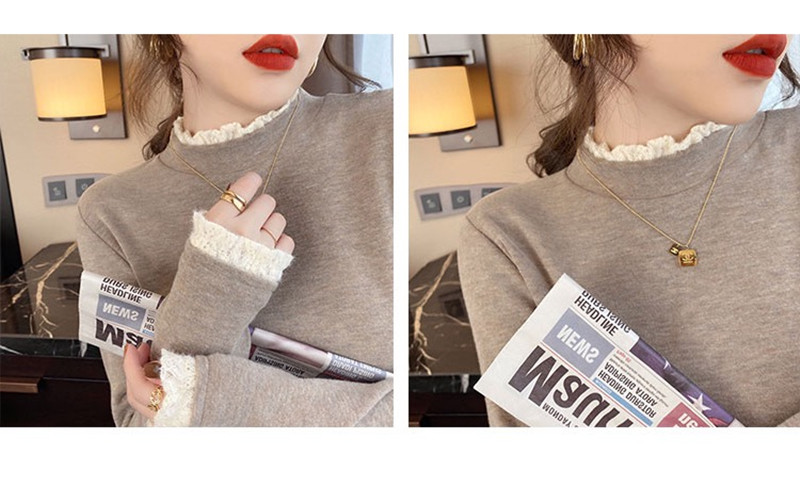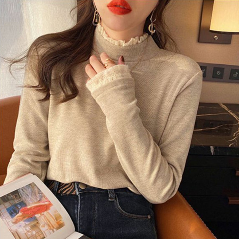 【纯欲慵懒❗️针织打底衫】低饱和与蕾丝拼接,搭配深系外套不失青春活力,高弹力无束缚,时尚减龄,抓绒打底衫长袖T恤2025新款保暖加厚修身上QQ