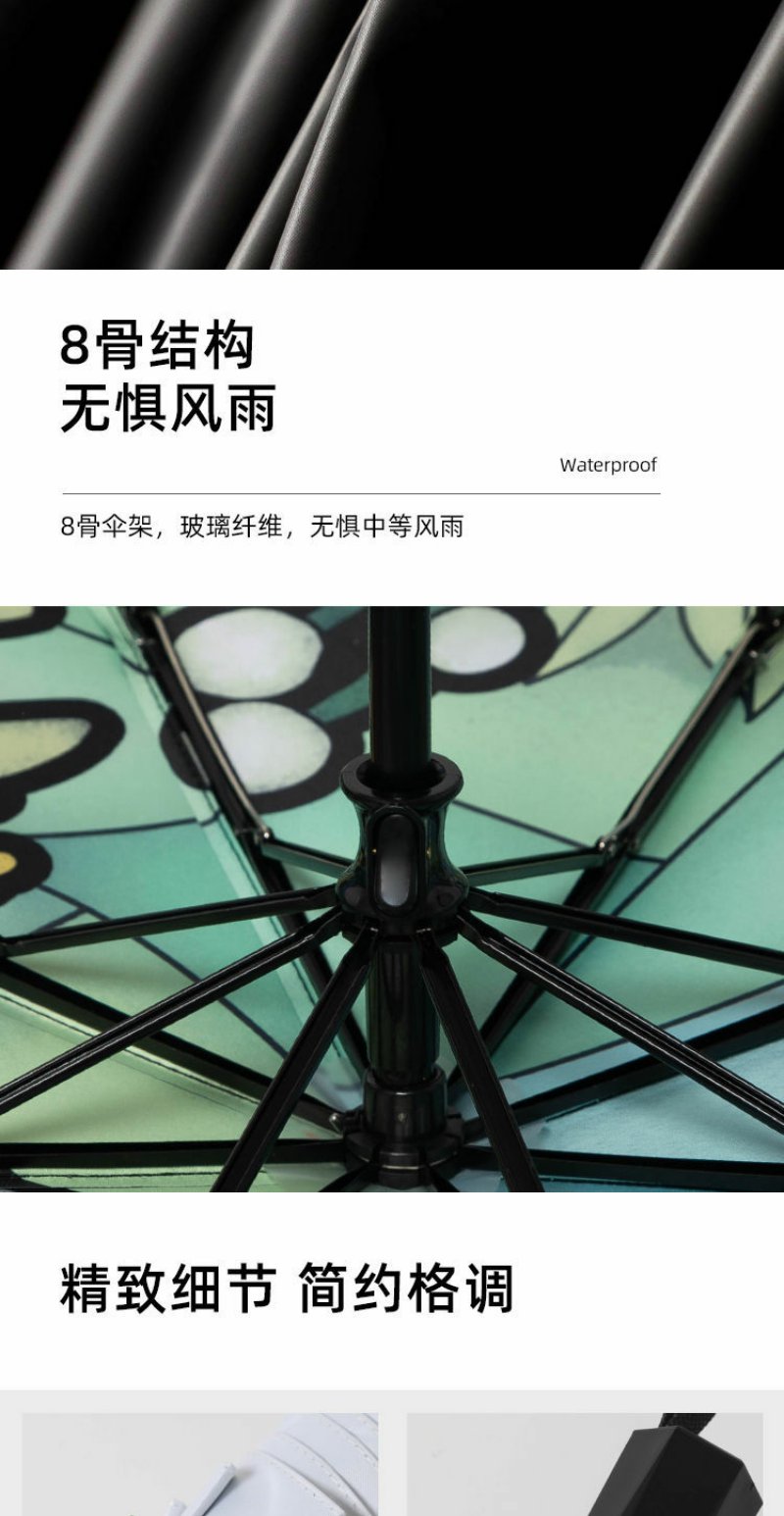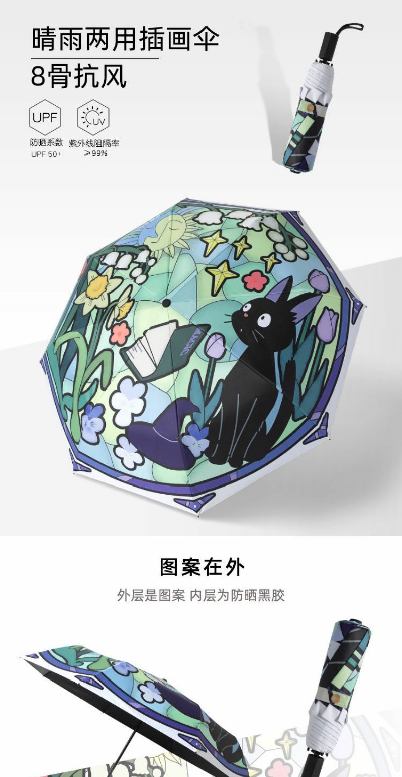 创意插画伞雨伞女折叠晴雨两用遮阳伞线太阳伞防晒防紫外线全自动
