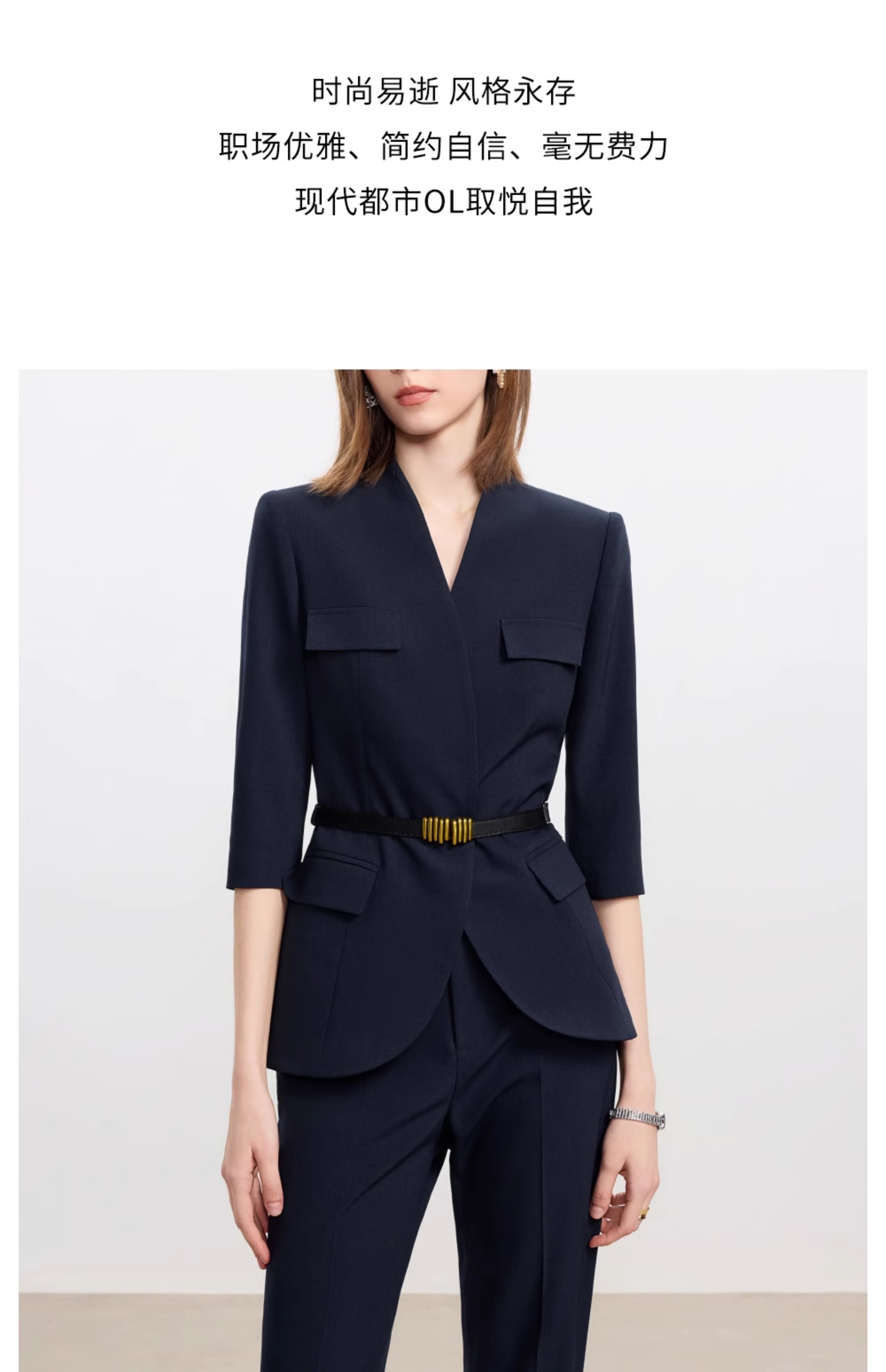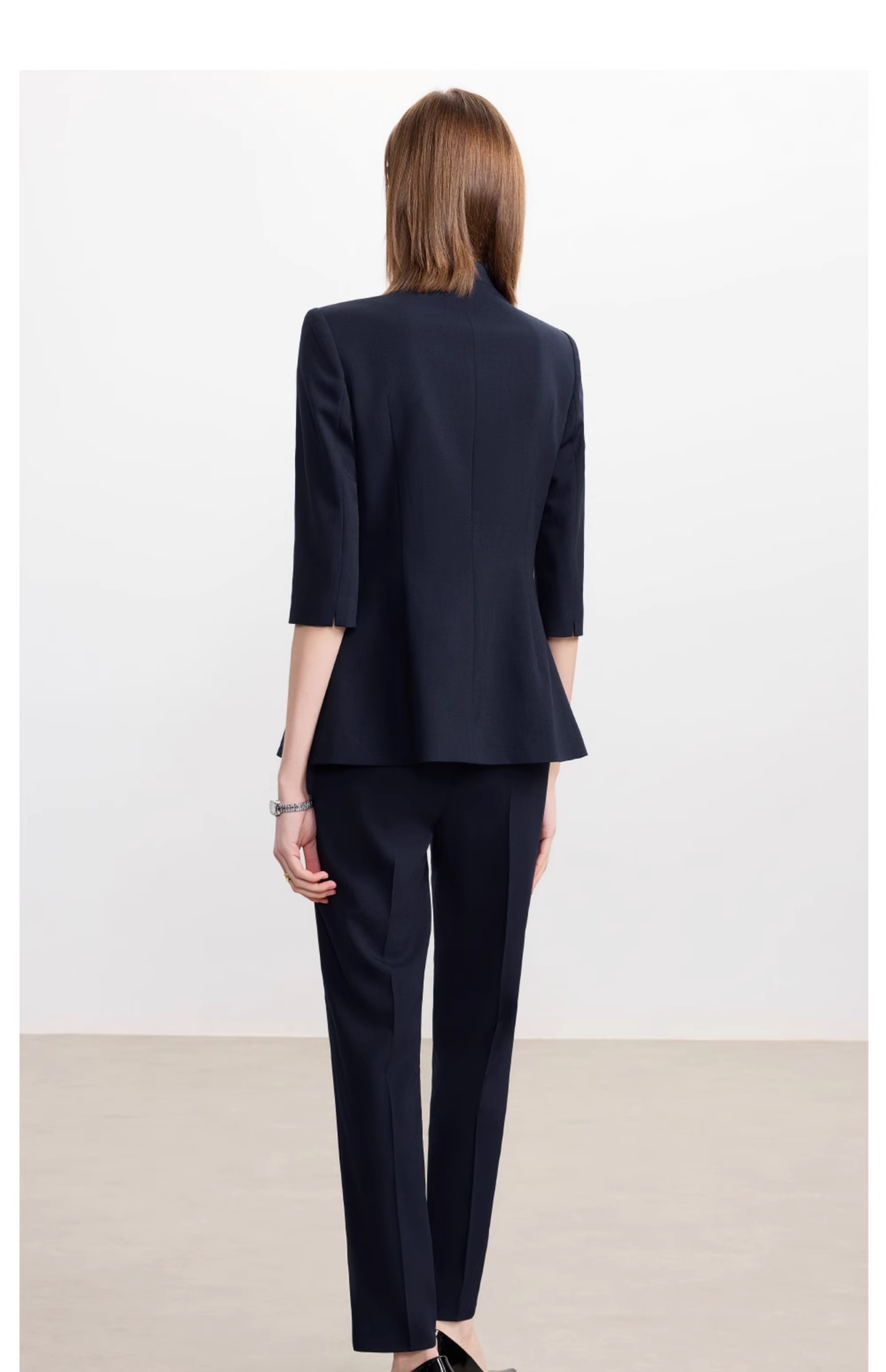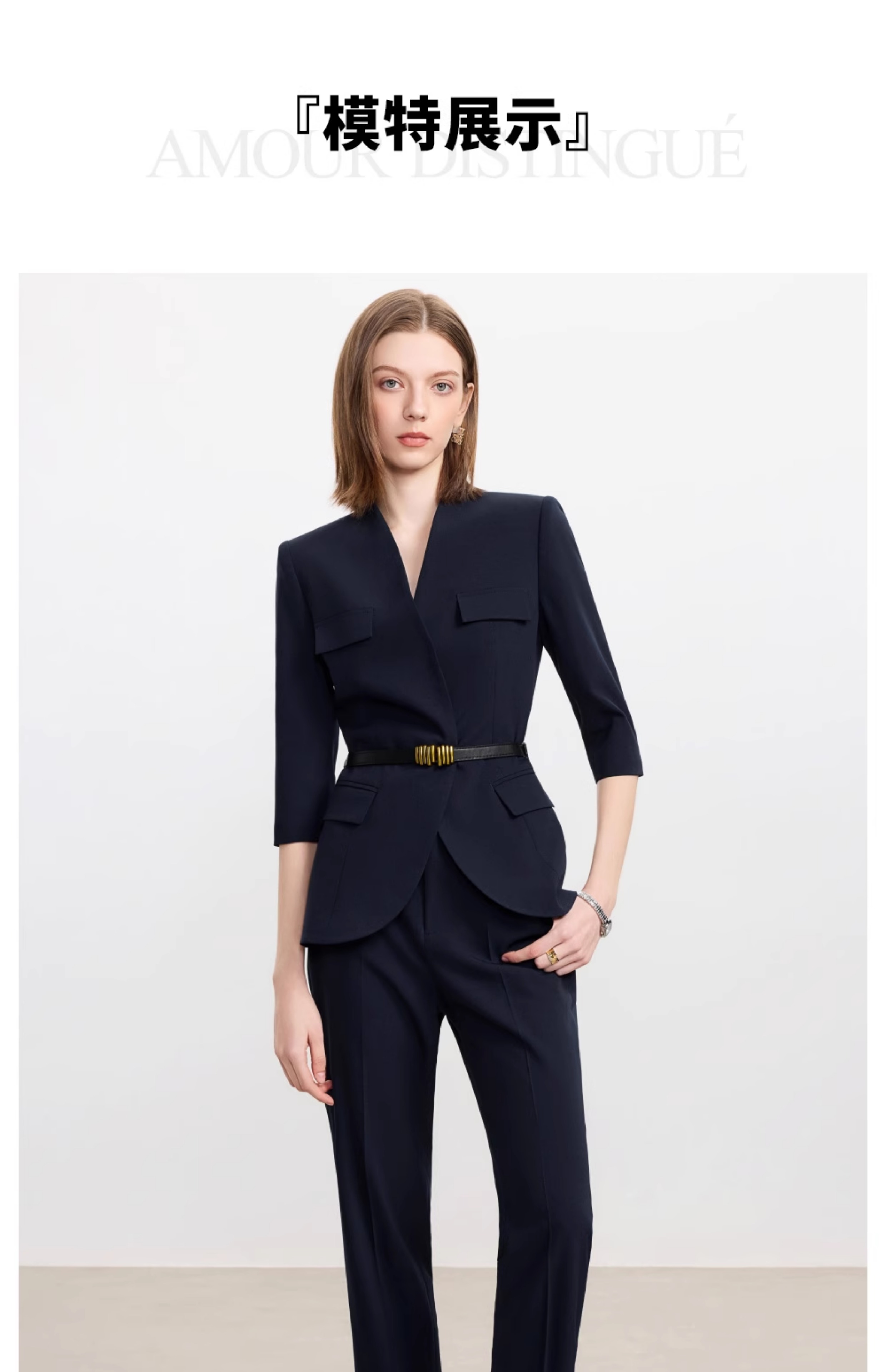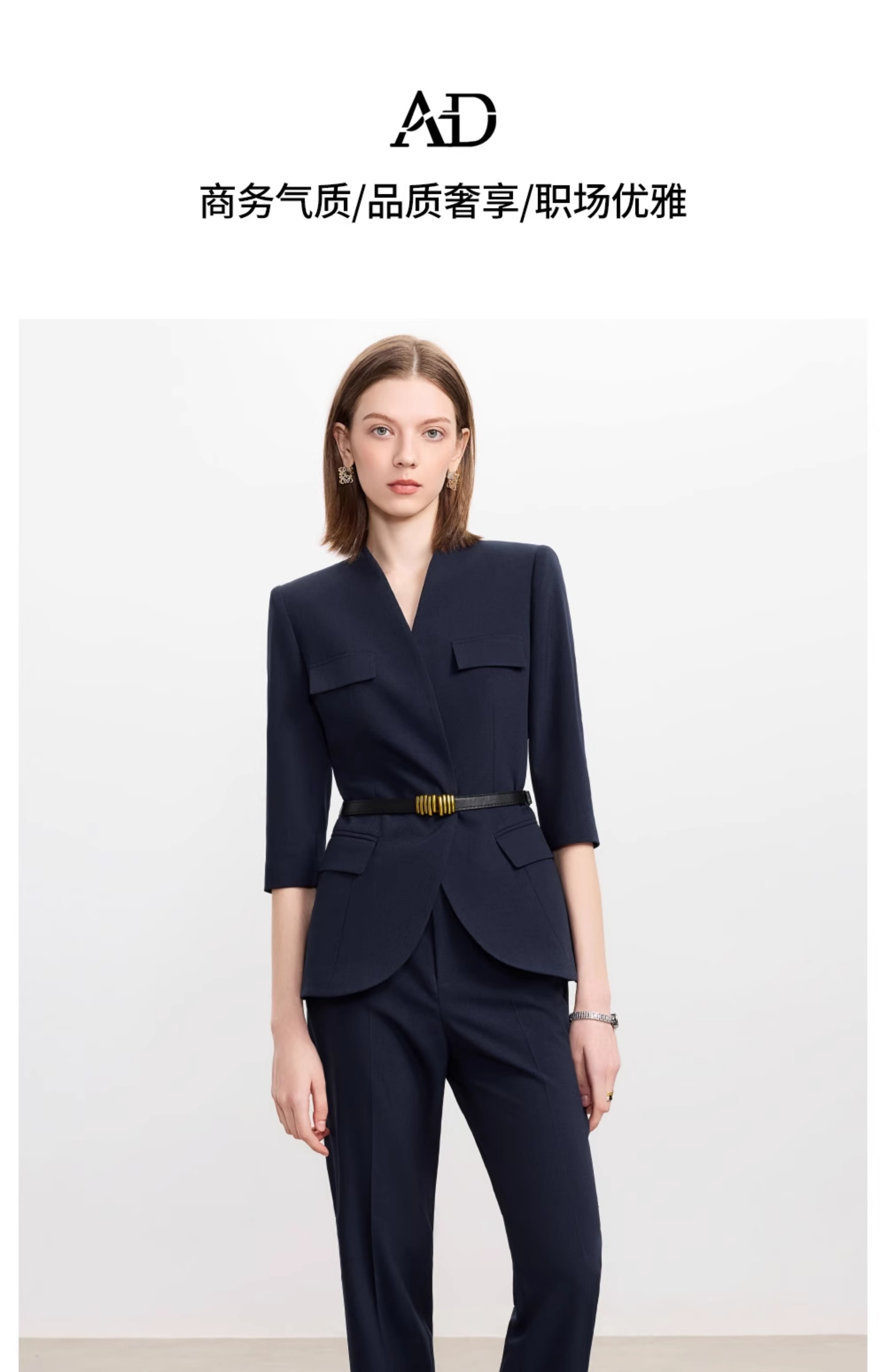 AD收腰显瘦西装外套女套装2025新款藏青色职业工作服休闲直筒裤子