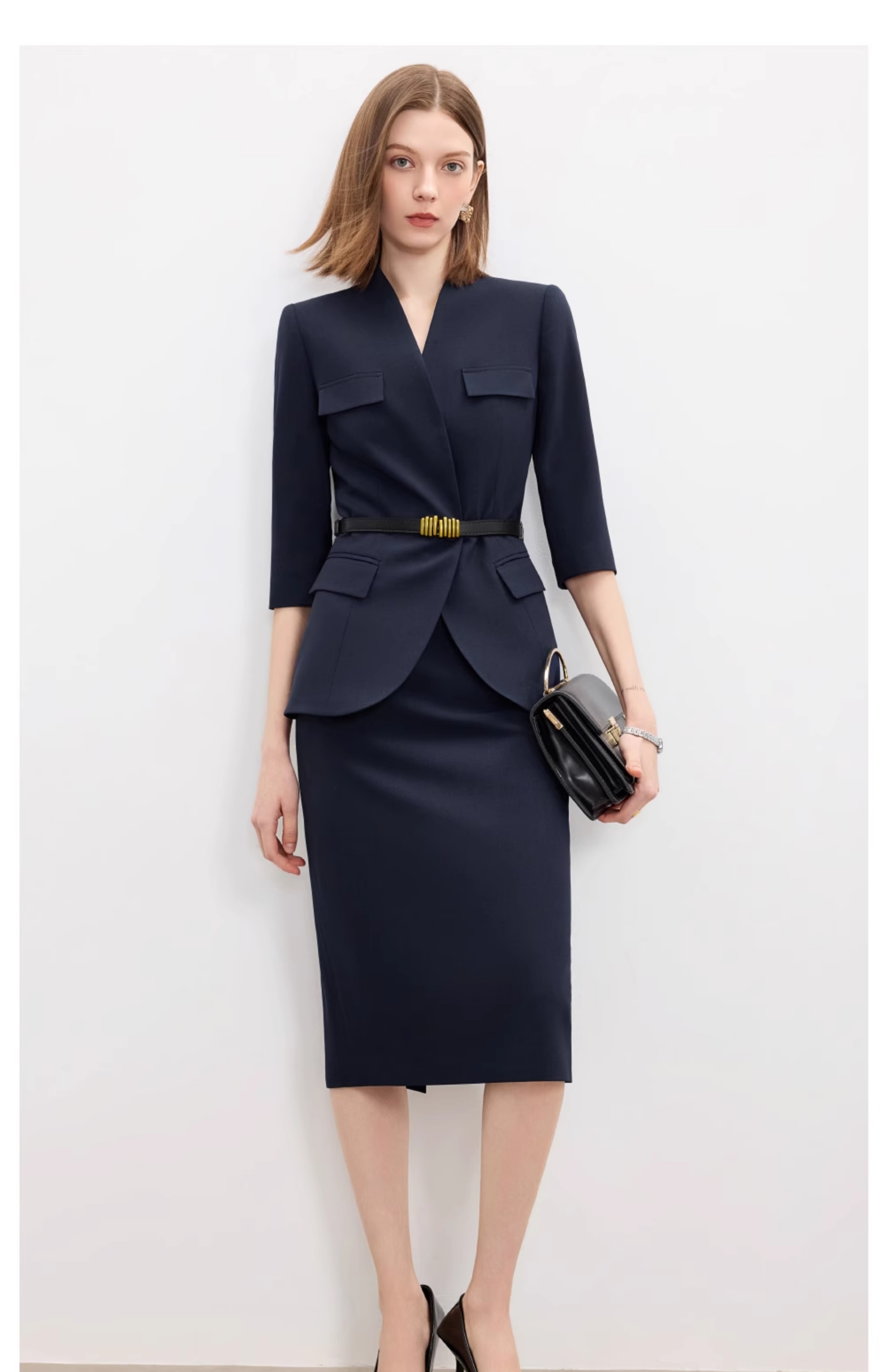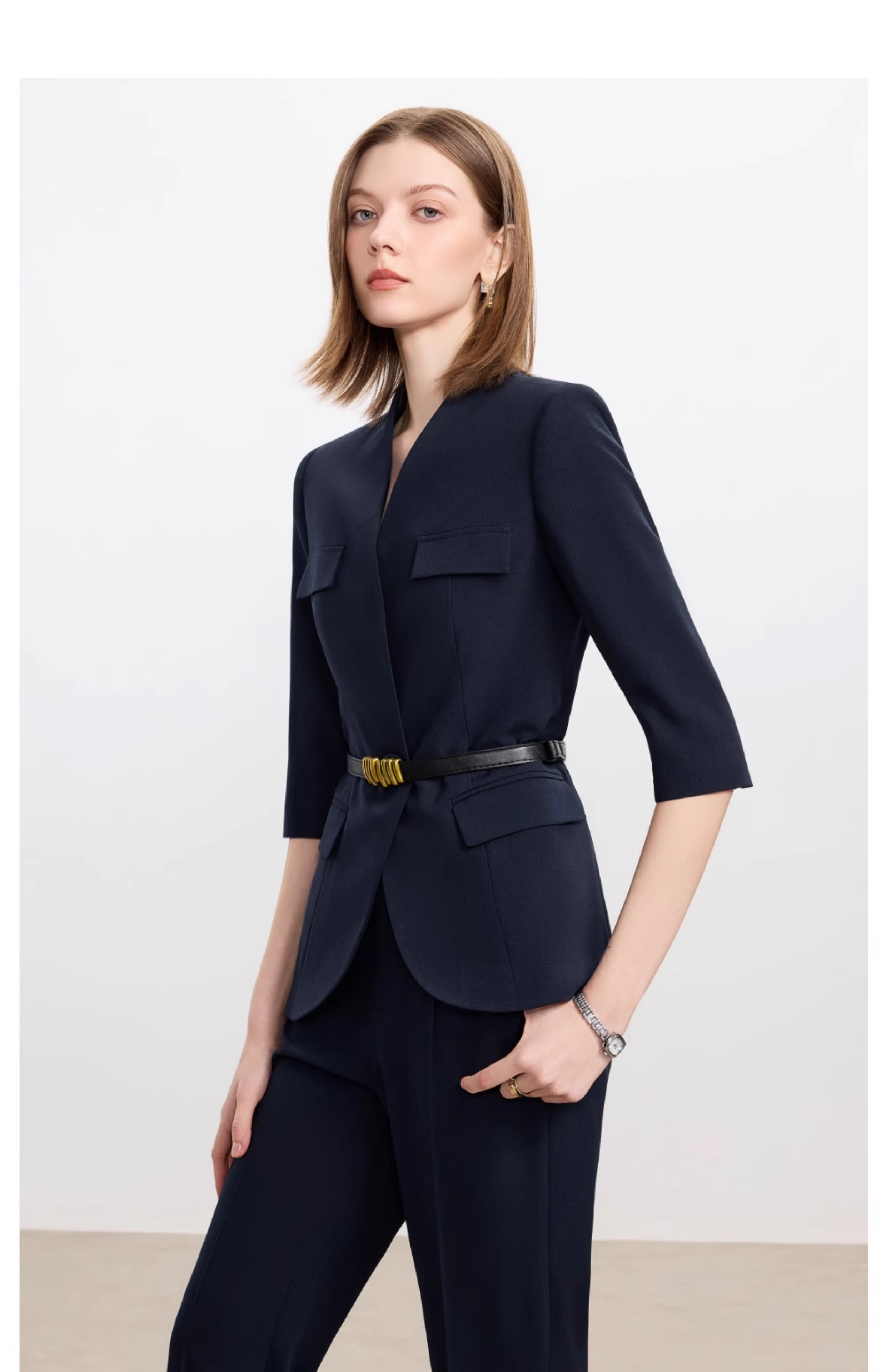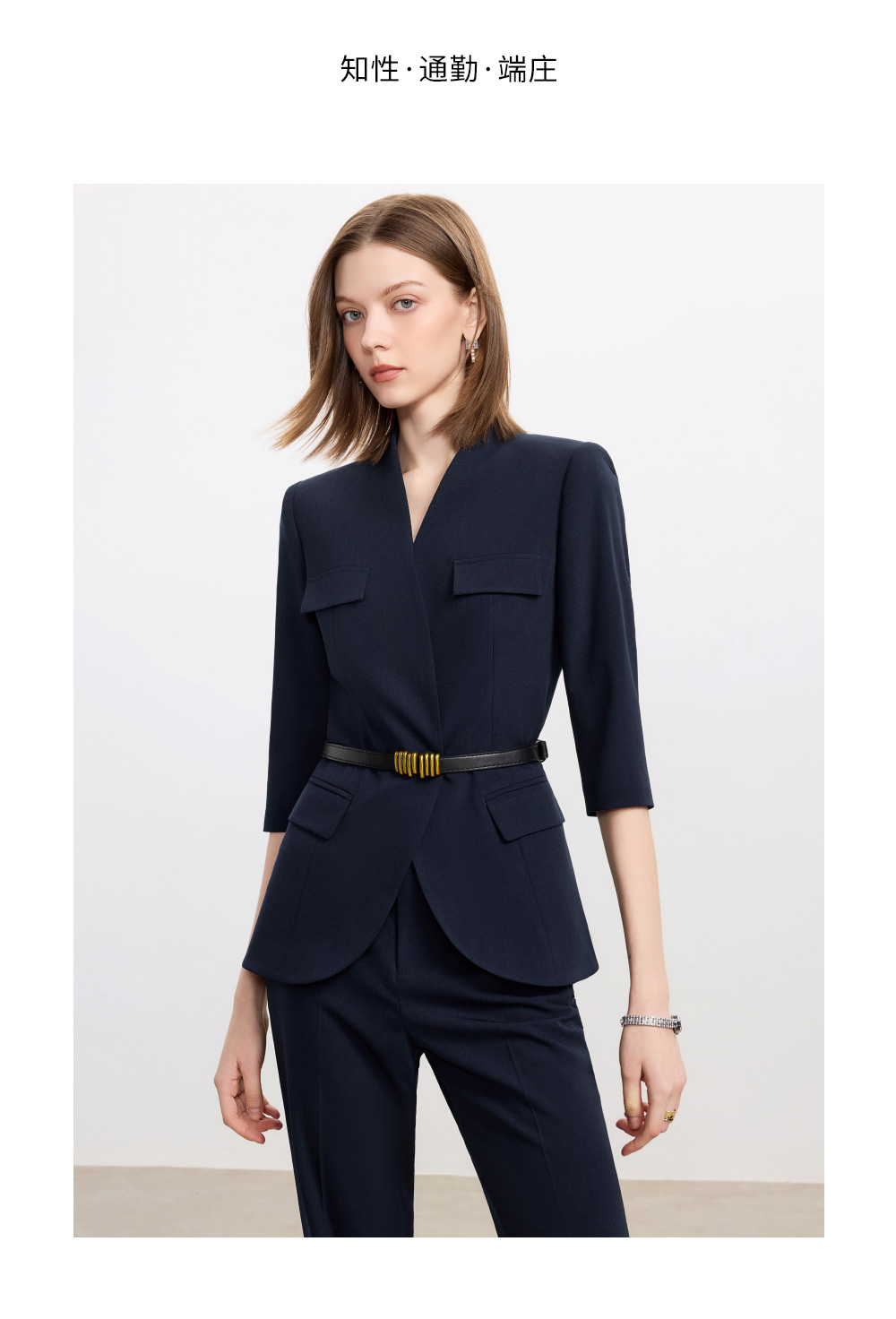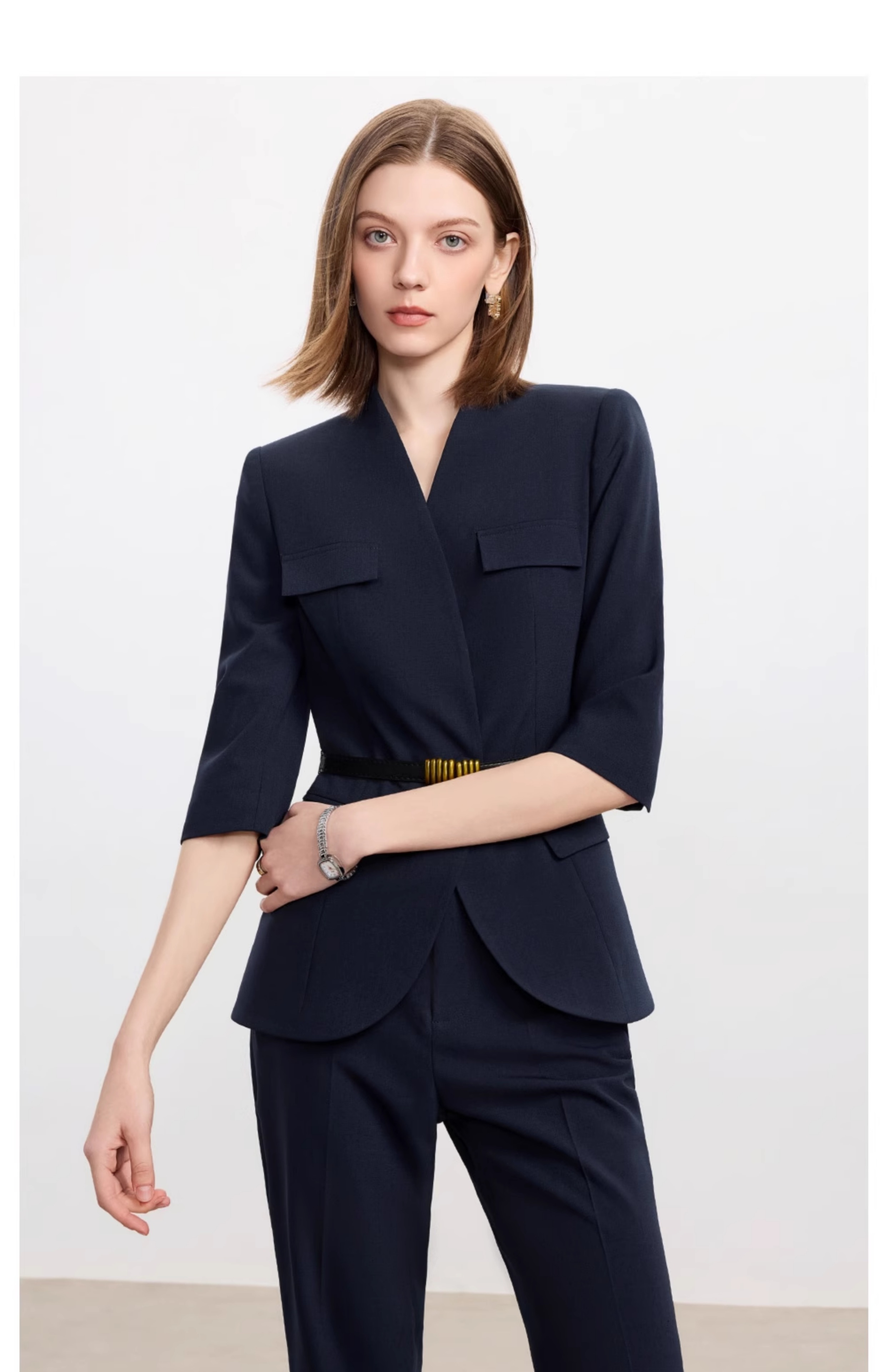 AD收腰显瘦西装外套女套装2025新款藏青色职业工作服休闲直筒裤子