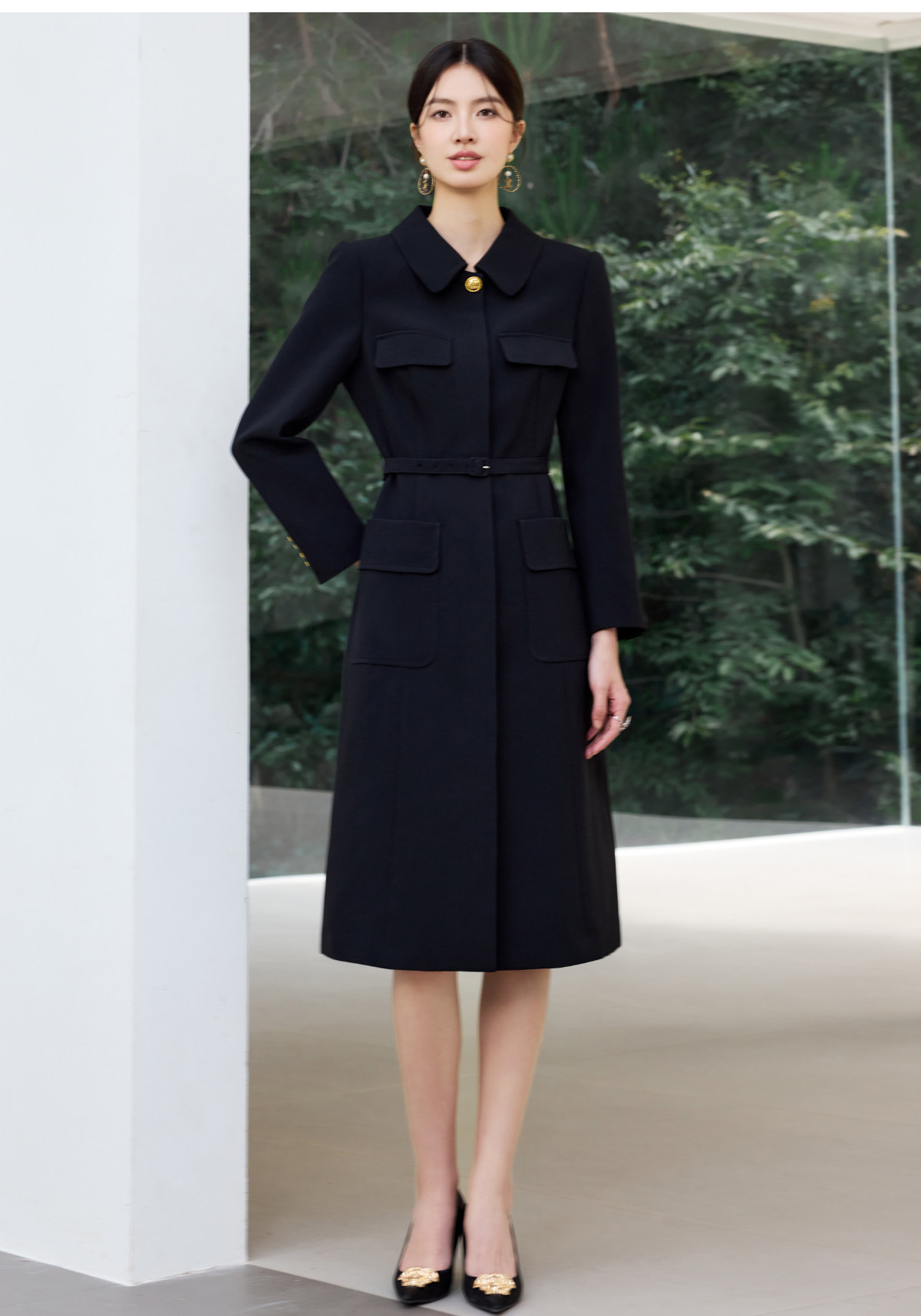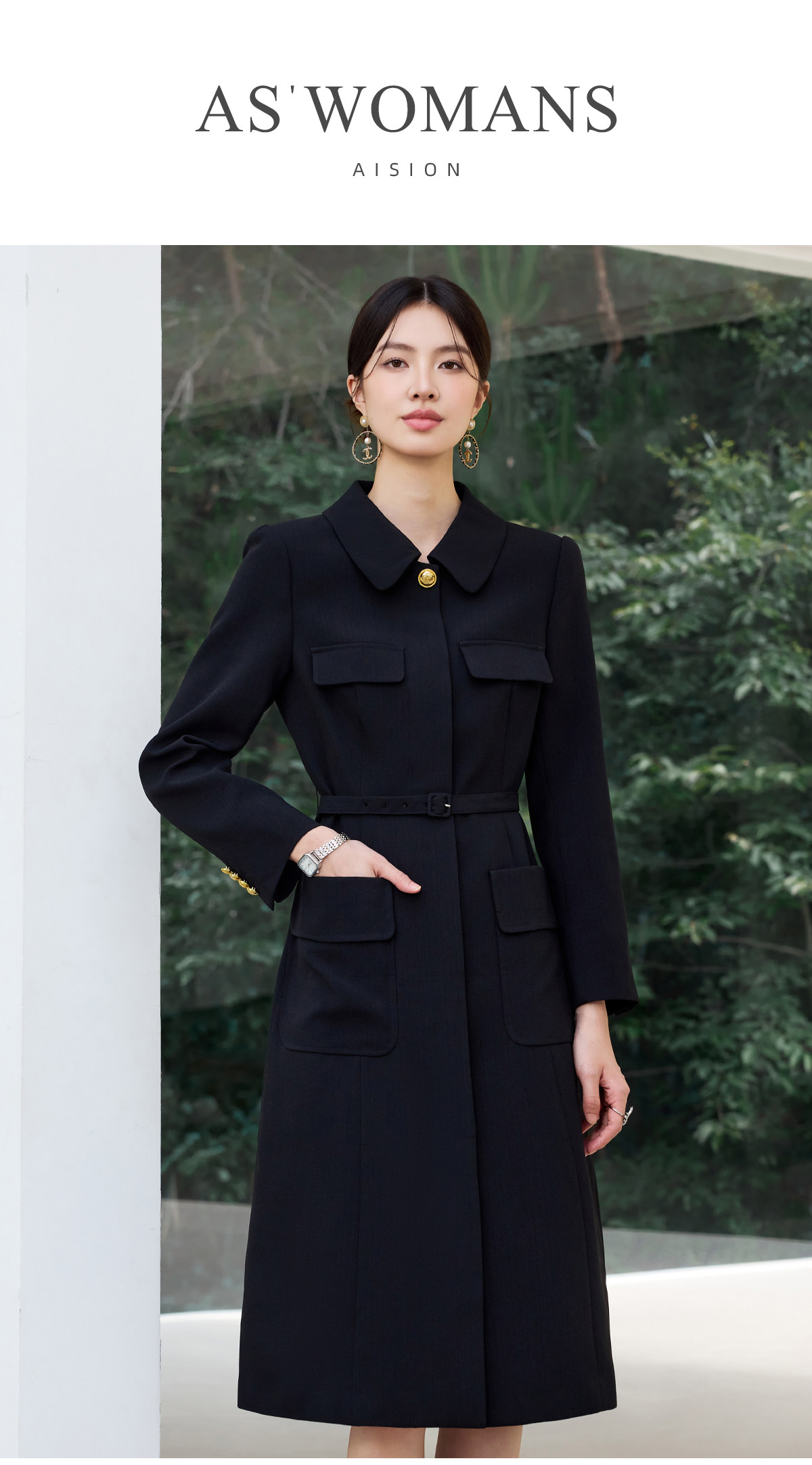 艾尚臣2025新款高级感黑色小香风连衣裙法式赫本风收腰显瘦工作服