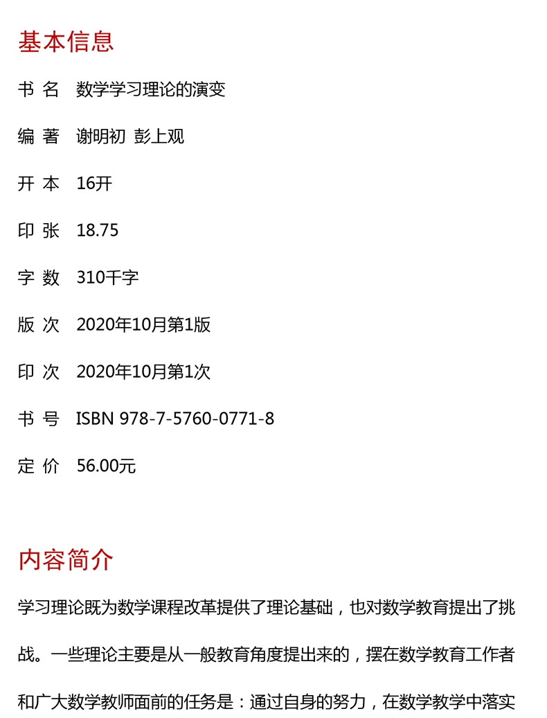 数学学习理论的演变 新时代卓越中学数学教师丛书 谢明初 彭上观 中学数学教育