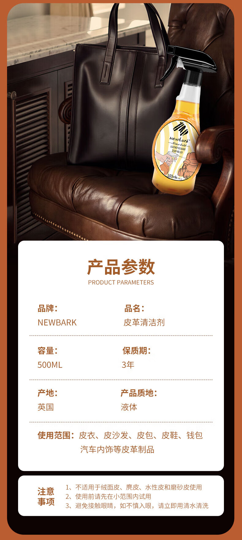【品名】Newbark皮革清洁剂 去污增亮 不伤皮 500ml/瓶 【规格】500ml/瓶 【产地】英国 【保质期】3年 【发货包装】独立包装 【发货地】东莞 【发货快递】中通、圆通 【不发货区域】新疆、西藏、港澳台 【发货时效】48-72小时,周末节假日顺延 |