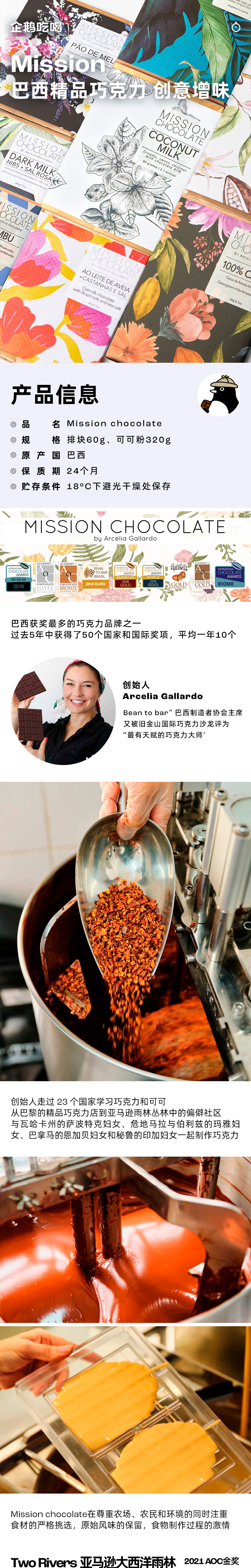 企鹅市集|巴西Mission巧克力60g 增味/白巧/黑巧多口味可选 AOC/ICA金奖选手