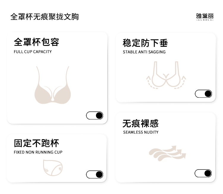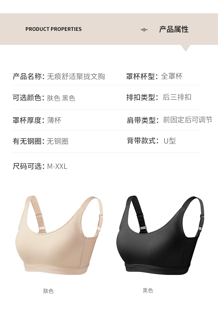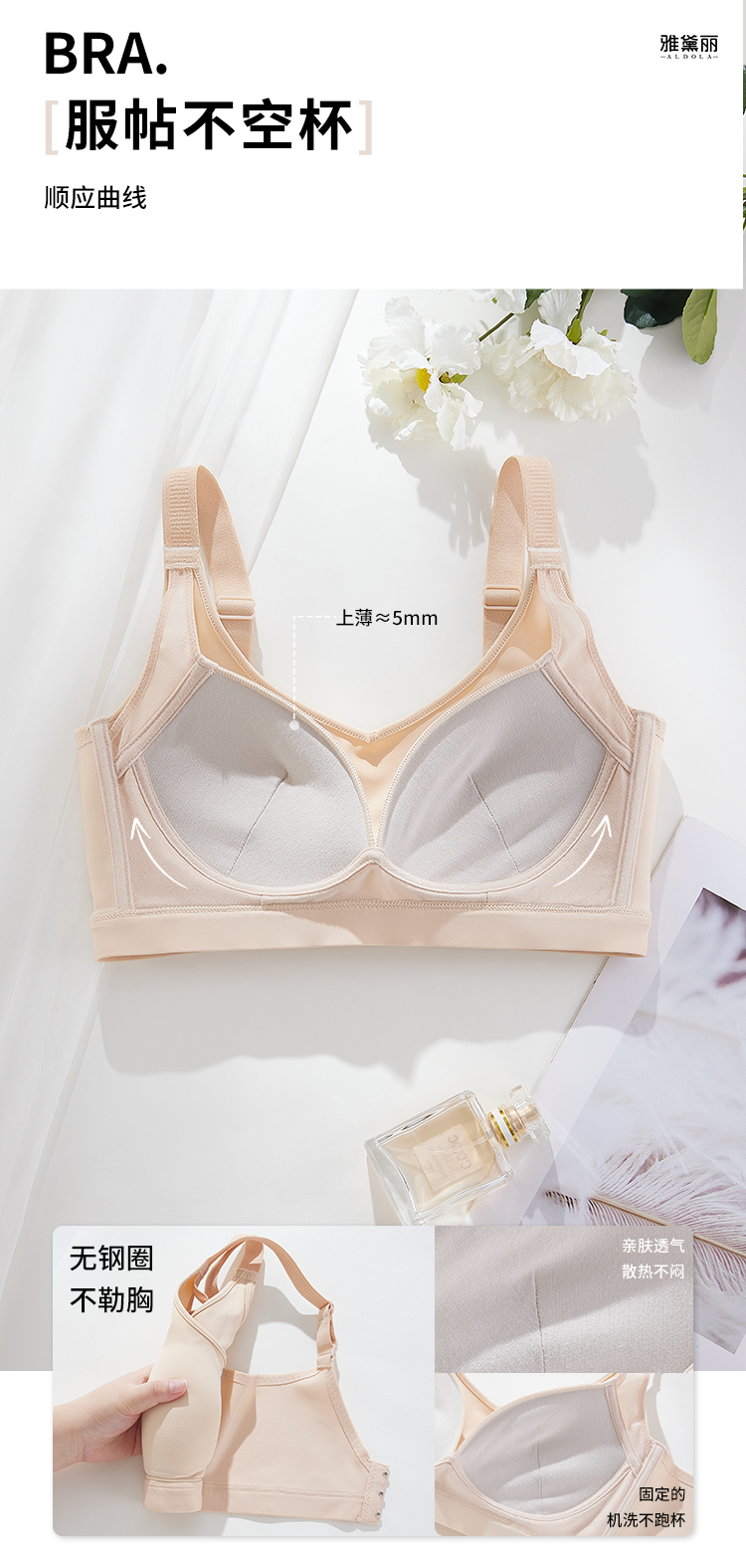 雅黛丽内衣女小胸薄款光面舒适文胸无钢圈收副乳防下垂美背胸罩女