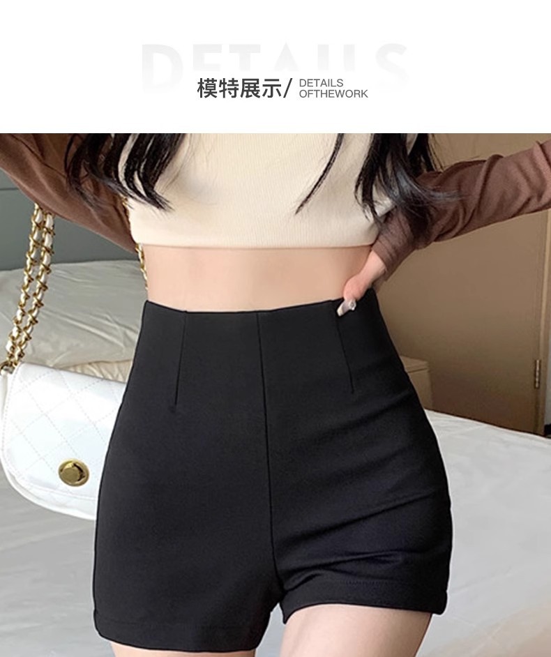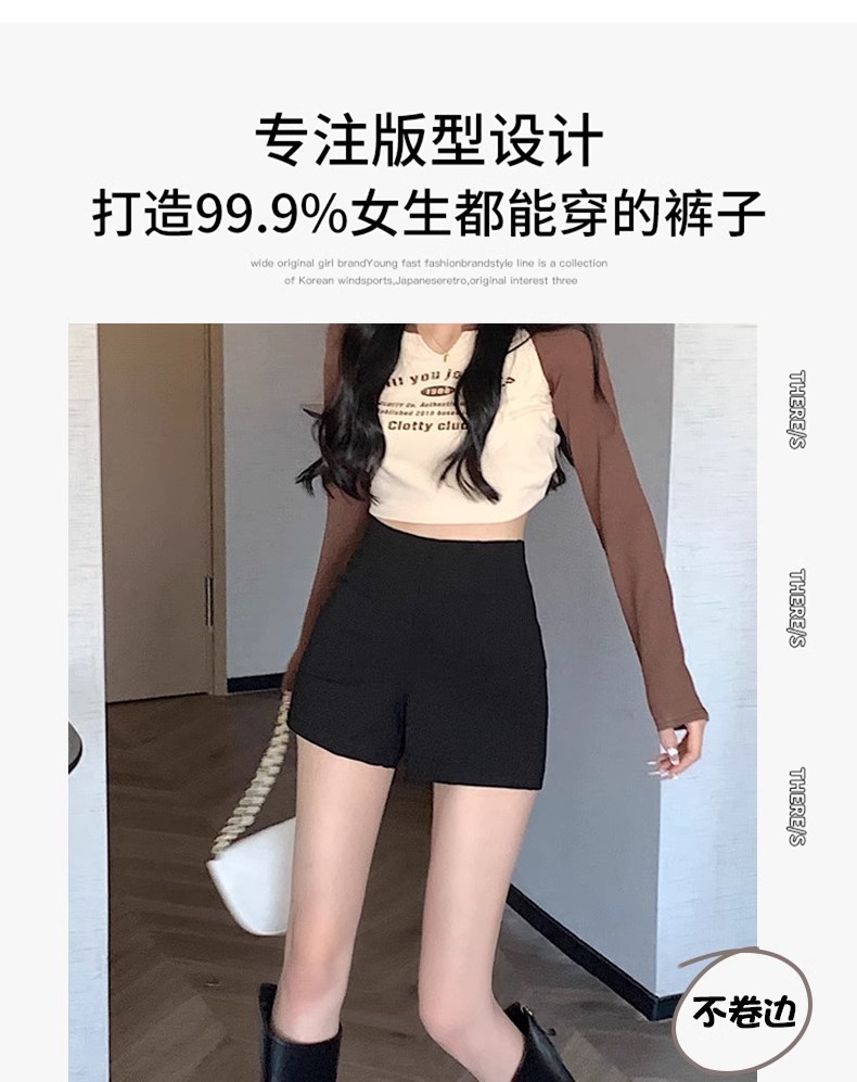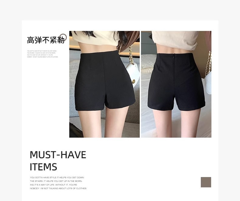 【夏天穿也不闷热!辣妹塑身热裤】好裤不挑人腿型零要求,弹力不紧绷+高腰收腹藏肉,360°安全防走光剪裁,夏季打底黑色西装薄款辣妹显瘦外穿热裤子QQ