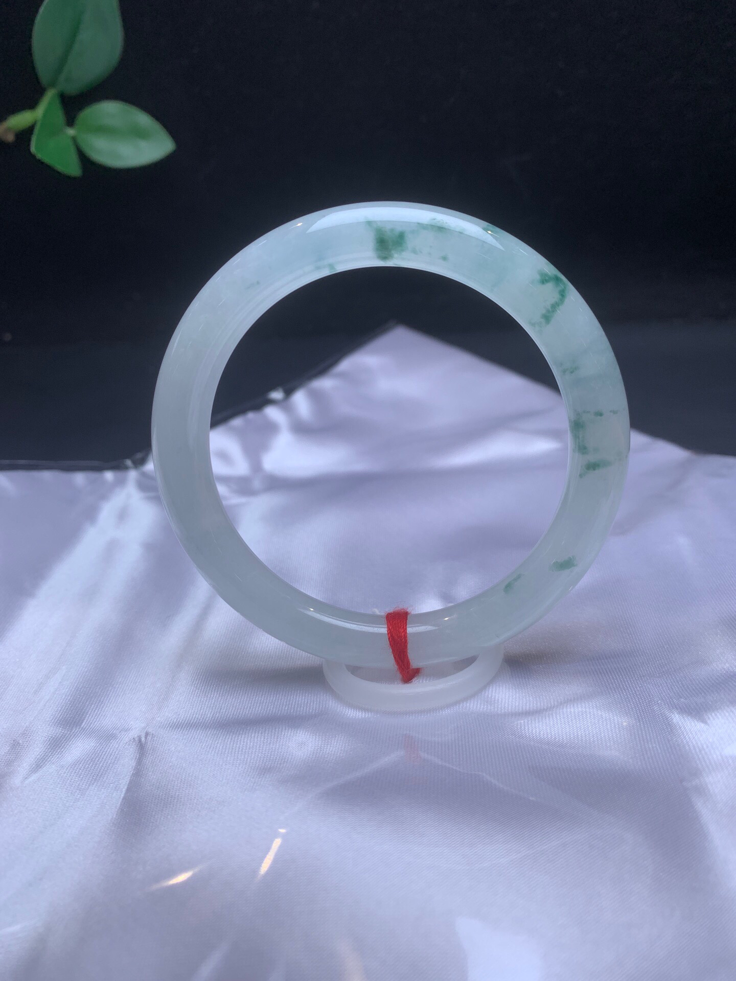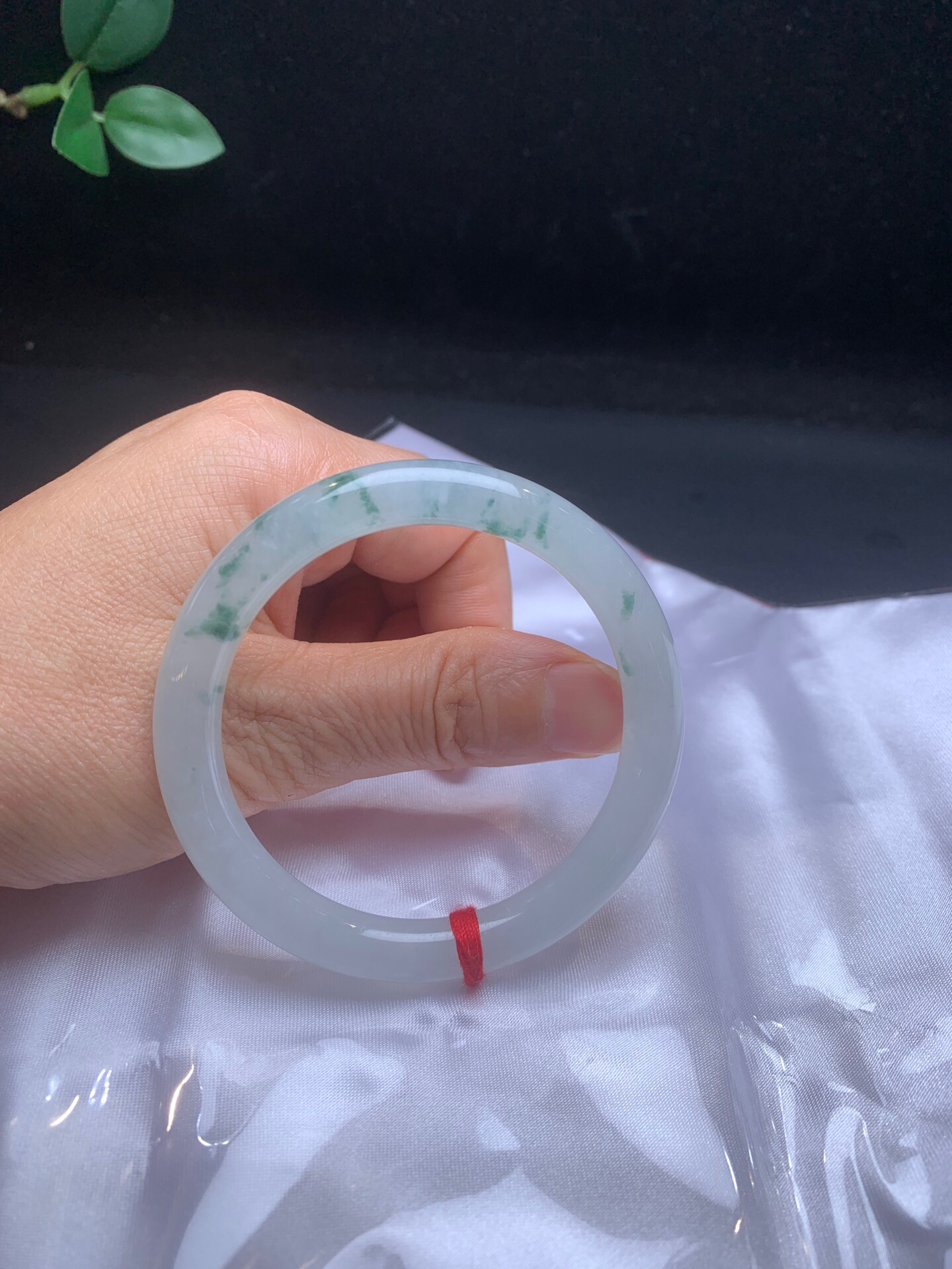 620552,52.5冰飘花圆条,8.6mm 整体冰冰的,均匀干净, 飘淡雅蓝花, 清新秀气,完美的。超值价💰34000 #优石客珠宝#香玉荟萃