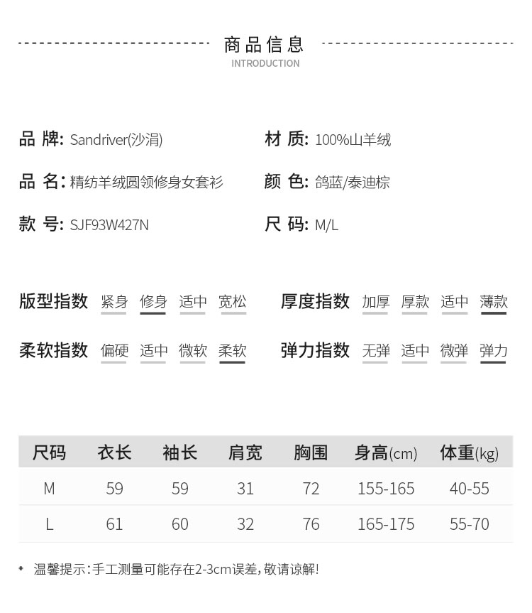 精纺羊绒圆领修身女套衫 SJF93W427N