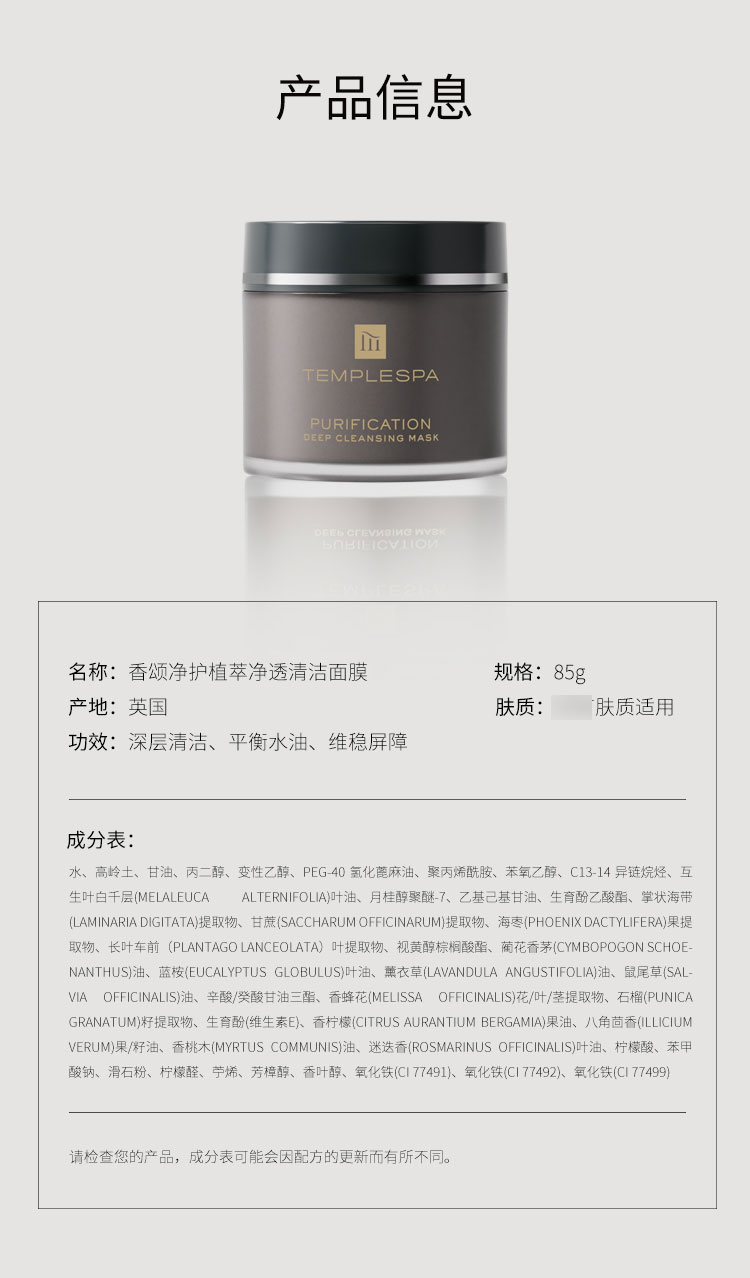 「加赠-同款毛孔吸尘器泥膜 7g*4」英国TEMPLESPA · 净化平衡植萃毛孔吸尘器泥膜 85g |保税