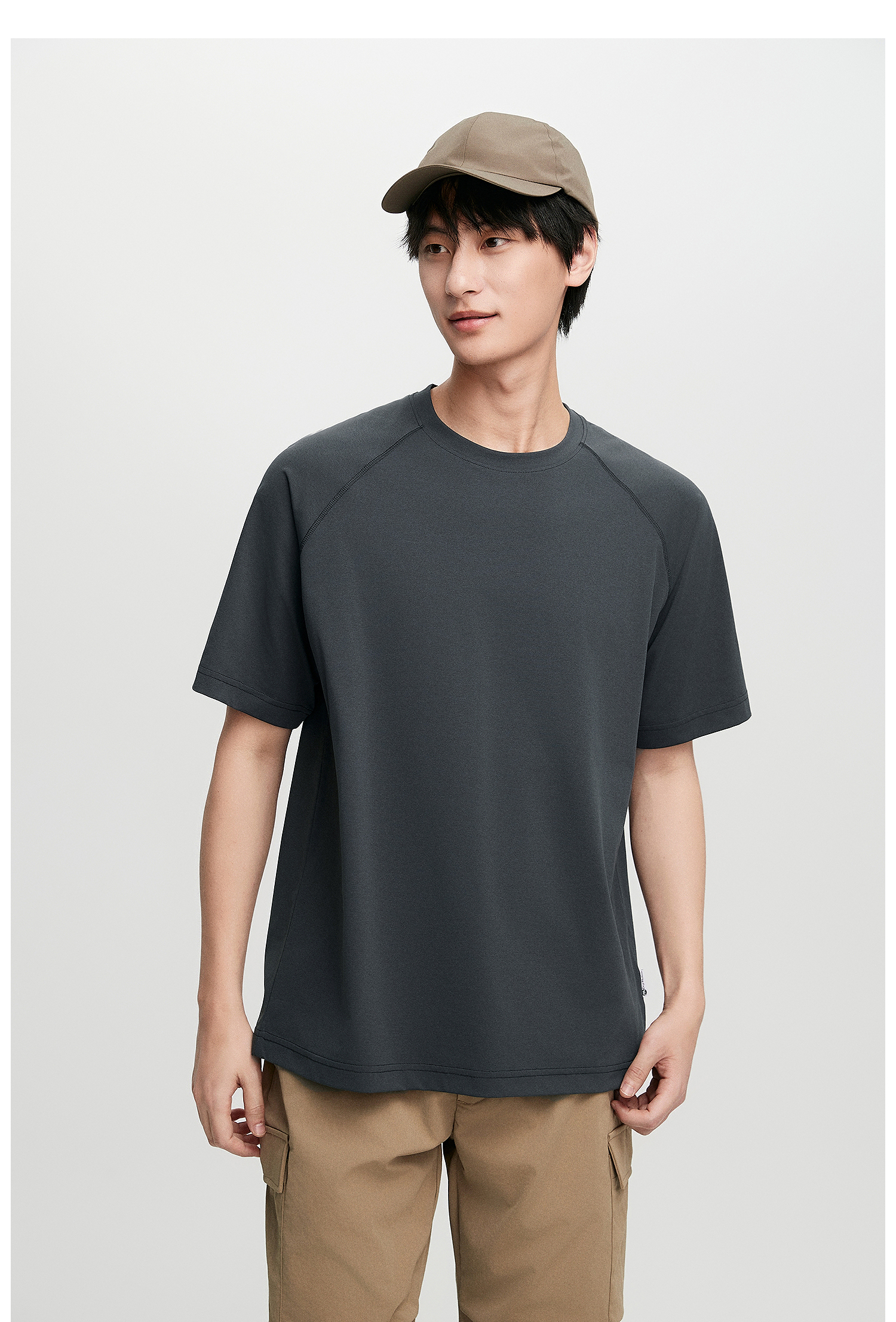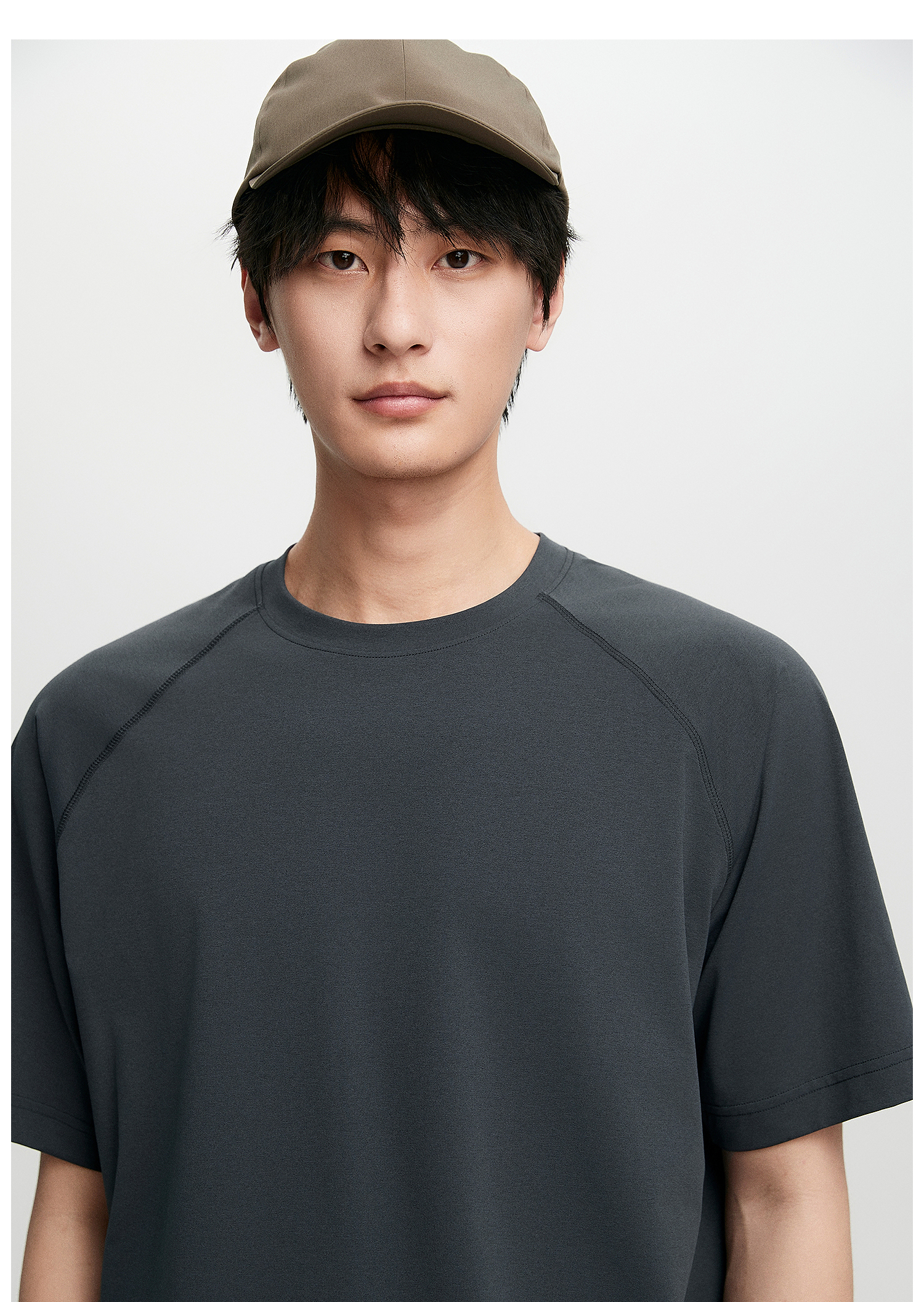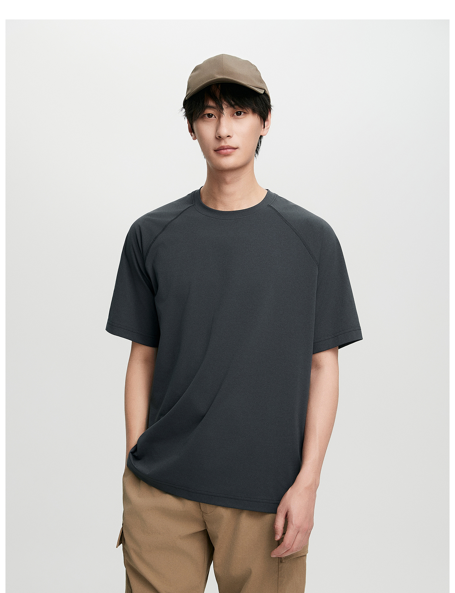 棉仓363801017-微肌理棉感吸湿速干插肩袖短袖T恤