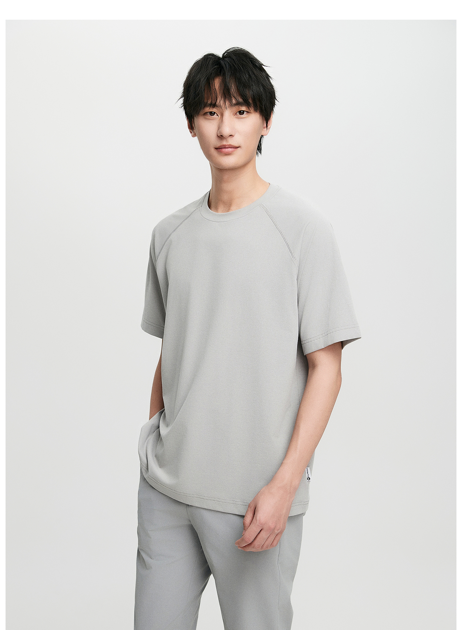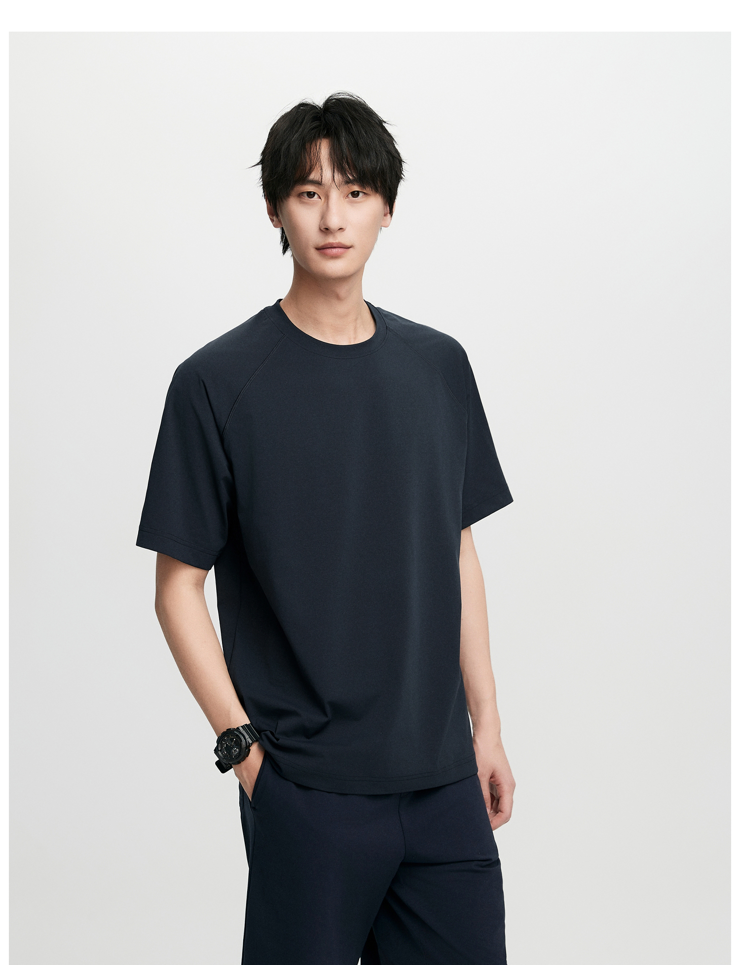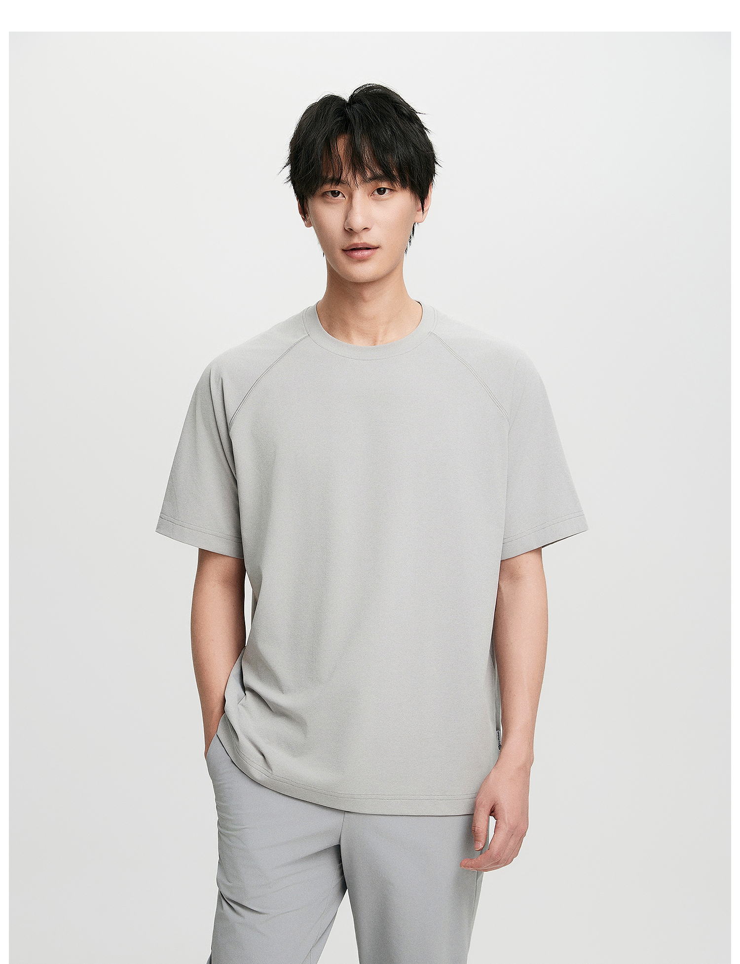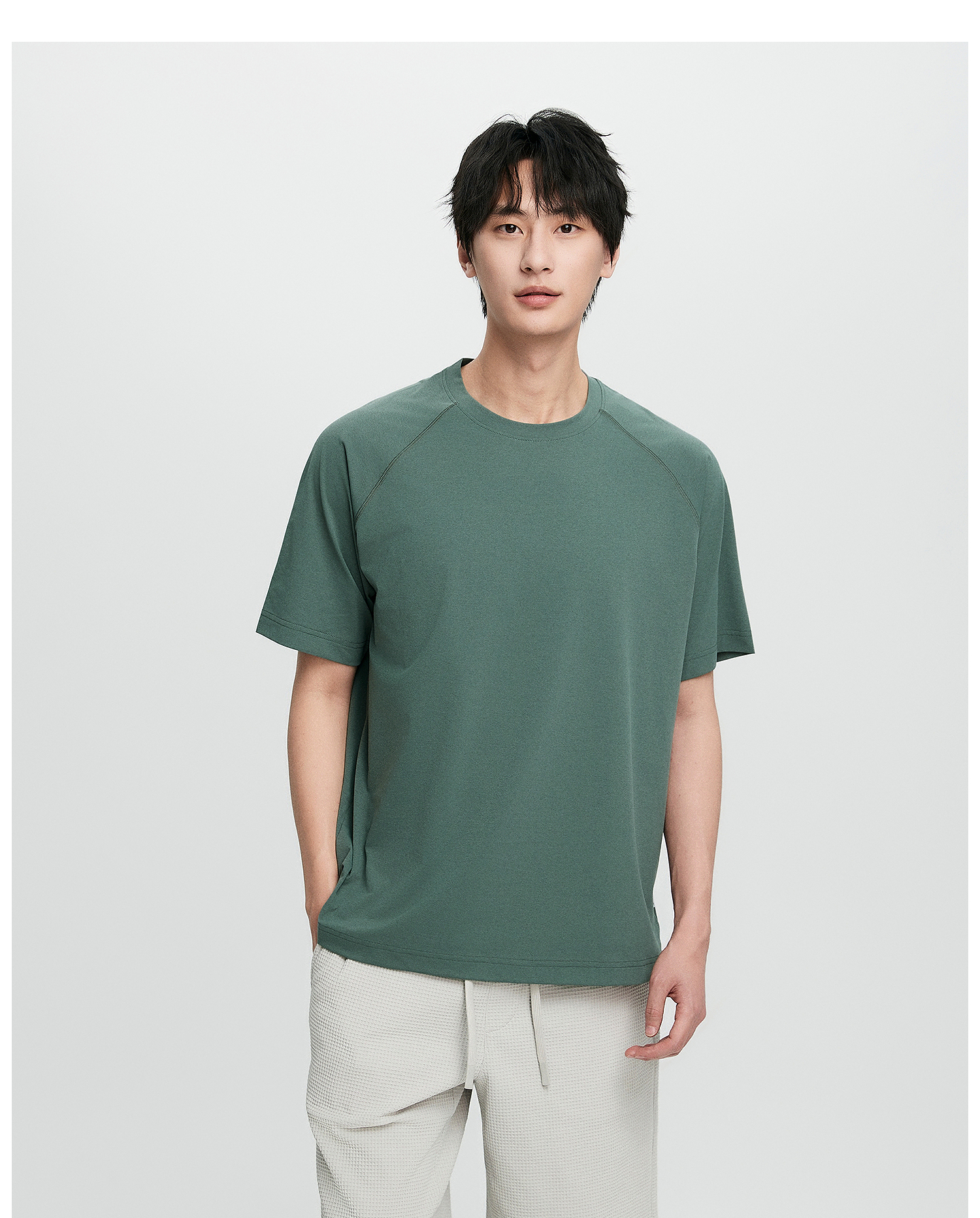 棉仓363801017-微肌理棉感吸湿速干插肩袖短袖T恤