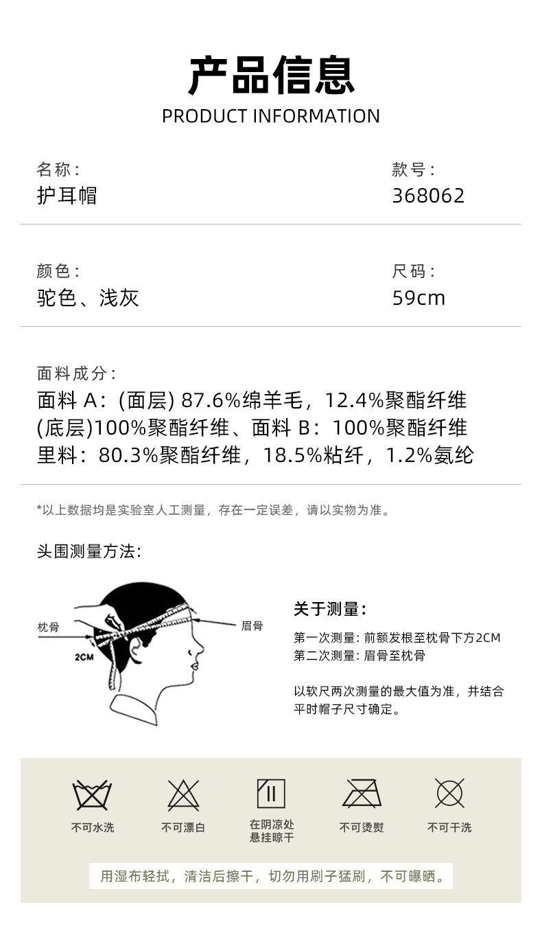 EX2伊海诗帽子冷帽登山帽保暖帽护耳帽防风保暖显脸小护耳帽368062